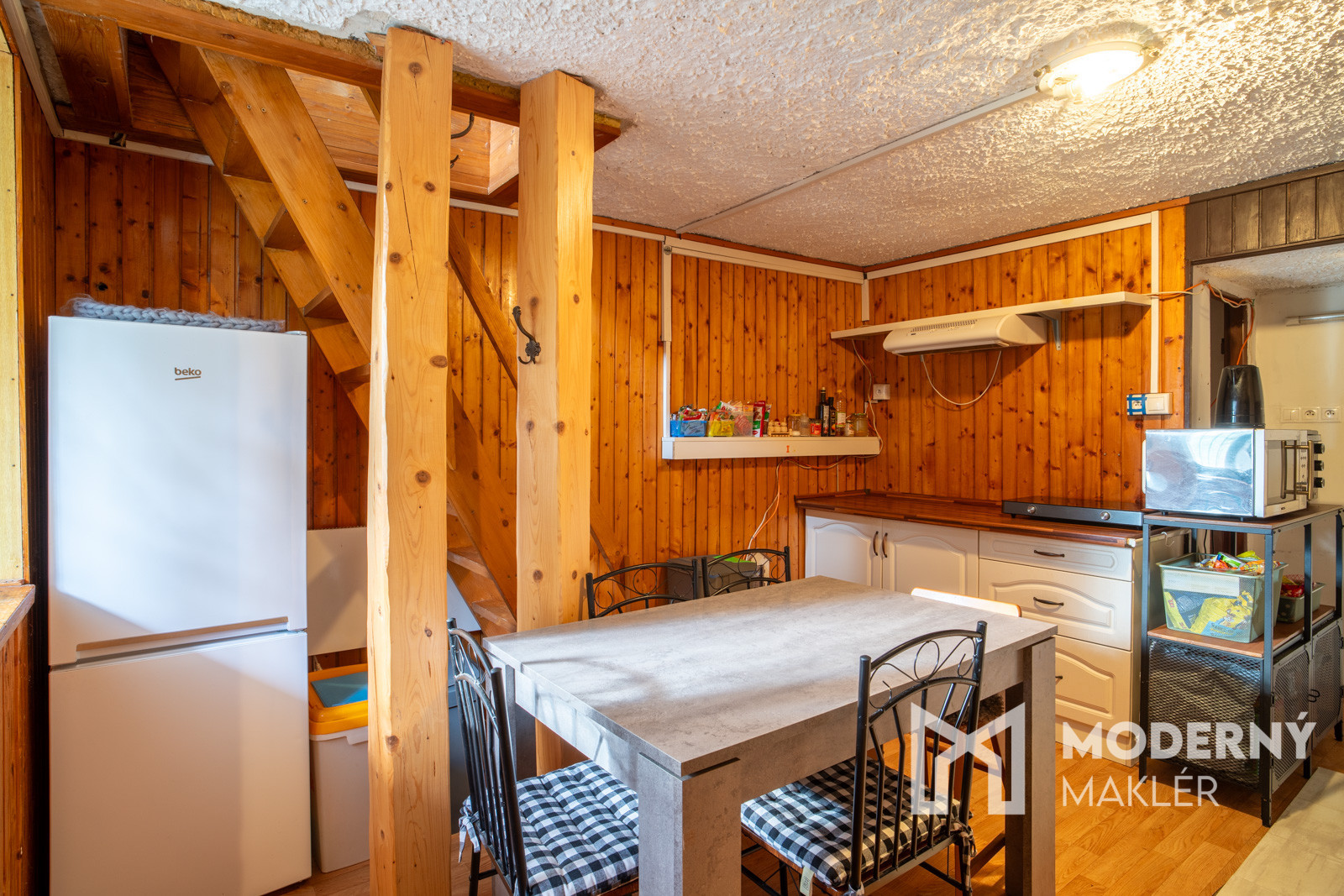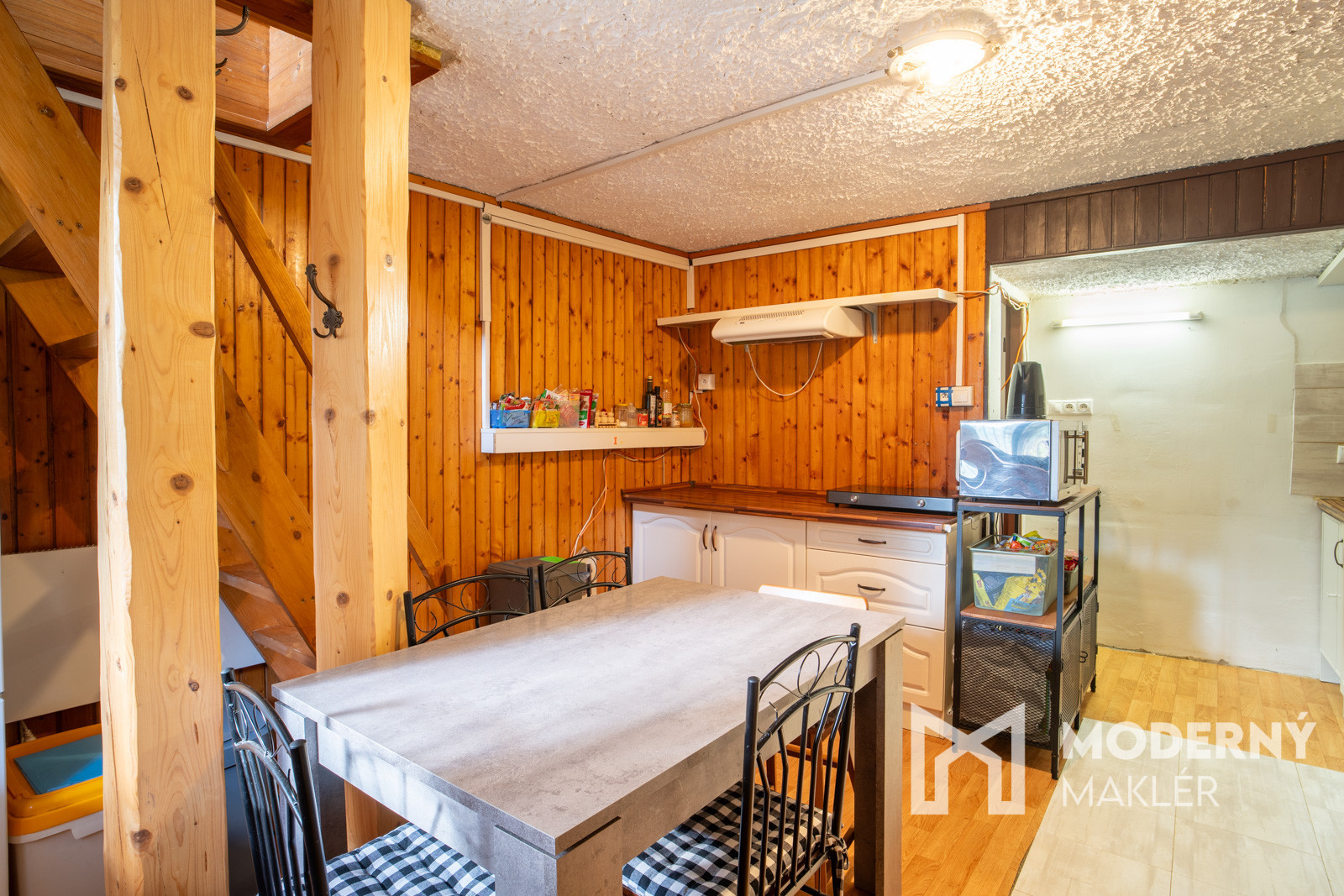 Moderný maklér ponúka na predaj samostatne stojacu záhradnú chatu s možnosťou celoročného bývania v bezprostrednom kontakte s prírodou na upätí Malých Karpát v obci Kuchyňa, neďaleko priehrady. Chata sa nachádza v pokojnom, zeleňou obklopenom prostredí s viacerými celoročne obývanými chatami v susedstve.
