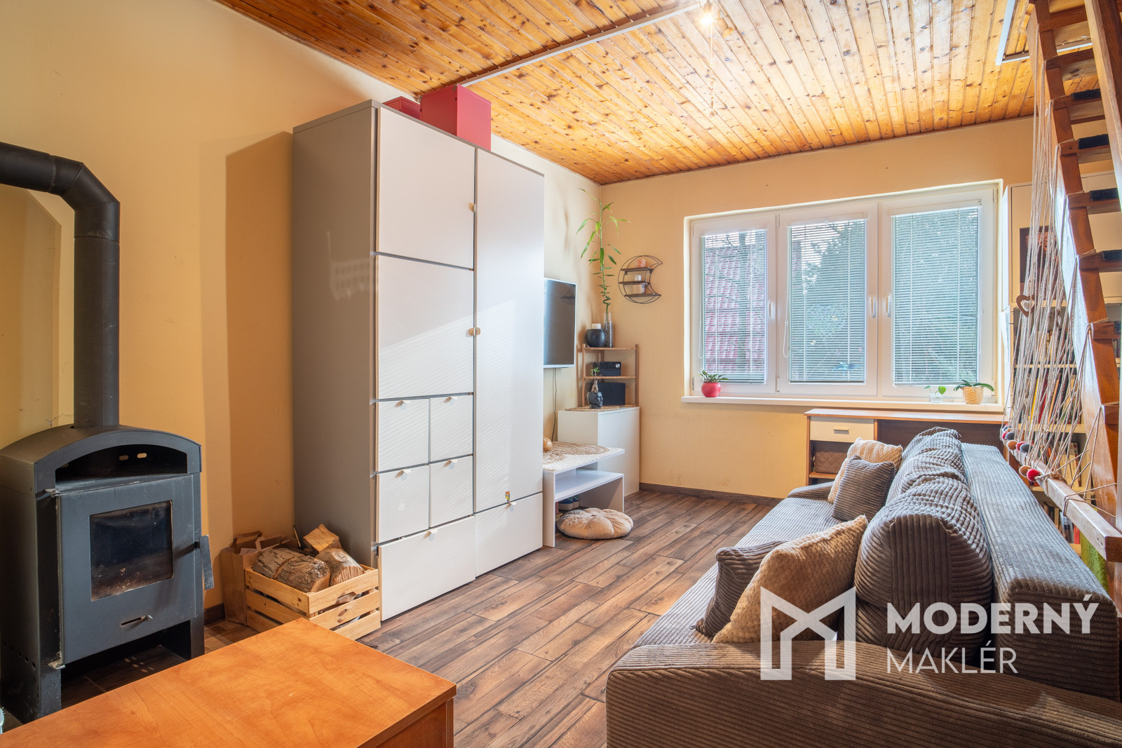 Na prízemí nájdete kuchyňu, technickú miestnosť a pivnicu. Prvé poschodie tvorí vstupné zádverie, obývacia izba a kúpeľňa s WC. Na druhom poschodí sa nachádza izba s praktickým šatníkom. Pozemok vo vlastníctve majiteľa ponúka široké možnosti využitia. V súčasnosti sa na ňom nachádza záhradný domček na náradie, prístrešok so sedením, ovocné stromy a kríky.