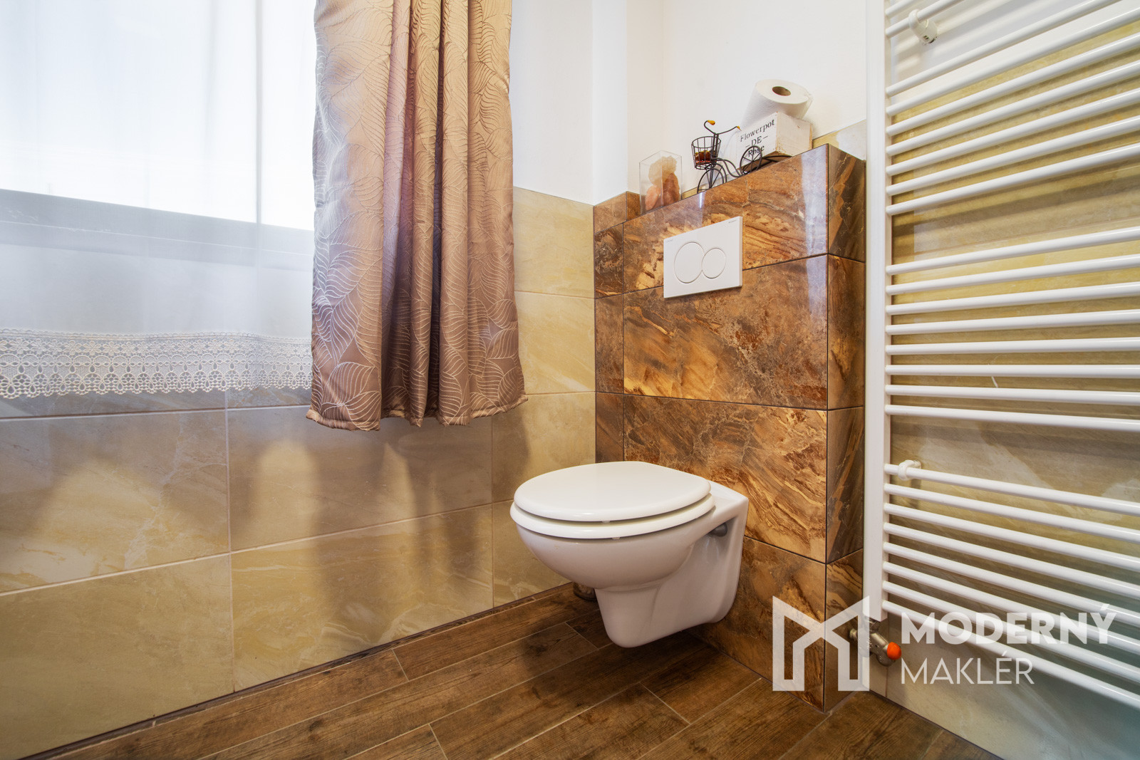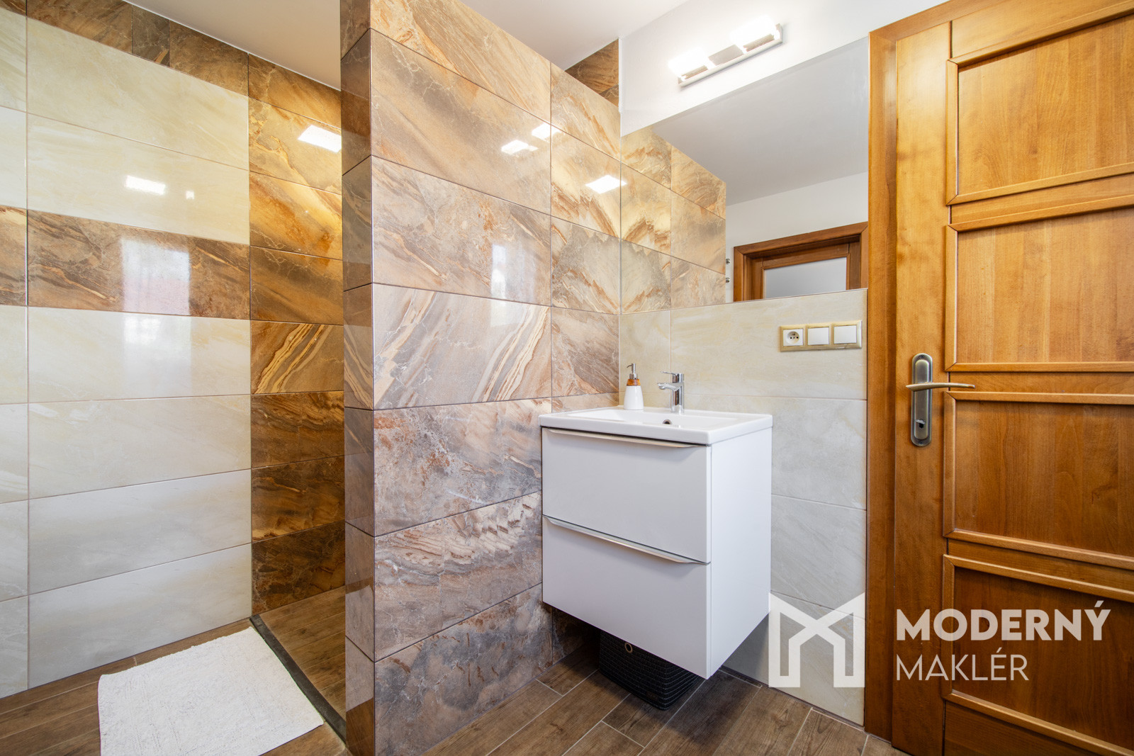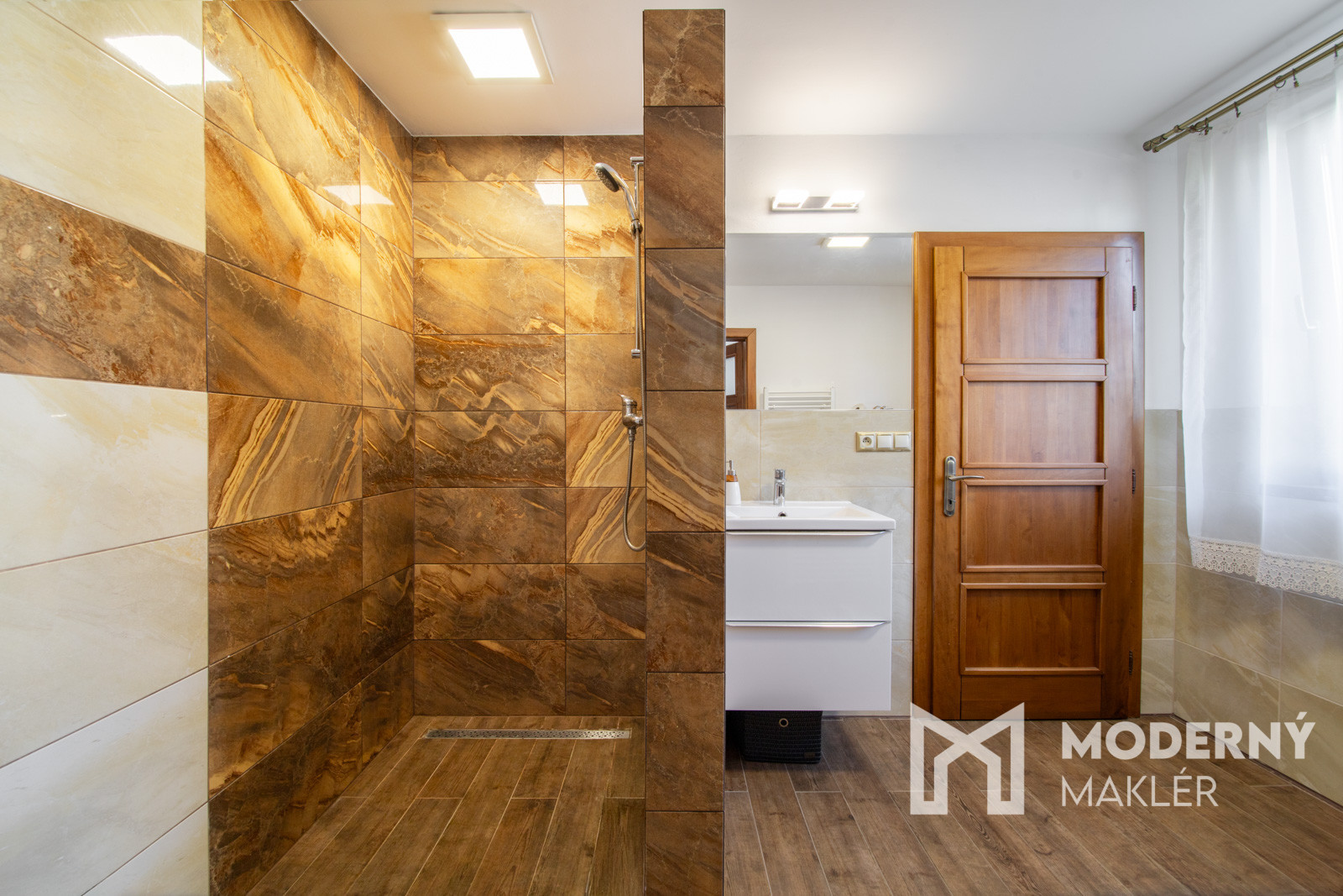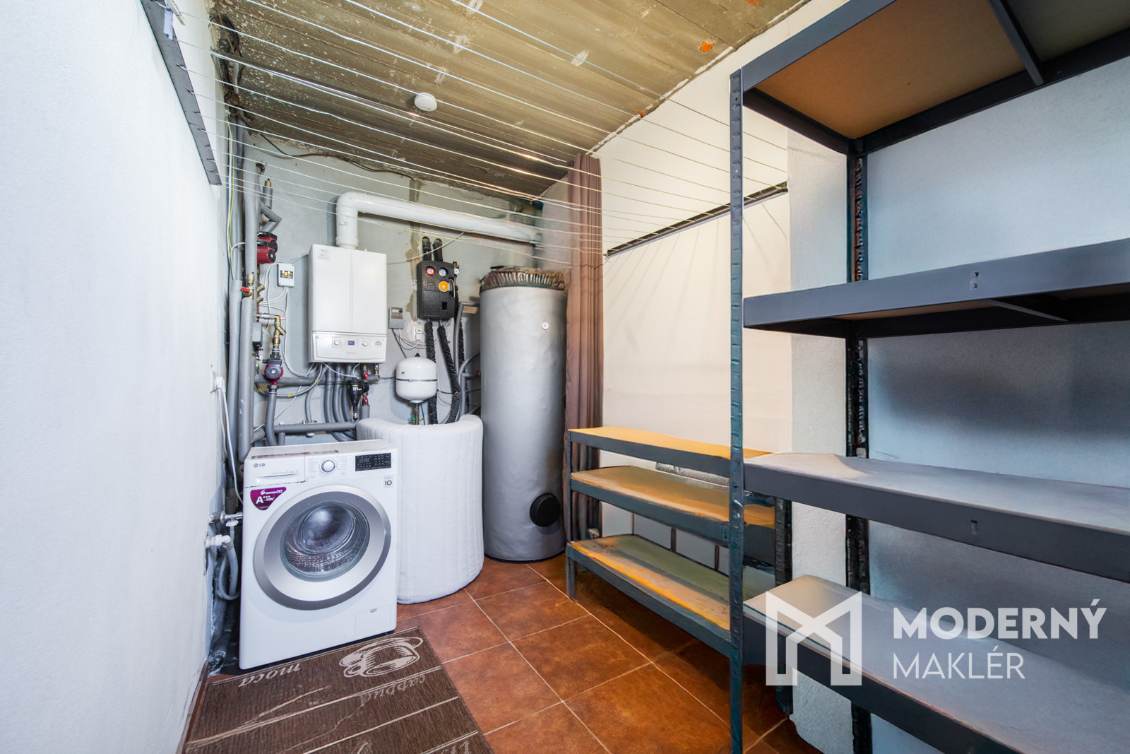 Dom vyniká výborne riešenou dispozíciou, ktorá poskytuje nielen komfortné bývanie, ale aj priestory vhodné na podnikanie. Na prízemí sú v samostatnej časti so samostatným vchodom schválené predajné priestory, ktoré je možné využiť pre vlastné podnikateľské potreby, alebo ich prenajať. Možnosti využitia sú naozaj flexibilné – od kancelárií, cez dielňu, až po menšiu prevádzku. Ide o dve miestnosti s rozlohou 34,4 m2 a 33,6 m2, ku ktorým prislúcha aj toaleta a menší sklad. V prípade záujmu je možné tieto priestory upraviť na plnohodnotné bývanie aj pre ďalšiu rodinu. Ďalšou výhodou sú moderné technológie úspory energie. Mesačné náklady na elektrinu a plyn pre celú nehnuteľnosť sú 100 €/mesačne.