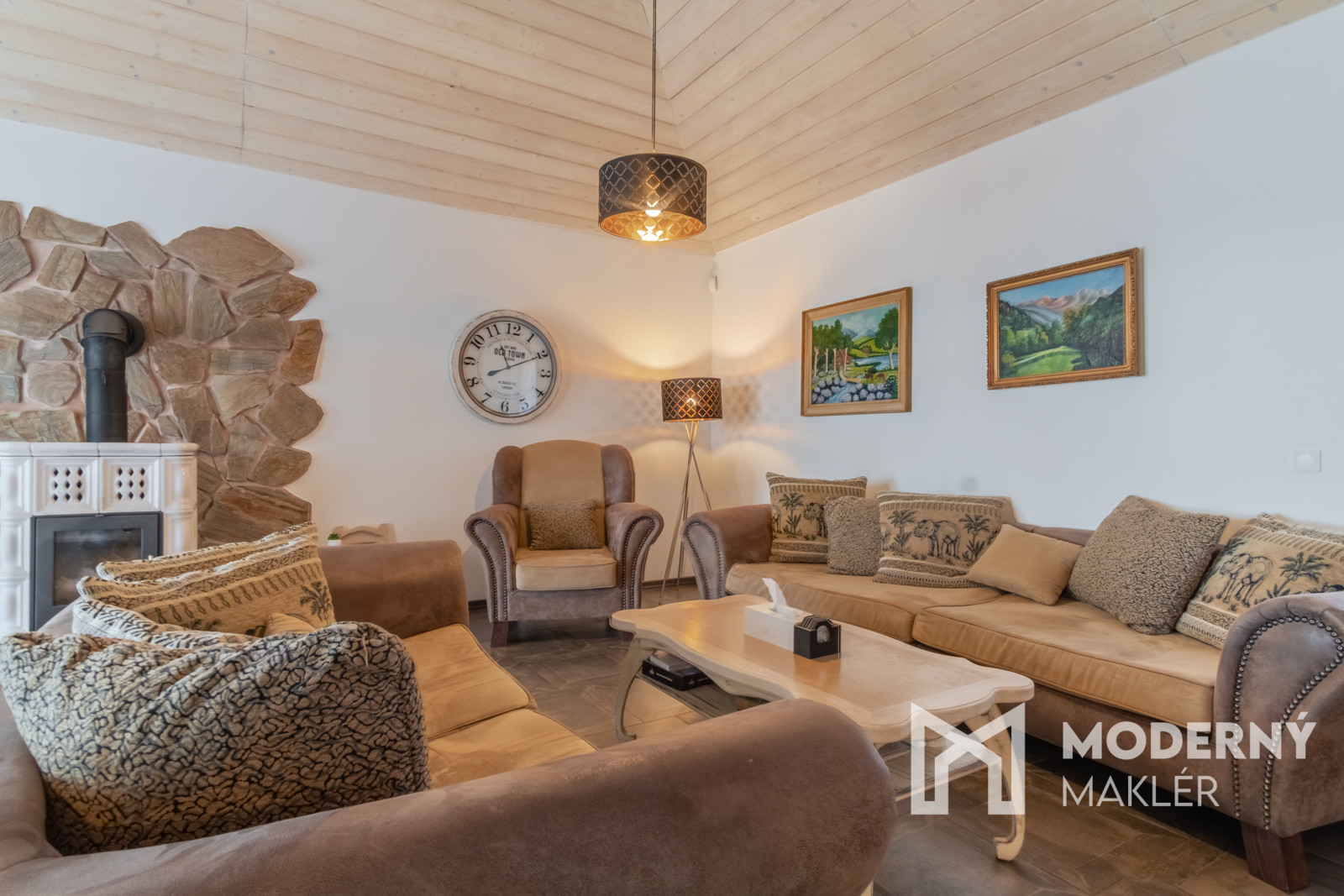 Dom je navrhnutý s dôrazom na pohodlie a funkčnosť. Priestranné zádverie vedie do veľkolepej dennej a oddychovej časti. Hlavným prvkom interiéru je elegantná obývacia hala, ktorá je prepojená s kuchyňou a jedálňou, čím vytvára vzdušný, harmonický priestor s krbovou pecou a provensálskym dizajnom. Vysoké stropy a autentické storočné trámy dodávajú priestoru charakter a luxusný nádych. Nehnuteľnosť disponuje ďalšími tromi izbami, pričom každá z nich má priamy vstup na rozľahlú terasu s panoramatickým výhľadom. K nadštandardnému vybaveniu patria dve elegantné kúpeľne, hosťovská toaleta a šatník. Priamo z dvojgaráže vedie pohodlný vstup do hlavnej chodby. Súčasťou pozemku je štýlový záhradný dom s ručne vyrábanou medenou kuchynskou linkou a s rozlohou vyše 70 m2. Priestranná terasa obklopená zeleňou ponúkne ideálne miesto na relax, šport či spoločenské stretnutia v úplnom súkromí. Nehnuteľnosť sa predáva kompletne zariadená, pričom každý detail bol starostlivo vybraný s dôrazom na prvotriednu kvalitu a jedinečný dizajn.