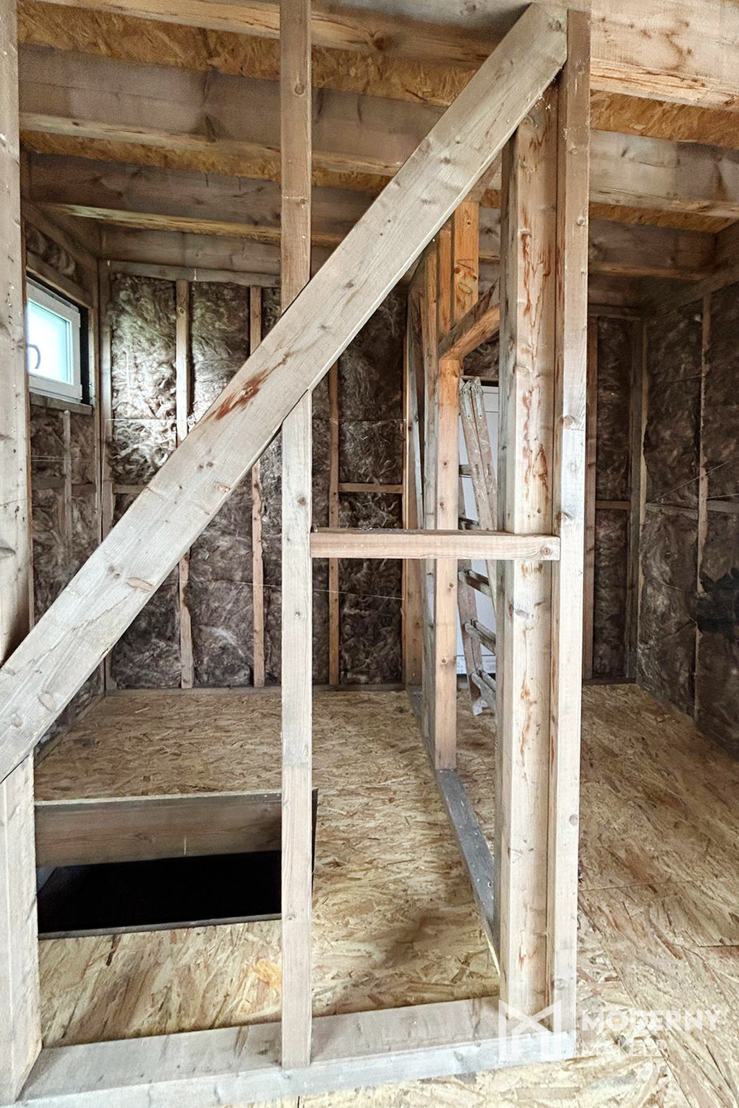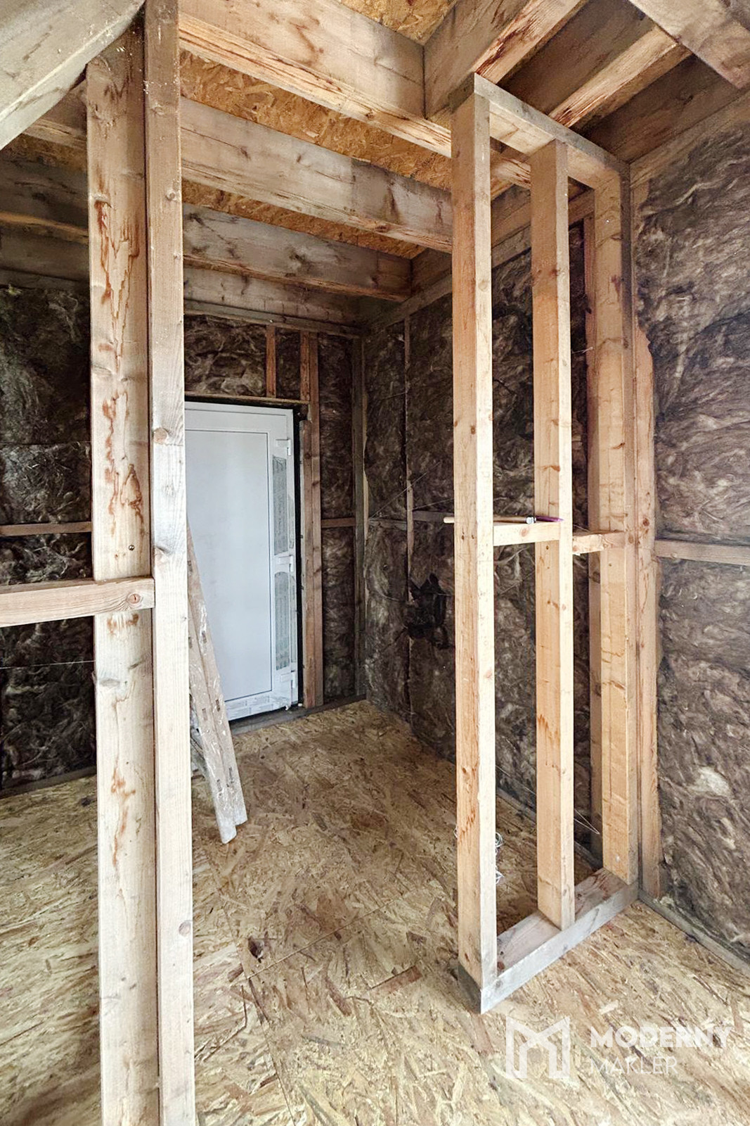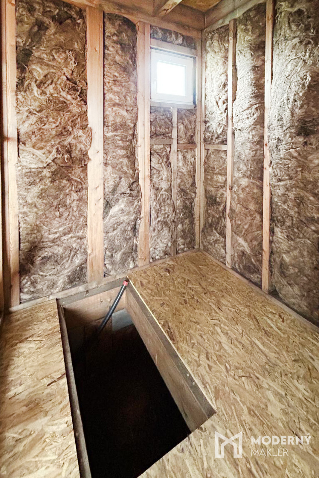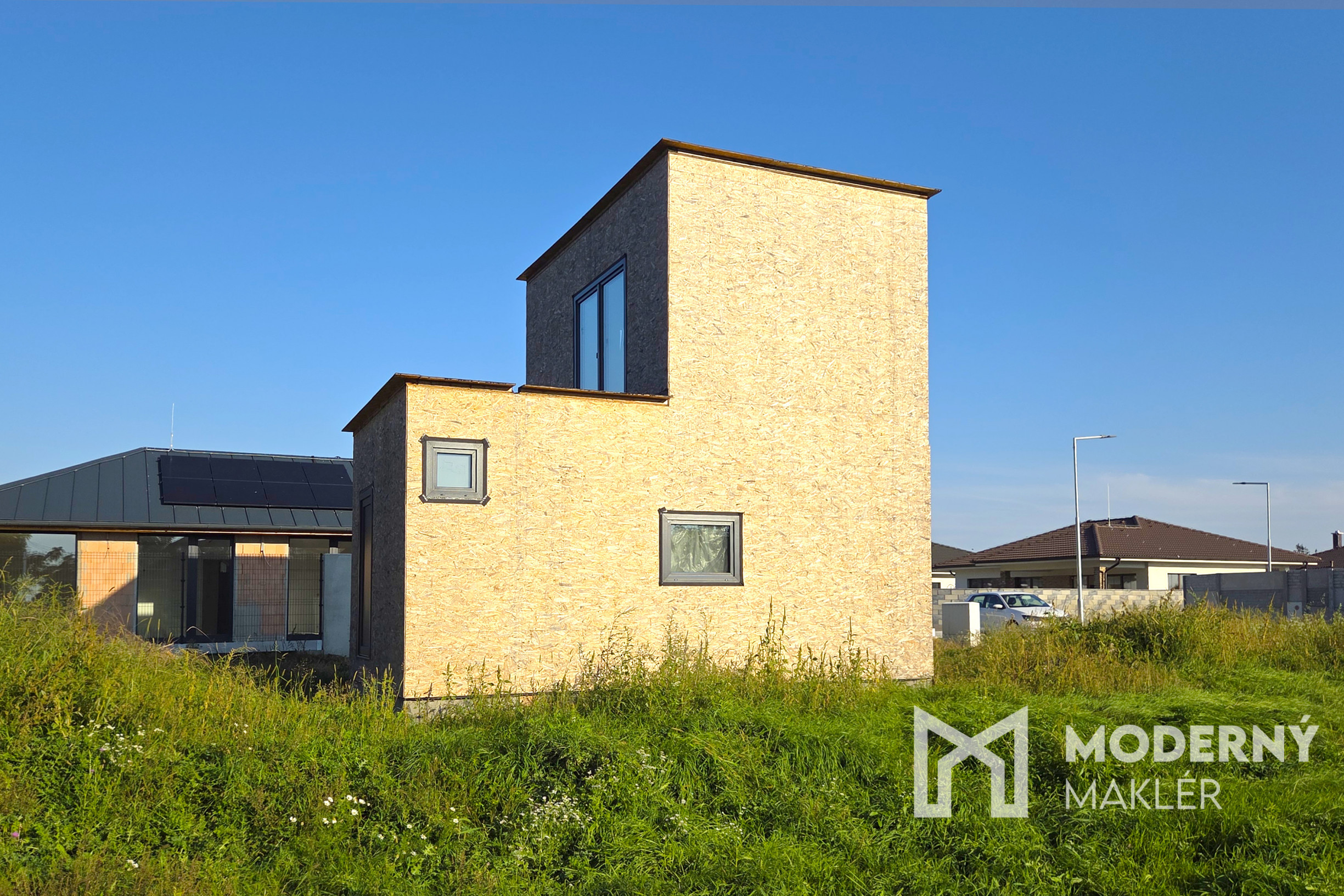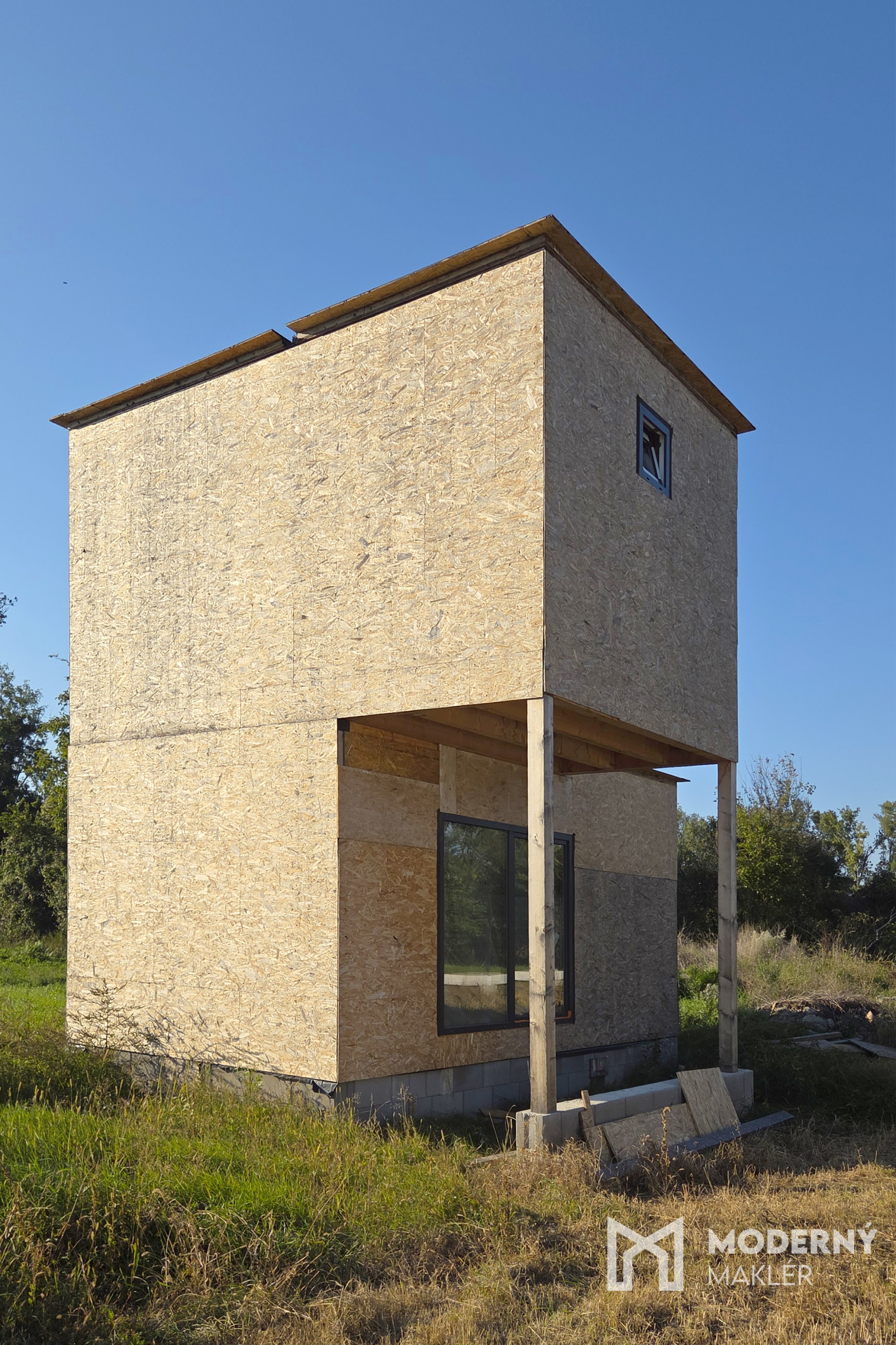 Modulový drevodom moderného typu je nepodpivničený, postavený na základovej doske. Na prízemí, s rozmermi 7×4 m, sa nachádza obývacia izba spojená s kuchyňou, kúpeľňa s toaletou a vstupná chodba. Poschodie, s rozmermi 6×4 m, tvorí spálňa so šatníkom a veľká terasa. Drevodom bude dostavaný do štandardu, s možnosťou dokončenia podľa predstáv nového majiteľa.