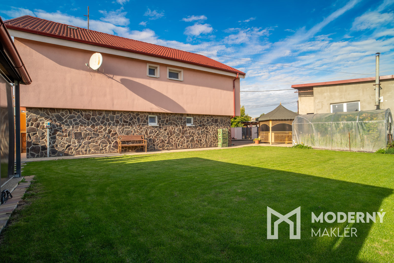 Rodinný dom v Gabčíkove predstavuje priestrannú nehnuteľnosť vhodnú aj pre väčšie rodiny a poskytuje možnosť okamžitého nasťahovanie bez potreby dodatočných investícií najmä vďaka vkusnej kompletnej rekonštrukcii. Najväčším benefitom sú nízke prevádzkové náklady, ktoré zodpovedajú obvyklým nákladom na trojizbový byt. Výhodou je aj rozmerná dielňa, ktorú môže nový majiteľ využiť na rôzne účely či ako garáž a záujemcovia určite ocenia aj nadštandardný pozemok, ktorý zabezpečuje množstvo priestoru na voľnočasové účely a ďalšiu realizáciu.