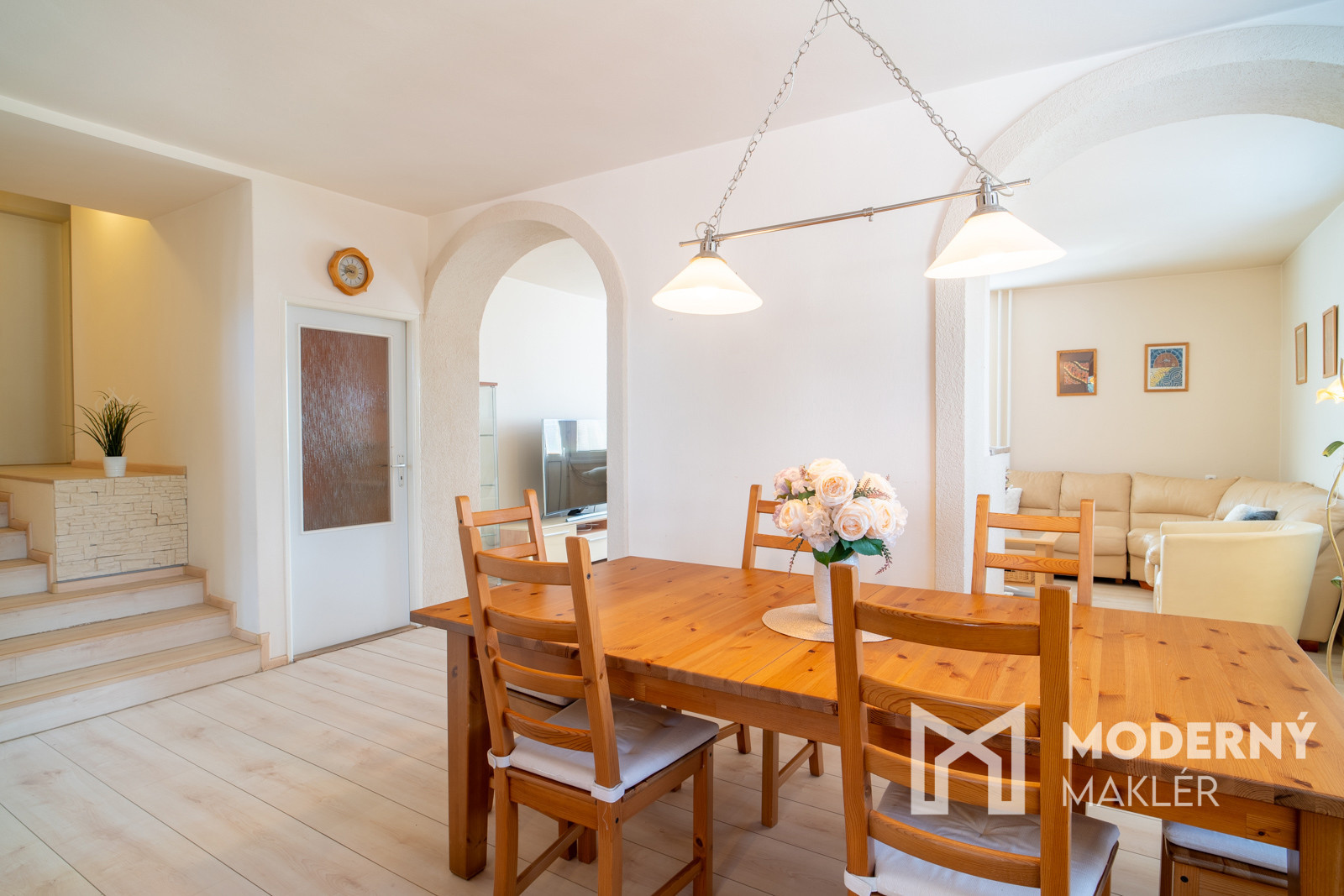 Moderný maklér ponúka na predaj presvetlený zrekonštruovaný rodinný dom v meste Gabčíkovo. Rodinný dom disponuje množstvom obytného priestoru aj vďaka 5 izbám, pivničným priestorom a garáži a prislúcha k nemu aj bývalá zváračská dielňa, altánok, fóliovník a krytá terasa, ktoré sú súčasťou pozemku. Obrovským benefitom nehnuteľnosti sú nízke náklady na bývanie.