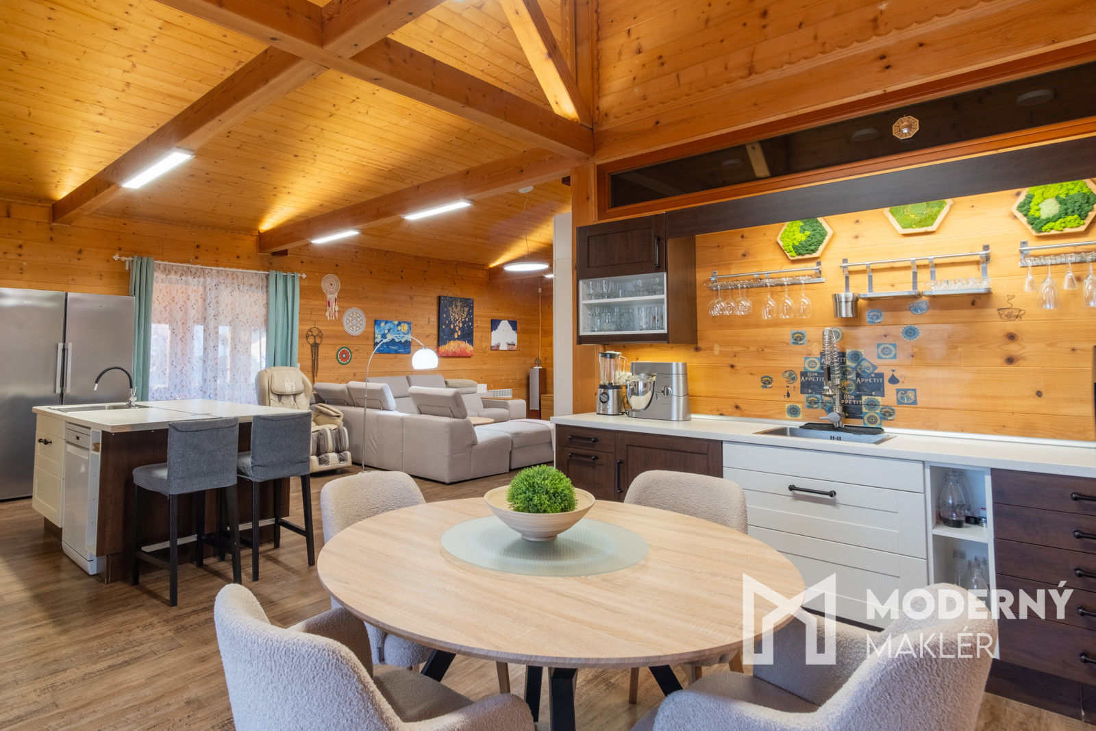 Moderný maklér ponúka na predaj jedinečný rodinný dom vo Veľkom Slavkove, postavený v roku 2014. Nehnuteľnosť predstavuje modernú drevostavbu, ktorá svojím architektonickým riešením harmonicky zapadá do okolitej prírody. Dom disponuje rozsiahlou terasou a podpivničenou dvojgarážou a nachádza sa na tichej ulici s úchvatným výhľadom na Vysoké Tatry. Výnimočným prvkom tejto nehnuteľnosti je kúpacie jazierko s rybičkami, ktoré vytvára jedinečnú atmosféru pokoja a relaxu. Pozemok s rozlohou 2 073 m² ponúka množstvo priestoru a možností na realizáciu rôznych predstáv nových majiteľov – od oddychovej zóny, cez záhradu až po ďalšie doplnkové stavby.
