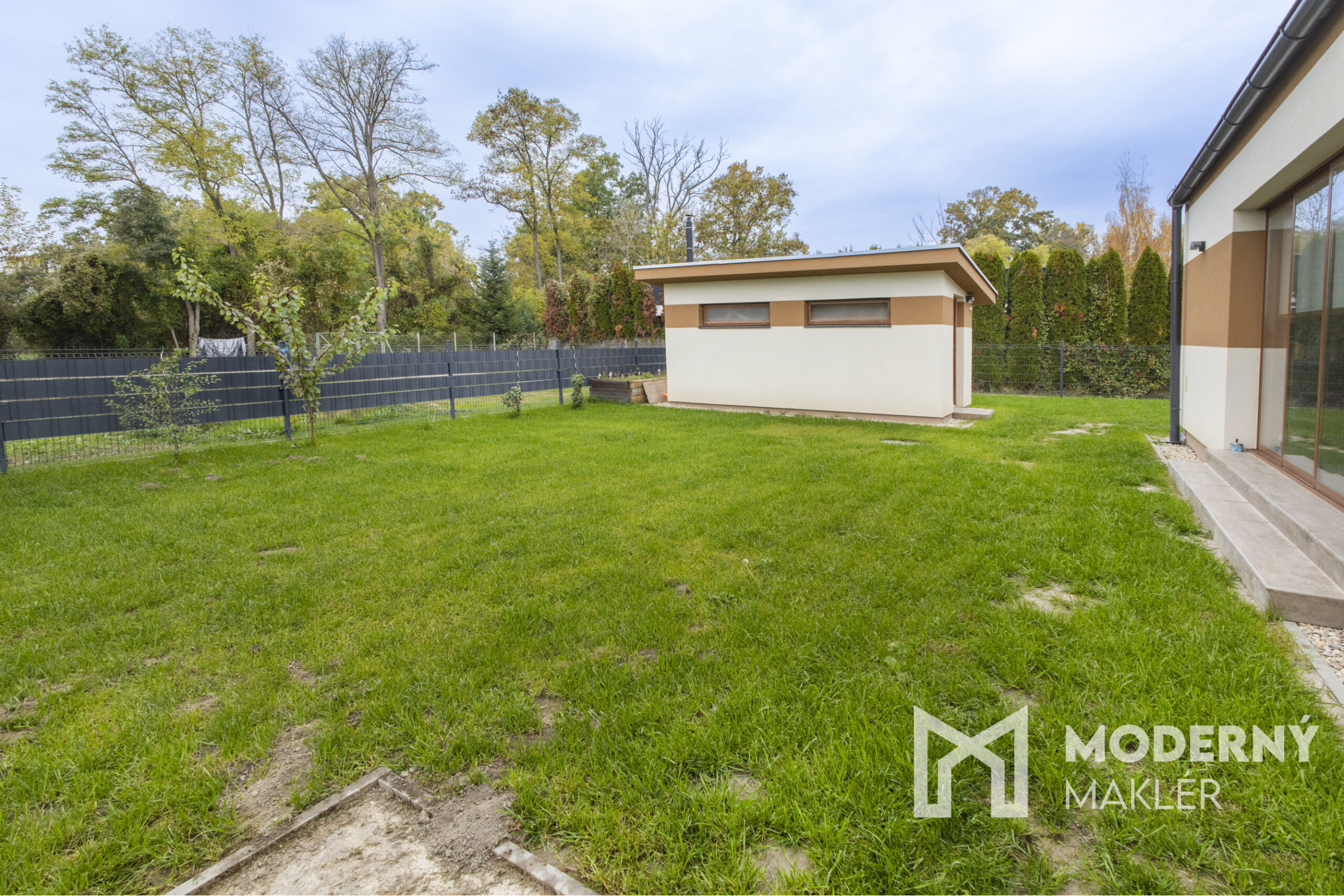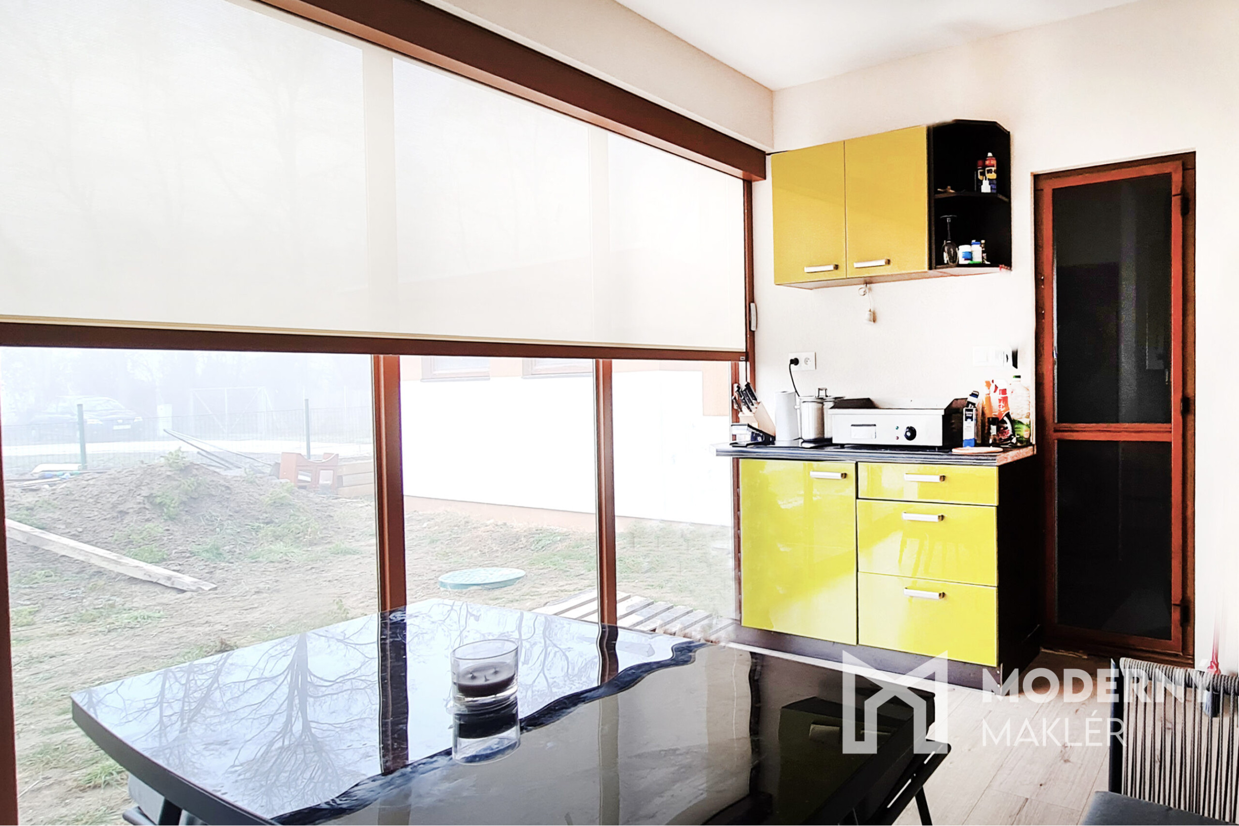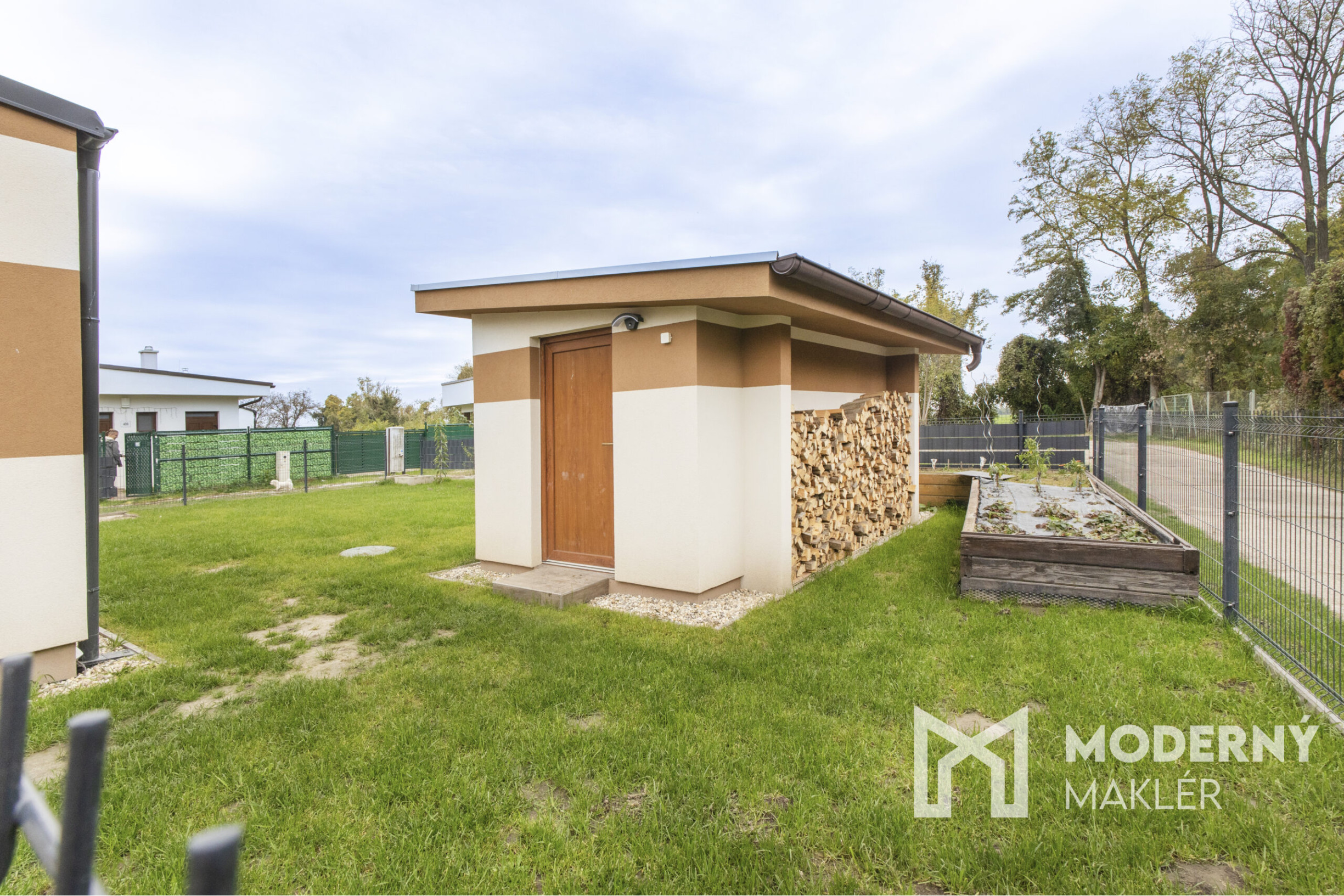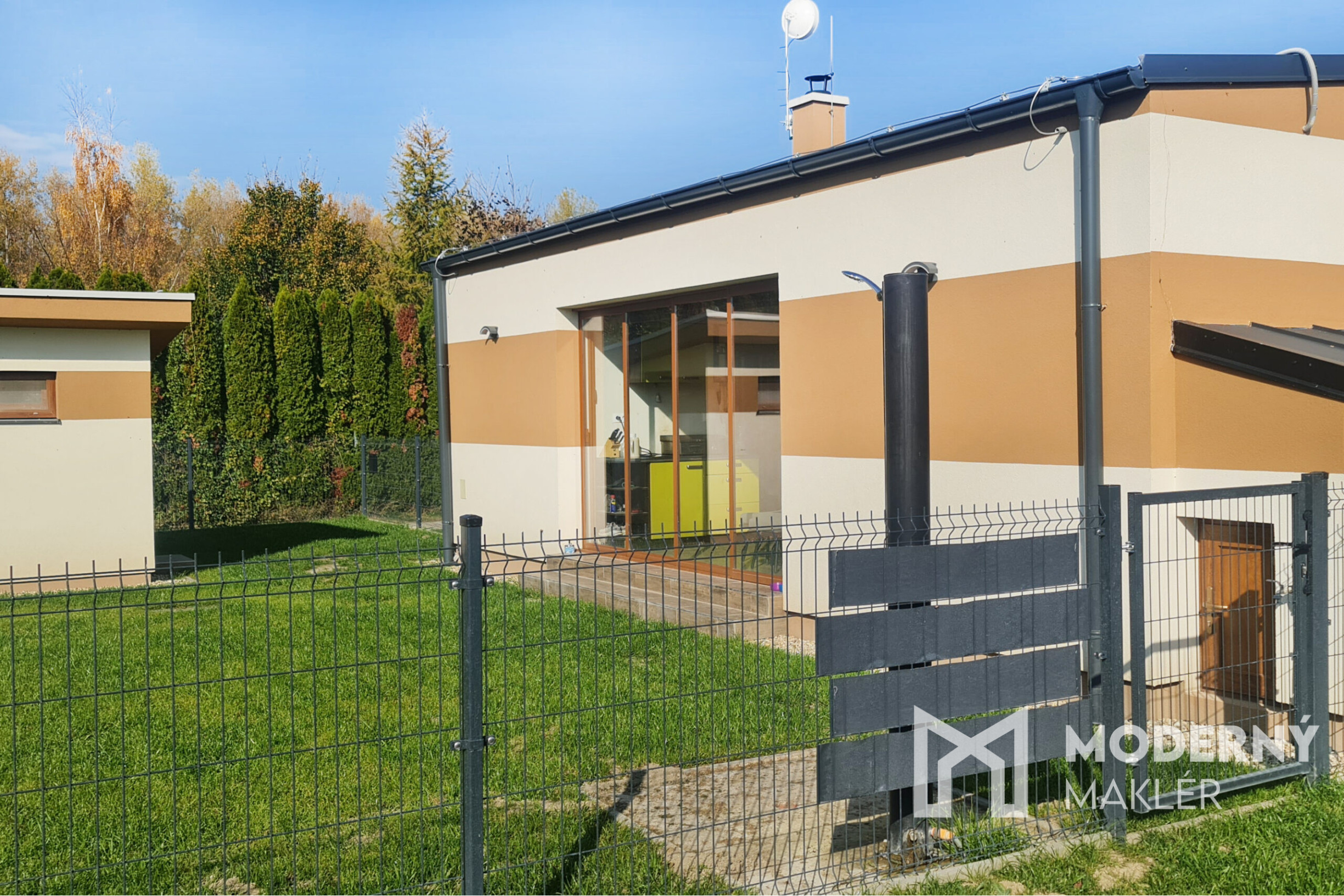 Budova je postavená z tehly, šikmá strecha je zo zatepleného plechu. V celom dome je teplovodné podlahové kúrenie napojené na kotol s možnosťou ovládania cez smartfón. Podlahy sú laminátové, laminát sa nachádza aj na terase a v kúpeľni je položená dlažba. Okná sú drevené eurookná. Terasa je uzatvorená posuvným systémom a tienenie je zabezpečené elektrickou roletou na diaľkové ovládanie. Terasa sa dá vďaka vykurovaniu využívať celoročne. Odvod vody je do cerifikovanej čističky odpadových vôd s objemom 10m3. K domu prislúcha sklad na náradie postavený z itongu, so zateplením vo výmere 13m2. Sklad je napojený na elektrinu. Kolaudácia domu prebehla v roku 2023.