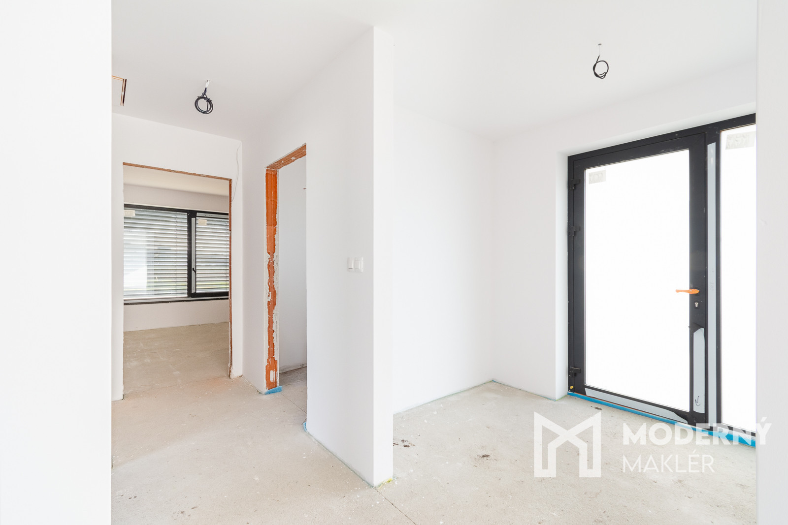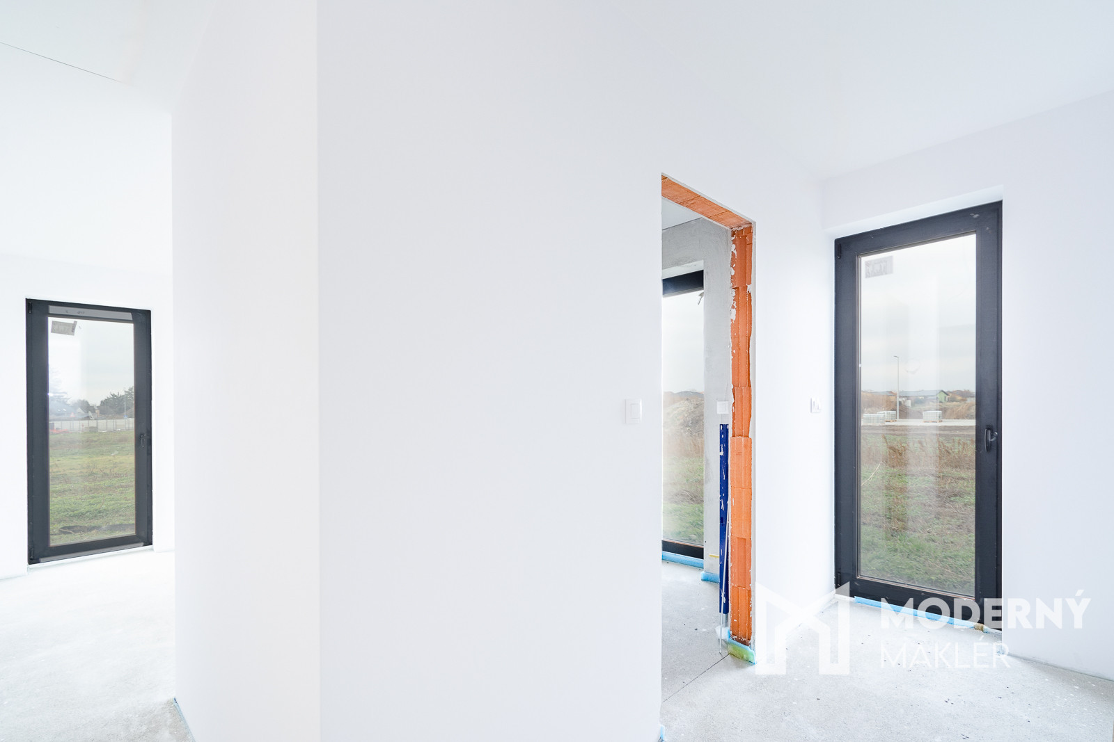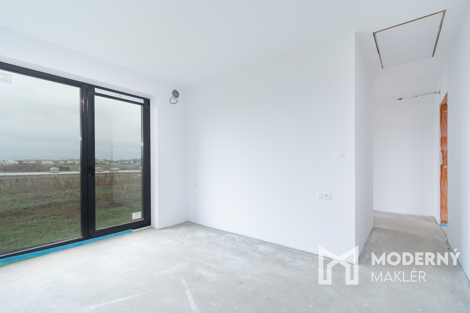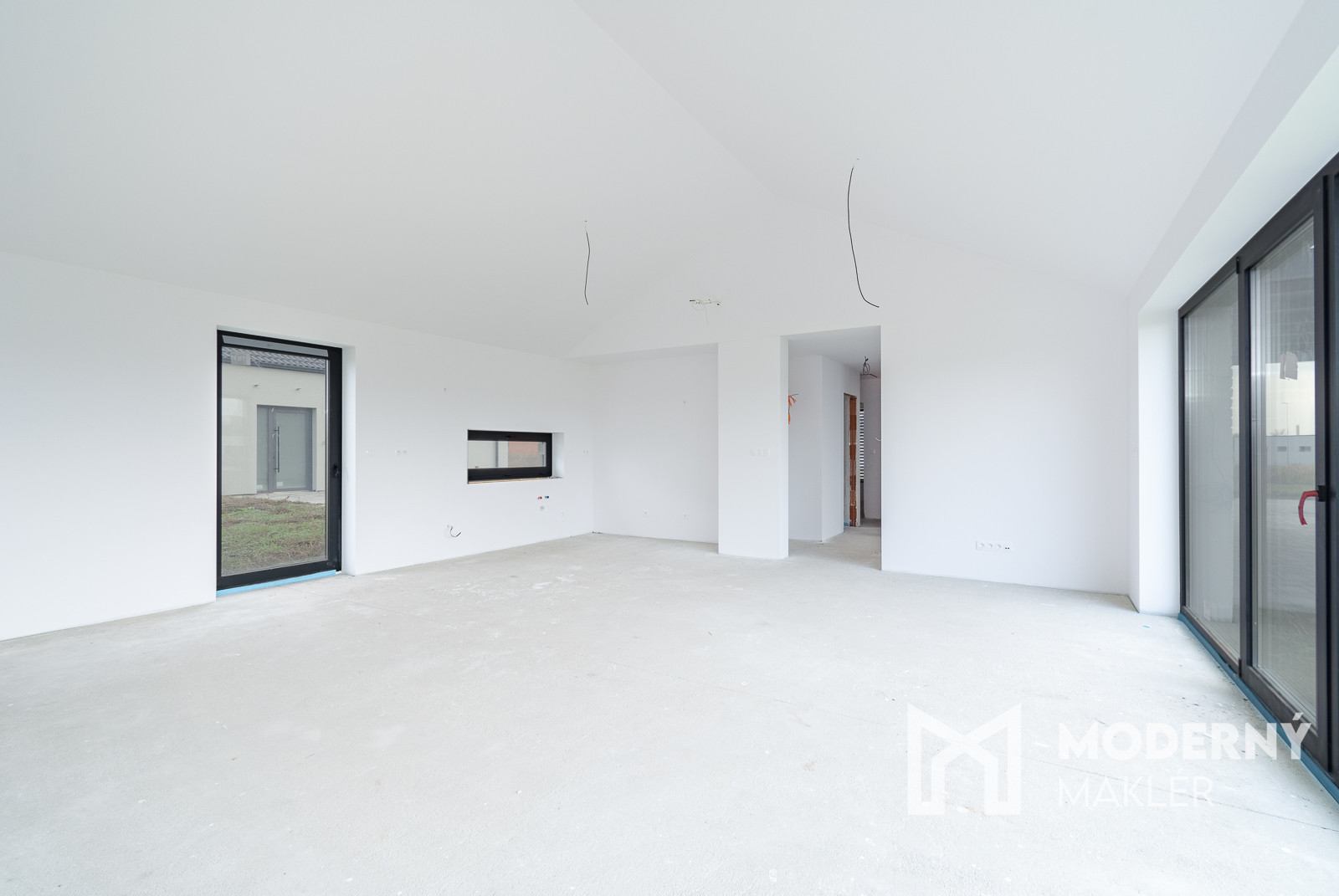 Moderný maklér ponúka na predaj novostavbu priestranného 4-izbového rodinného domu postaveného v roku 2024. Dom sa nachádza v novej a atraktívnej lokalite obce Biely Kostol len niekoľko minút od Trnavy. Benefitom je vynikajúco presvetlený priestor vďaka veľkoformátovým oknám a vysokým stropom, pričom moderné riešenia a možnosť dokončenia na kľúč robia z nehnuteľnosti ideálne rodinné bývanie. Na pozemku a priamo pred domom pohodlne zaparkujete tri autá.
