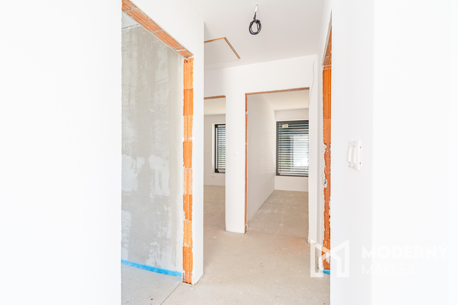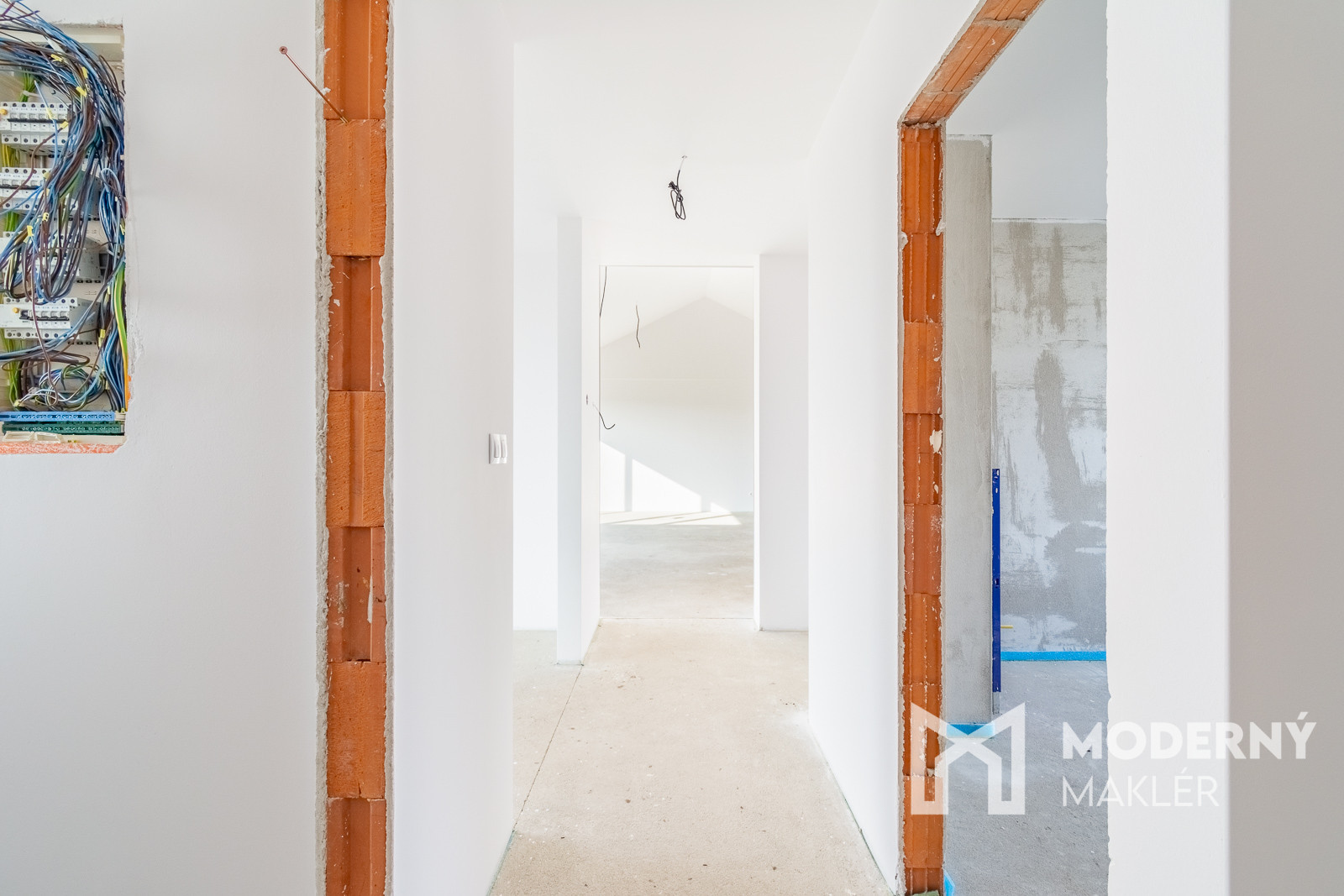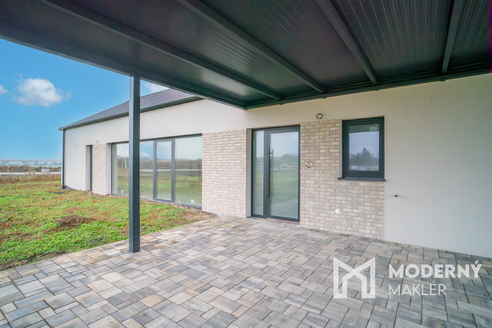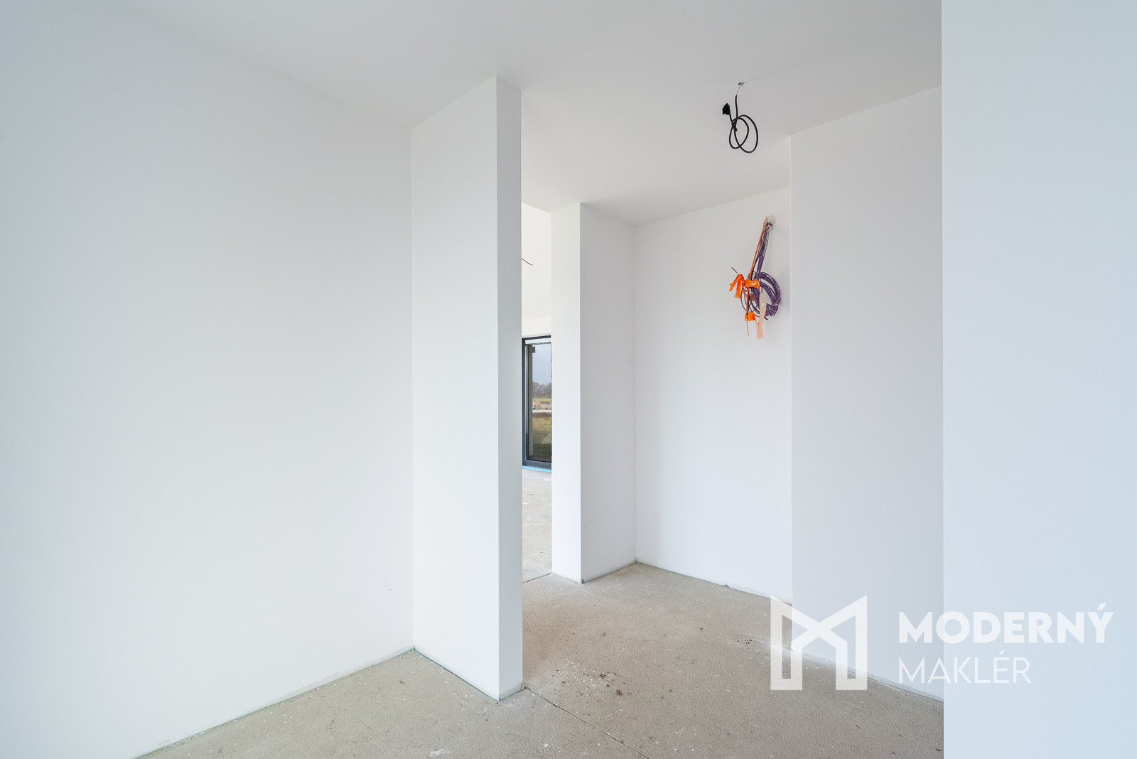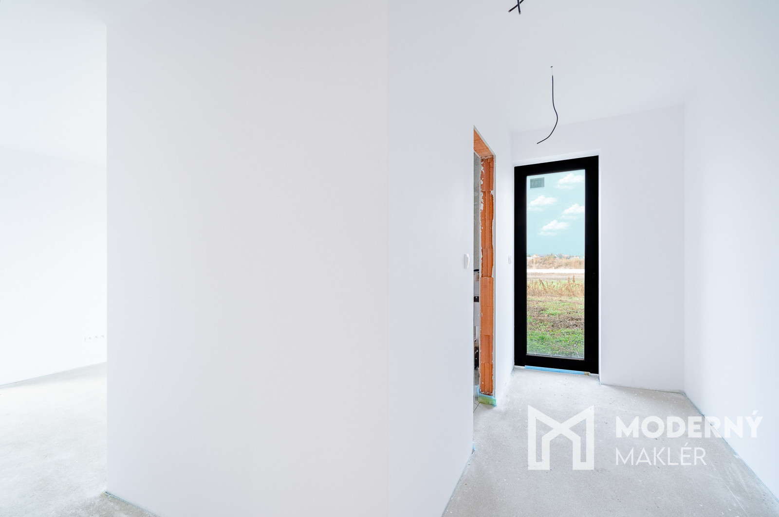 Moderný maklér ponúka na predaj novostavbu priestranného 4-izbového rodinného domu postaveného v roku 2024. Dom sa nachádza v novej a atraktívnej lokalite obce Biely Kostol len niekoľko minút od Trnavy. Benefitom je vynikajúco presvetlený priestor vďaka veľkoformátovým oknám a vysokým stropom, pričom moderné riešenia a možnosť dokončenia na kľúč robia z nehnuteľnosti ideálne rodinné bývanie. Na pozemku a priamo pred domom pohodlne zaparkujete tri autá.