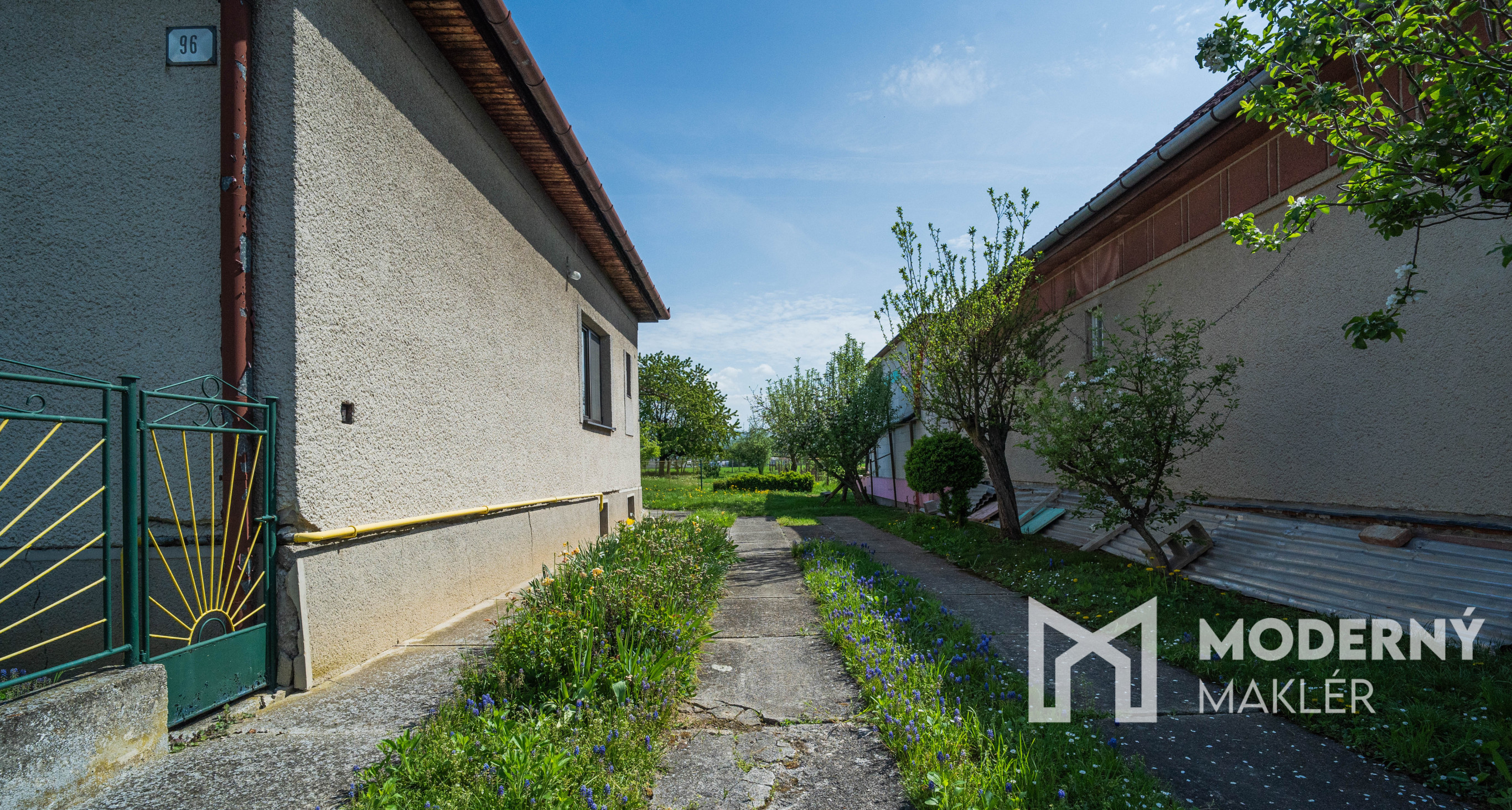 Dom pozostáva zo vstupnej chodby, samostatného WC a miestom na sedenie. Z chodby je prístup do samostatnej kuchyne, z ktorej je prístup do priestrannej spálne. Obývacia izba je oddelená, rovnako ako detská izba. Kúpeľňa je plne vybavená. Dom je kompletne podpivničený so vstupom priamo z chodby. Zo vstupnej časti je prístup aj na povalu, ktorá slúži ako úložný priestor s možnosťou budúcej rekonštrukcie. Na pozemku sa nachádza zimná záhrada a odkladacie priestory na náradie. Parkovanie je zabezpečené vo dvore, priamo pri dome.