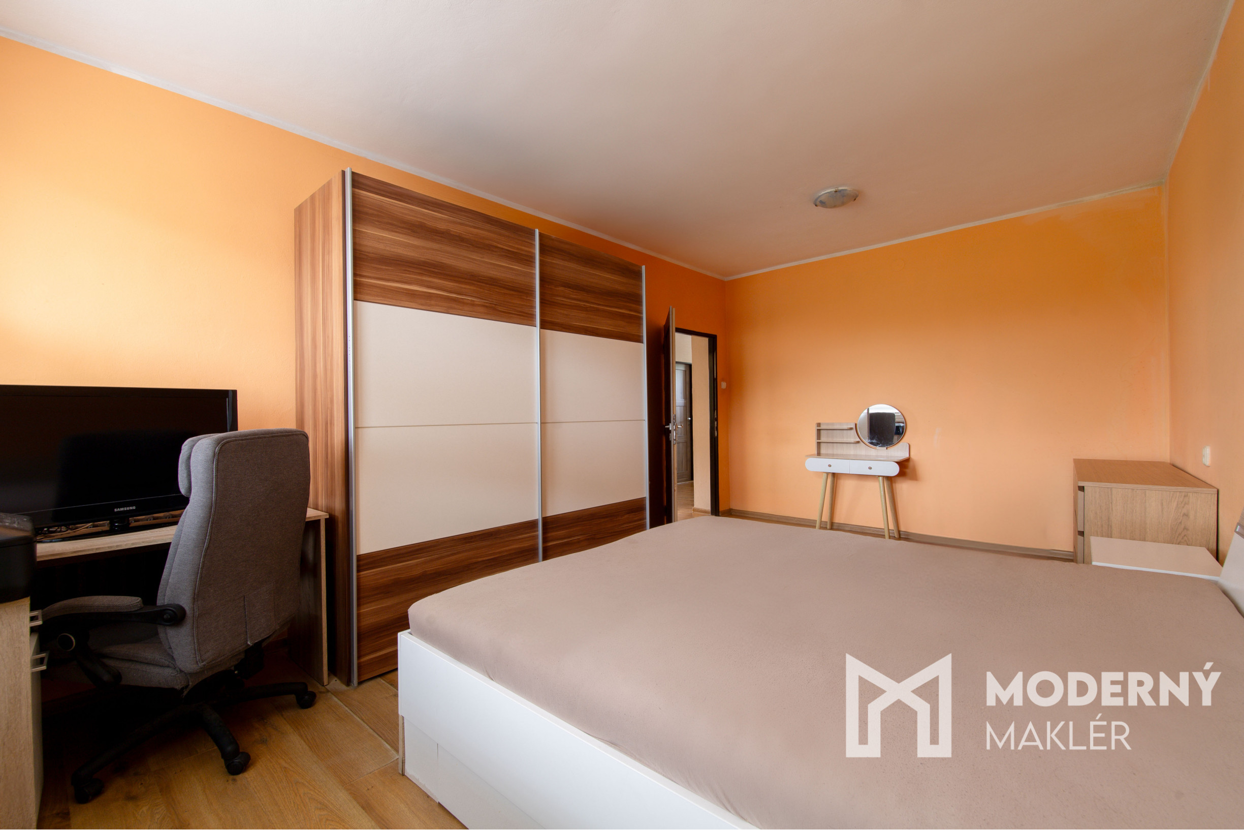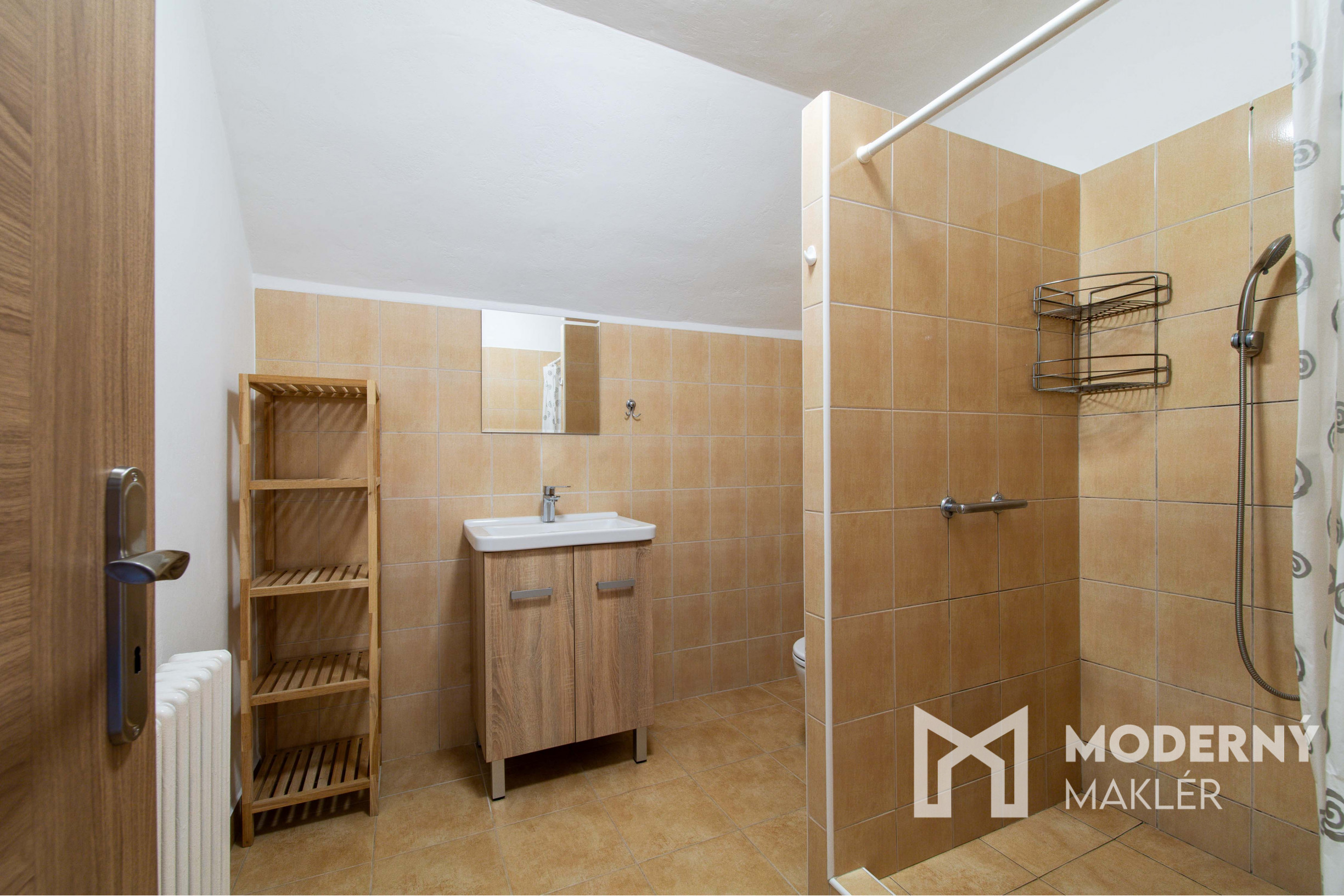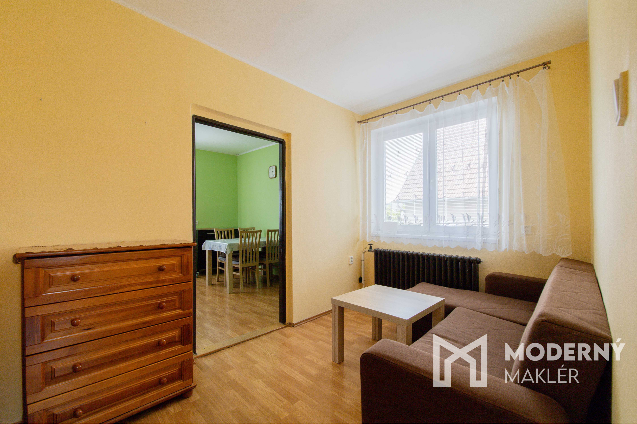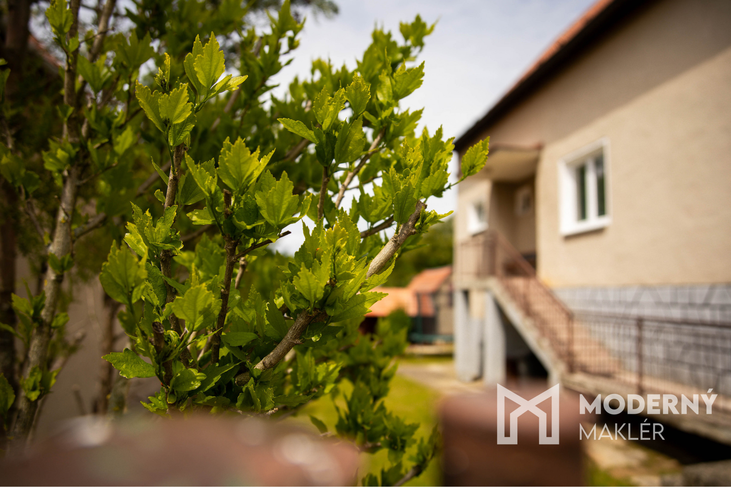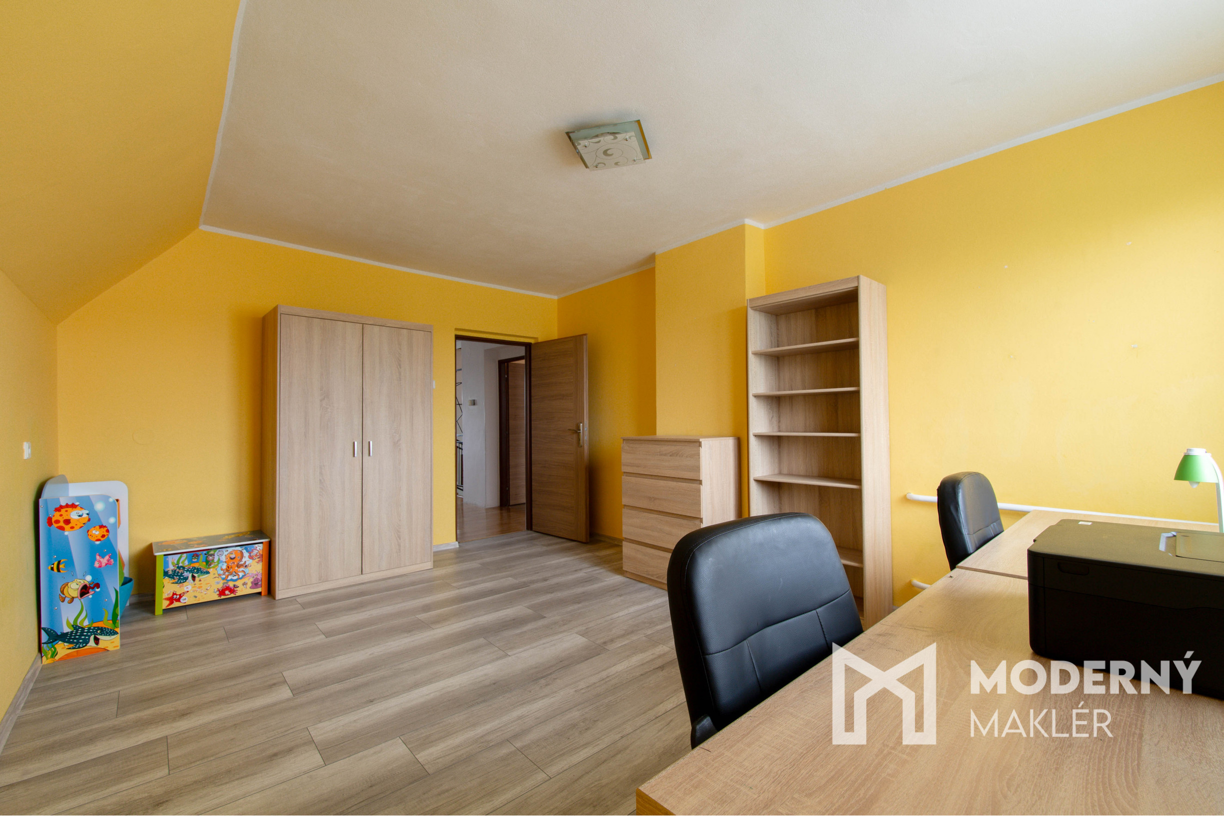 Na prízemí rodinného domu sa nachádza priestranné zádverie s úložným priestorom a vešiakovou zostavou, z ktorého sa vstupuje do hlavnej chodby. Časť domu ďalej ponúka samostatné WC, veľkú kúpeľňu s vaňou, komoru, obývaciu izbu, spálňu a kuchyňu. Prvé nadzemné podlažie tvorí chodba spojená s obývacou izbou, spálňa s výstupom na balkón, detská izba, kúpeľňa s WC a veľkorysá komora. Obe podlažia rodinného domu sú prepojené vnútorným schodiskom, ktoré pokračuje až do pivničných priestorov. Dom je kompletne podpivničený s množstvom úložného priestoru a ponúka potenciál na sebarealizáciu v podobe možnej prestavby na ďalšie obytné miestnosti alebo dielne. Praktickosť bývania zvyšujú dva samostatné vchody do domu. Nehnuteľnosť sa predáva čiastočne zariadená. Súčasťou predaja zostáva kompletná kuchynská linka so sporákom, praktické jedálenské sedenie, vstavaný úložný priestor, obývacia zostava a sedacia súprava.
