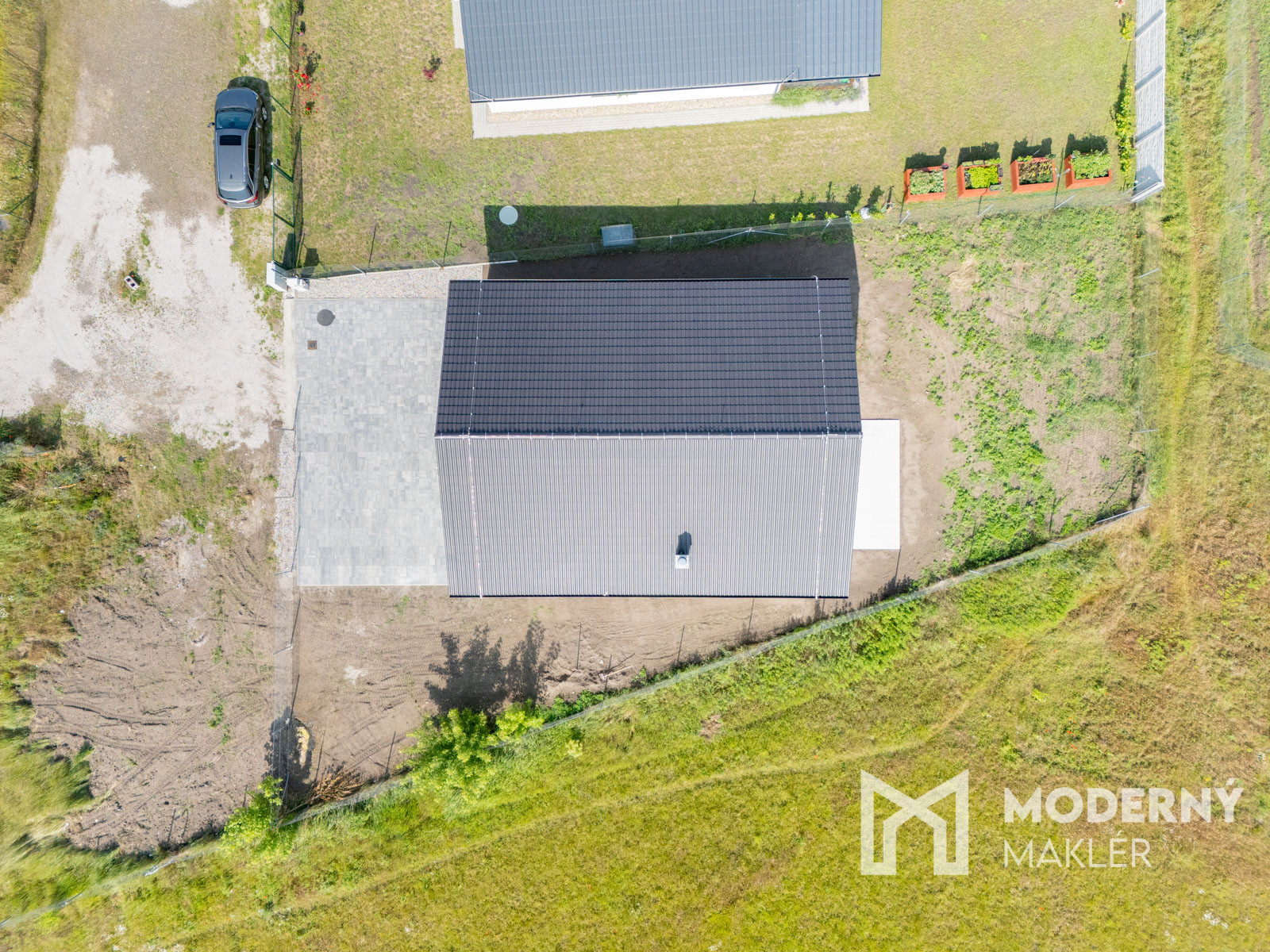 Exteriér nehnuteľnosti je prakticky riešený – disponuje vsakovaním dažďovej vody, oplotením pozemku pletivovým plotom, komínom pripraveným na krbové kachle a predprípravou na elektrickú posuvnú bránu. Samozrejmosťou je aj predpríprava na kamerový systém, alarm, klimatizáciu a vonkajšie osvetlenie. Na pozemok je taktiež privedená prípojka na plyn. Zateplenie rodinného domu je riešené polystyrénom s hrúbkou 20 cm. Strešná krytina je z betónovej škridly a je zateplená fúkanou izoláciou o hrúbke 20 cm.