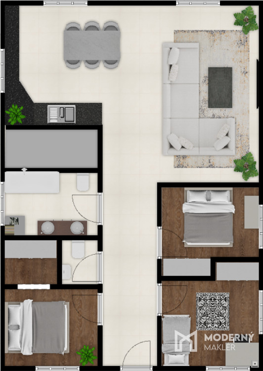 Moderný maklér ponúka na predaj úplne nový, samostatne stojaci 4-izbový bungalov v novovybudovanej štvrti v obci Zohor, len 15 minút od Bratislavy. Dom je postavený na priestrannom pozemku v príjemnej, tichej lokalite a je napojený na všetky inžinierske siete. Parkovanie pre tri vozidlá je možné priamo na pozemku.