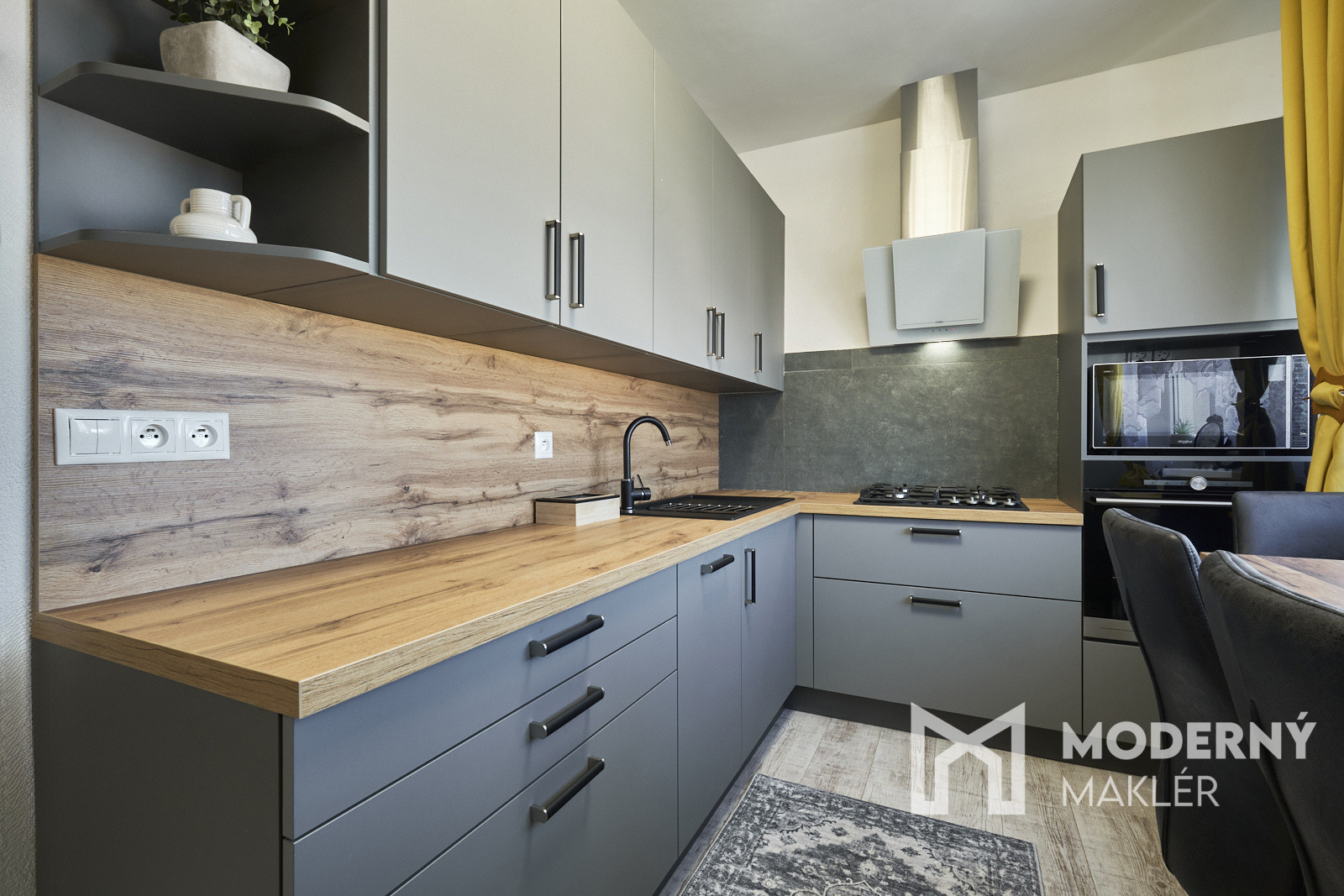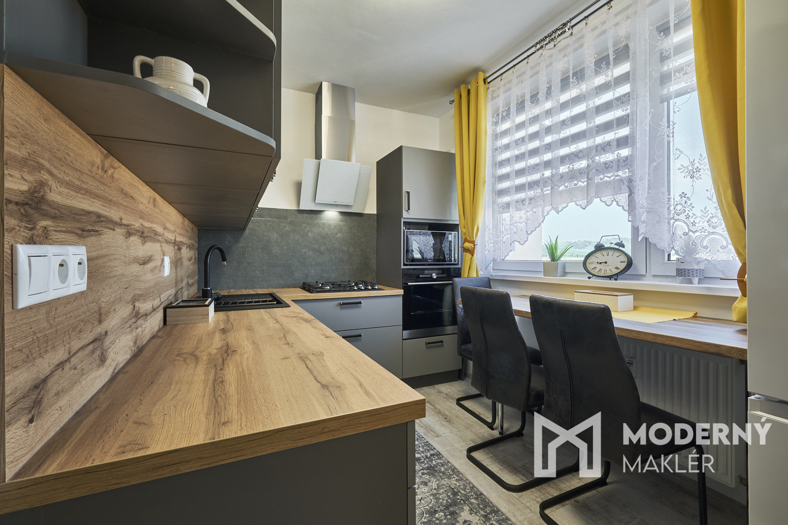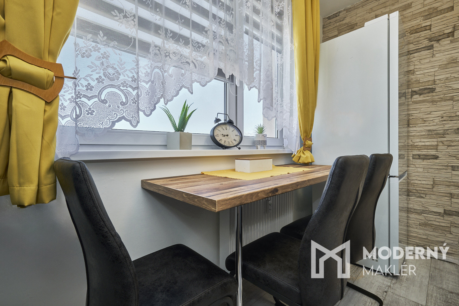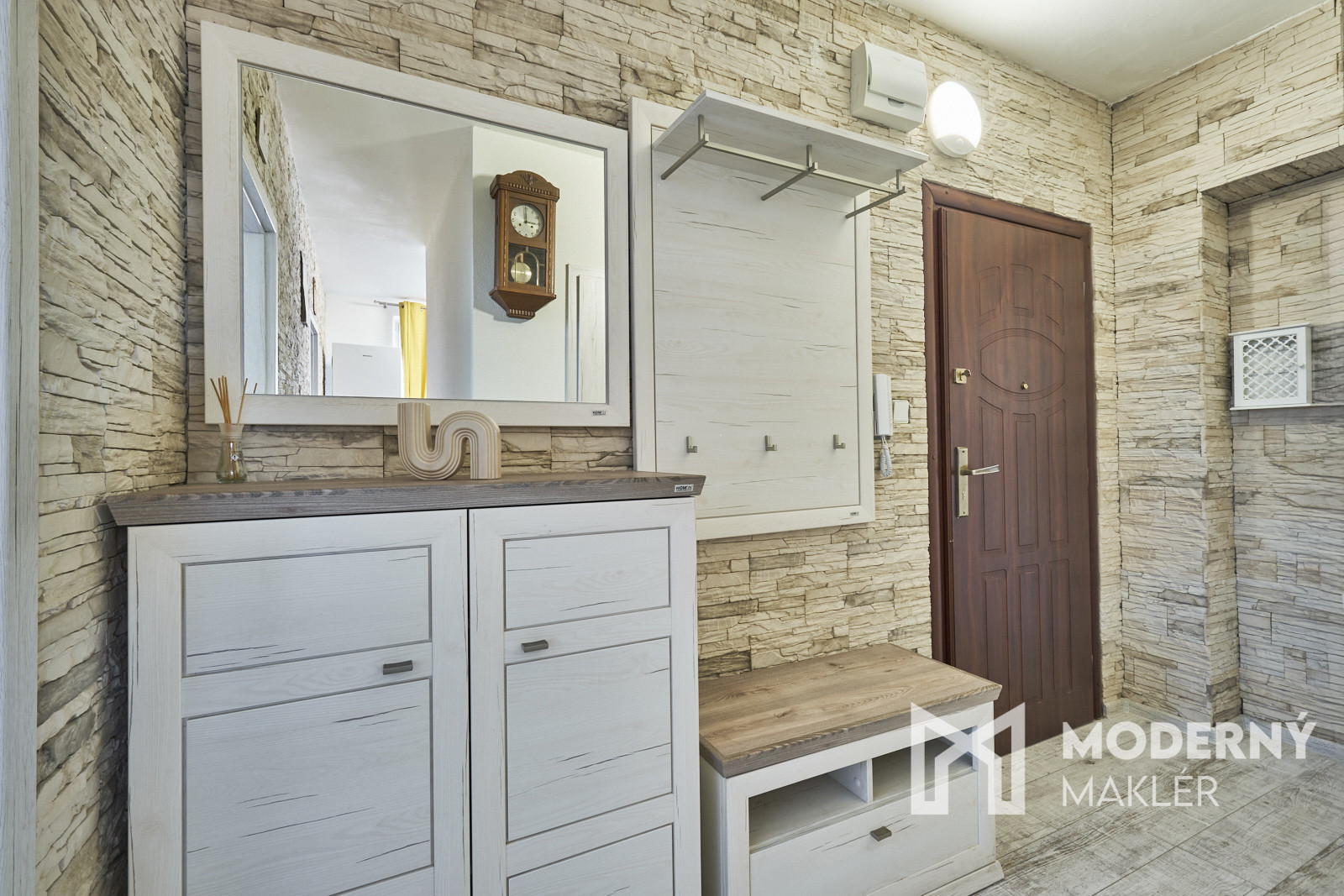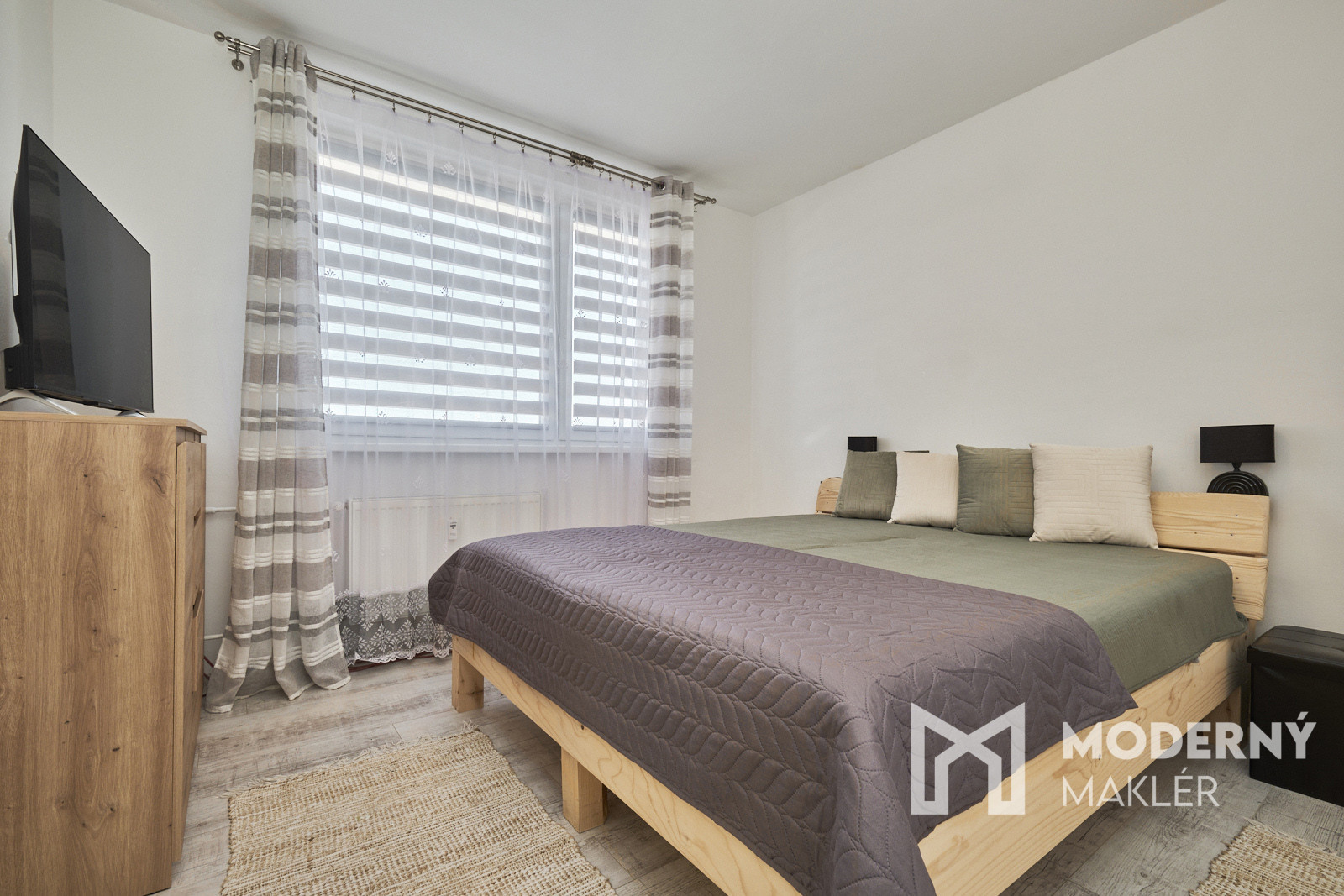 Nehnuteľnosť sa predáva kompletne zariadená. Kuchyňa je vybavená novou kuchynskou linkou so vstavanými spotrebičmi vrátane umývačky riadu, mikrovlnnej rúry a chladničky. Obývacia izba disponuje vkusným sektorovým nábytkom, sedacou súpravou a praktickou vstavanou skriňou. Spálňa je zariadená manželskou posteľou. Všetko vybavenie je nové a dodáva sa so zárukou.