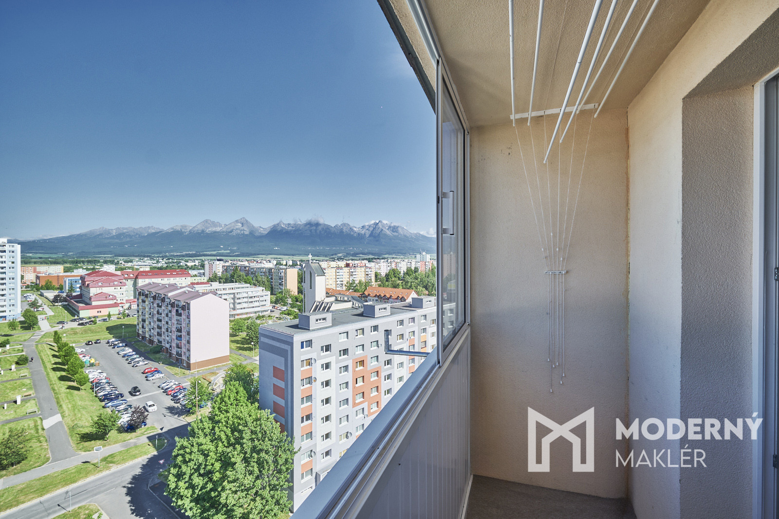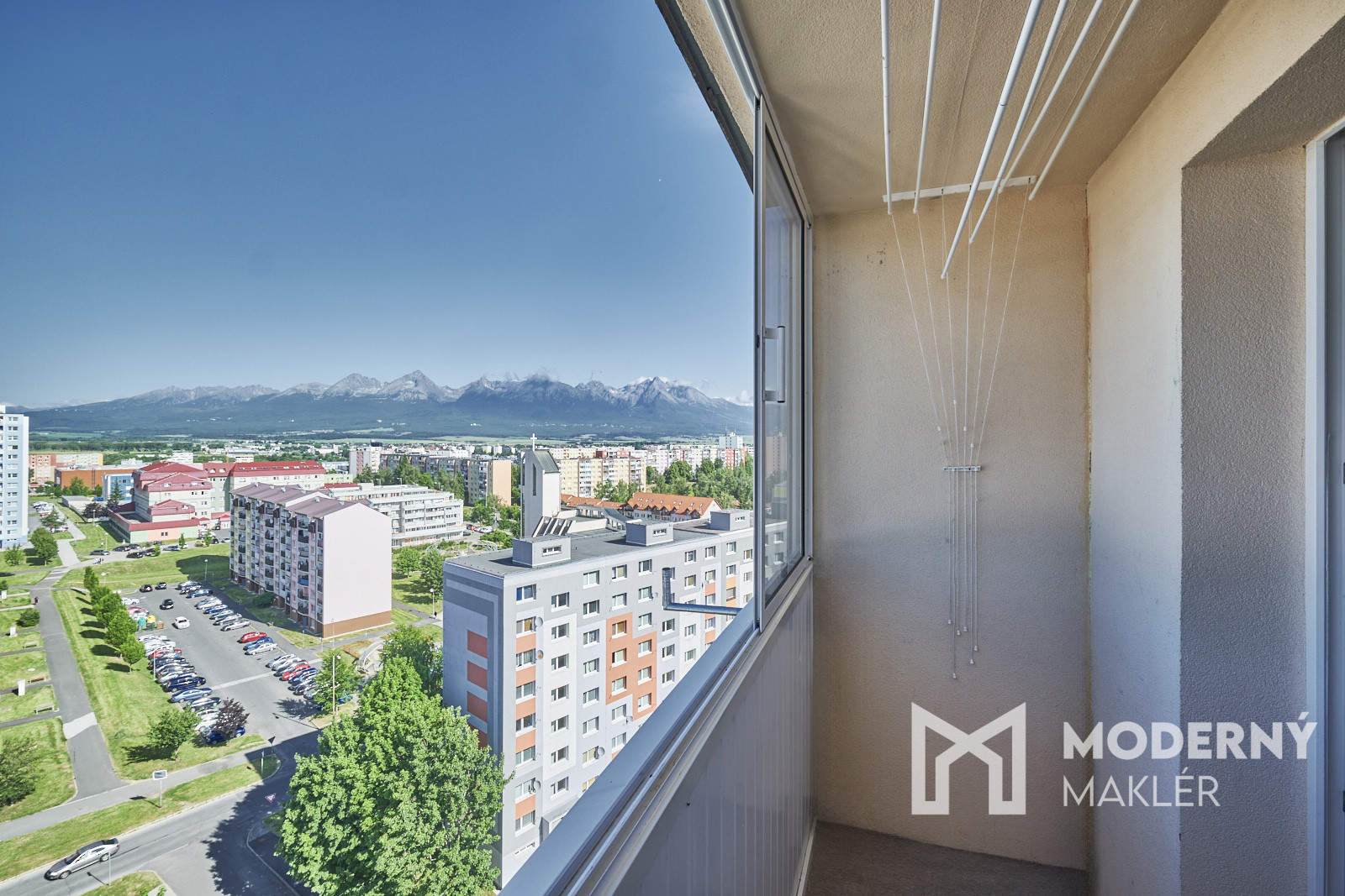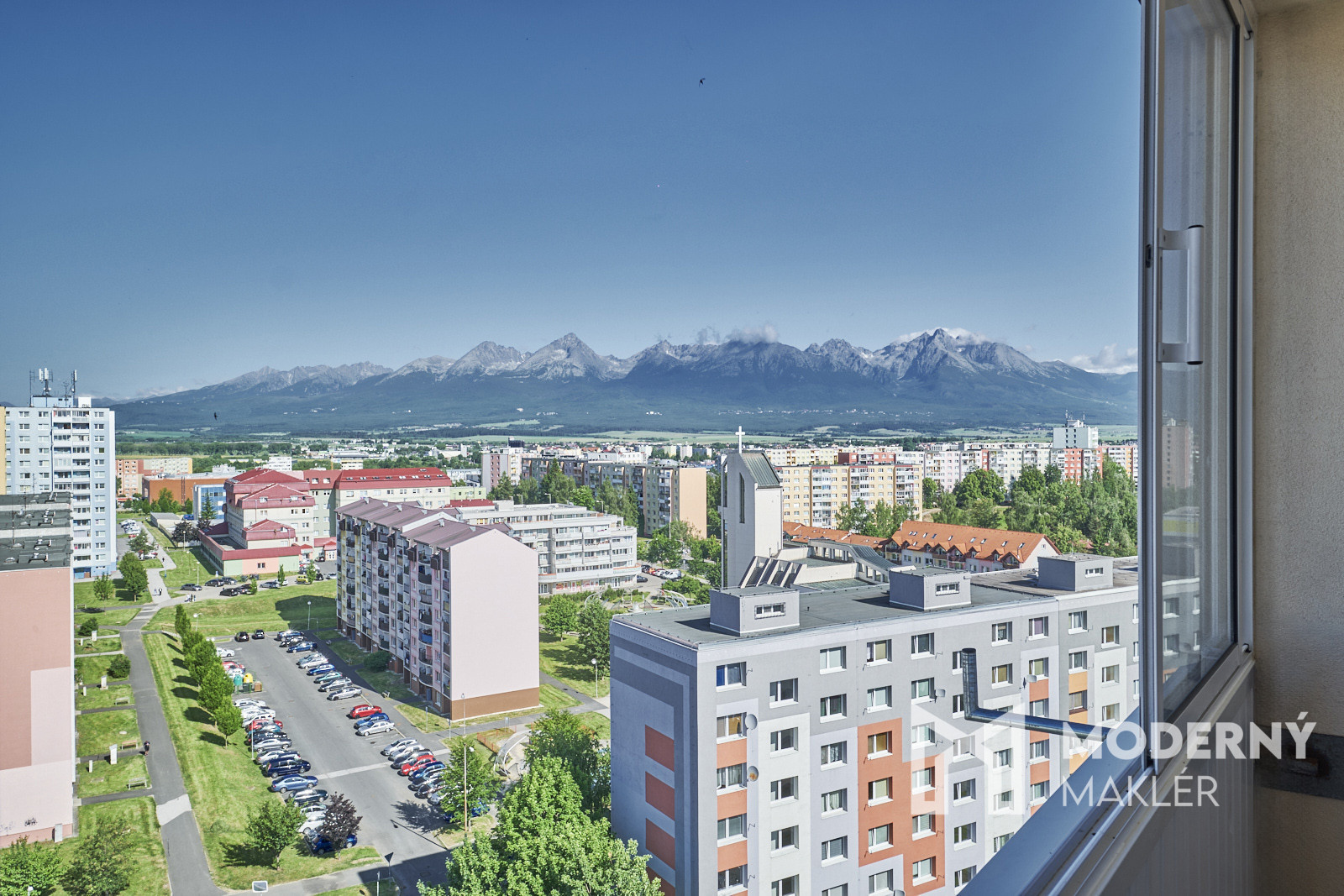 Moderný maklér ponúka na predaj kompletne zariadený 3-izbový byt s nádherným výhľadom na Vysoké Tatry v obľúbenej lokalite Poprad – Starý Juh. Byt sa nachádza na 13. poschodí zatepleného bytového domu s dvoma novými výťahmi. K bytu prislúcha pivnica a balkón.