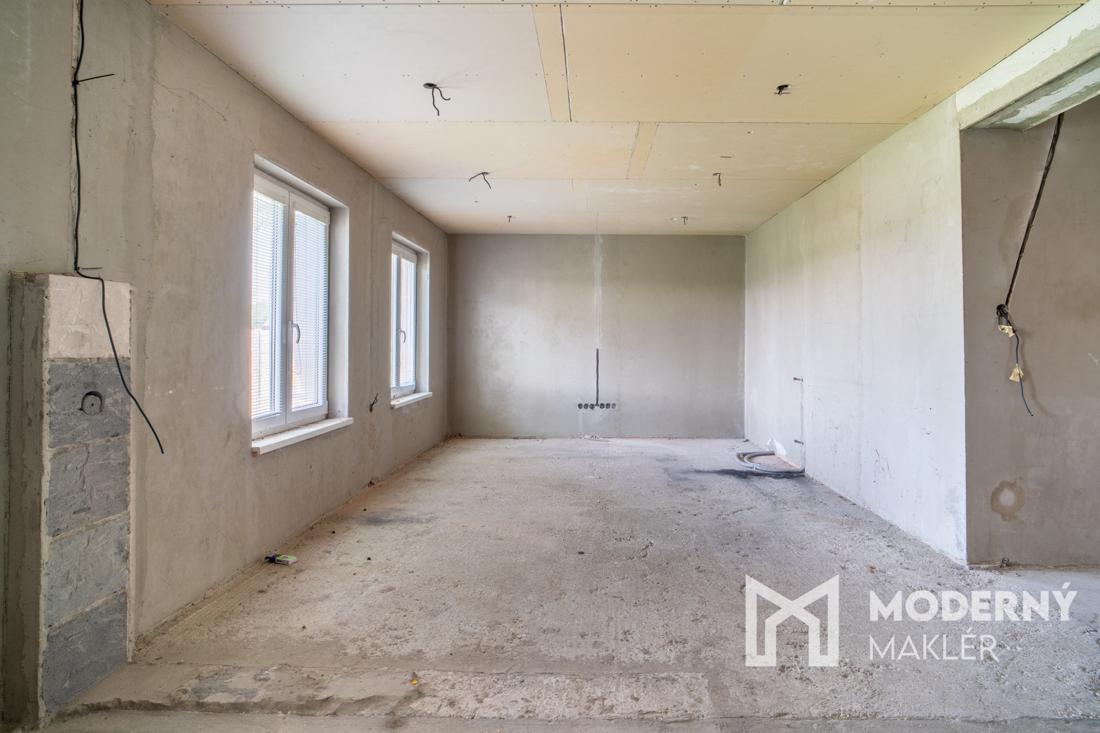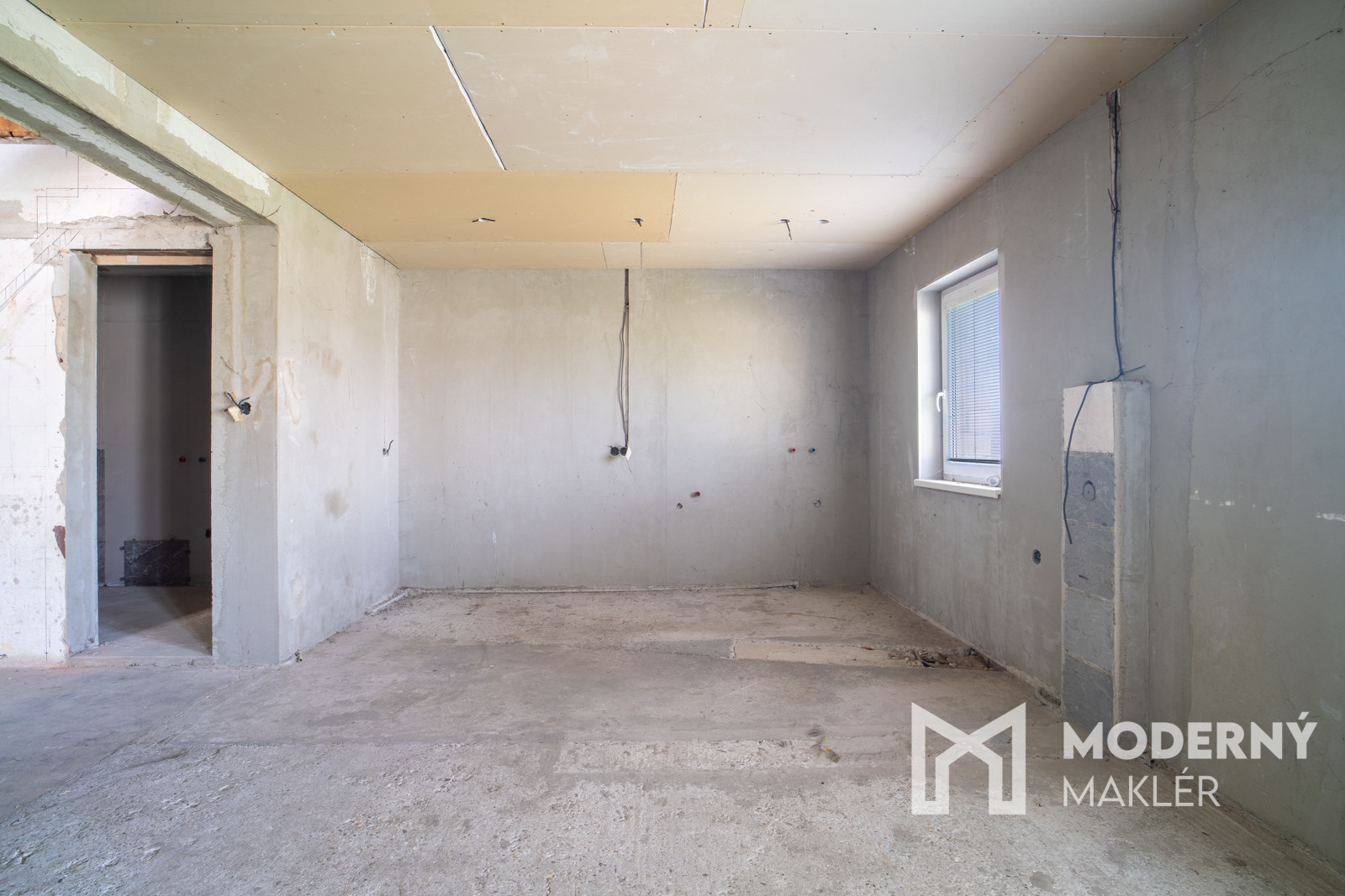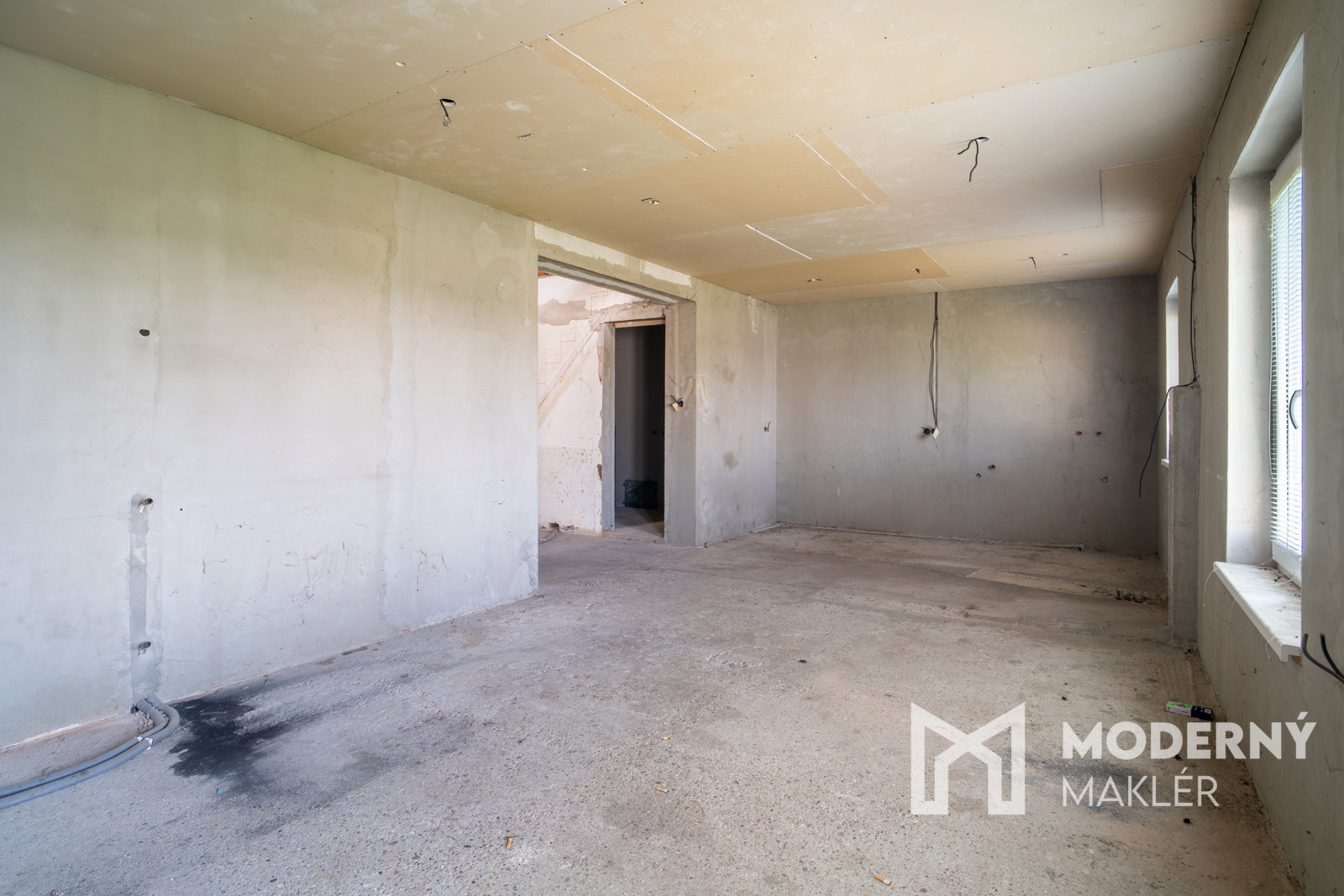 Rodinný dom má premyslenú dispozíciu, ktorá ponúka viacero možností využitia. Zo vstupnej haly vedie prístup do kúpeľne a samostatného WC na jednej strane, na opačnej strane sa nachádza nepriechodná izba vhodná ako spálňa, pracovňa či hosťovská izba. Zvyšok prízemia tvorí veľkorysý otvorený priestor, ktorý je pripravený na zariadenie kuchyne s jedálňou a obývacou časťou – ideálne miesto pre spoločné chvíle celej rodiny. Súčasťou domu je aj podkrovie, ktoré síce momentálne nemá zhotovené schodisko, no ponúka potenciál na vytvorenie ďalších obytných miestností podľa vlastných predstáv. K nehnuteľnosti navyše prislúchajú dve samostatné miestnosti, ktoré je možné funkčne prepojiť s hlavnou obytnou časťou a rozšíriť tak obytný priestor domu.
