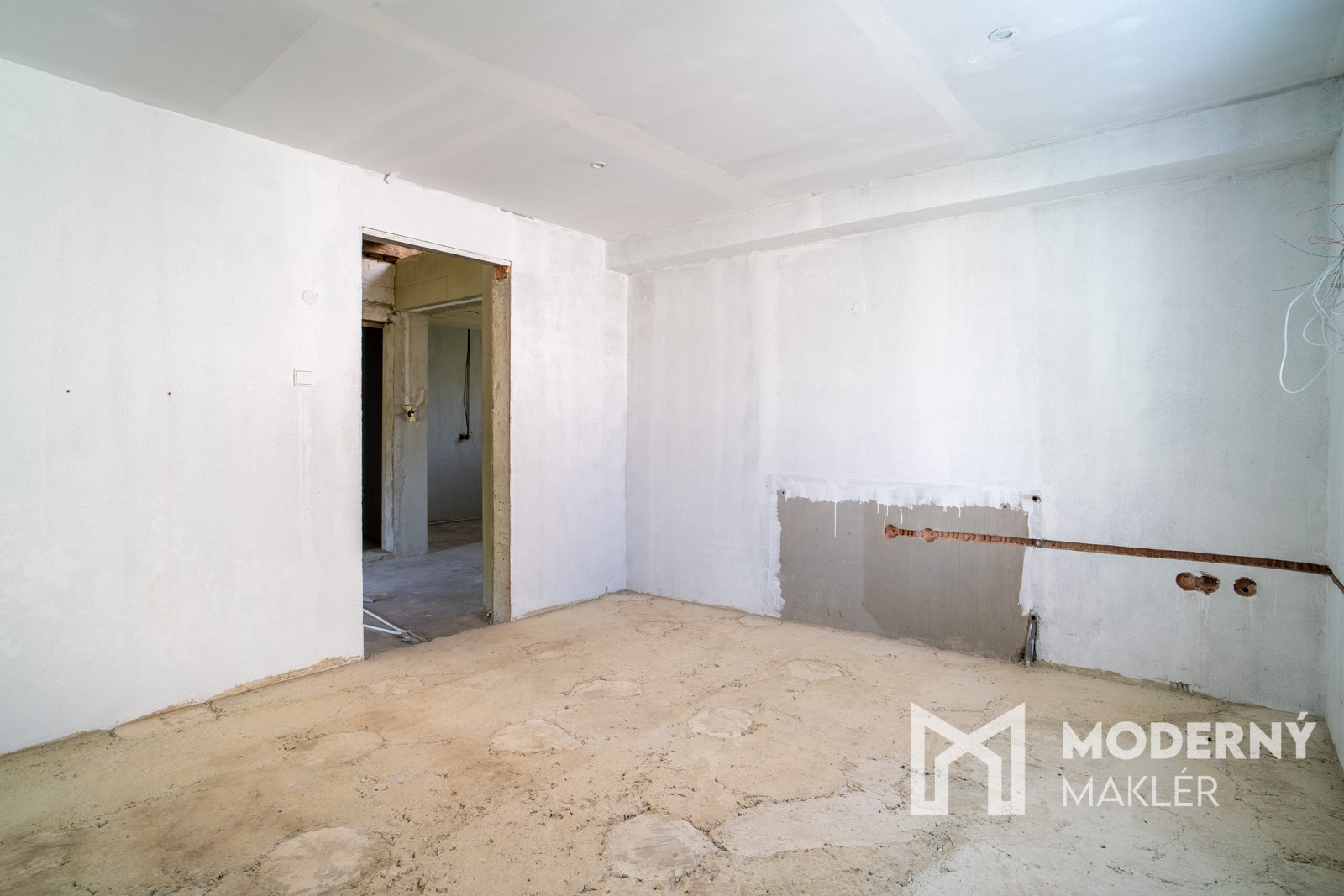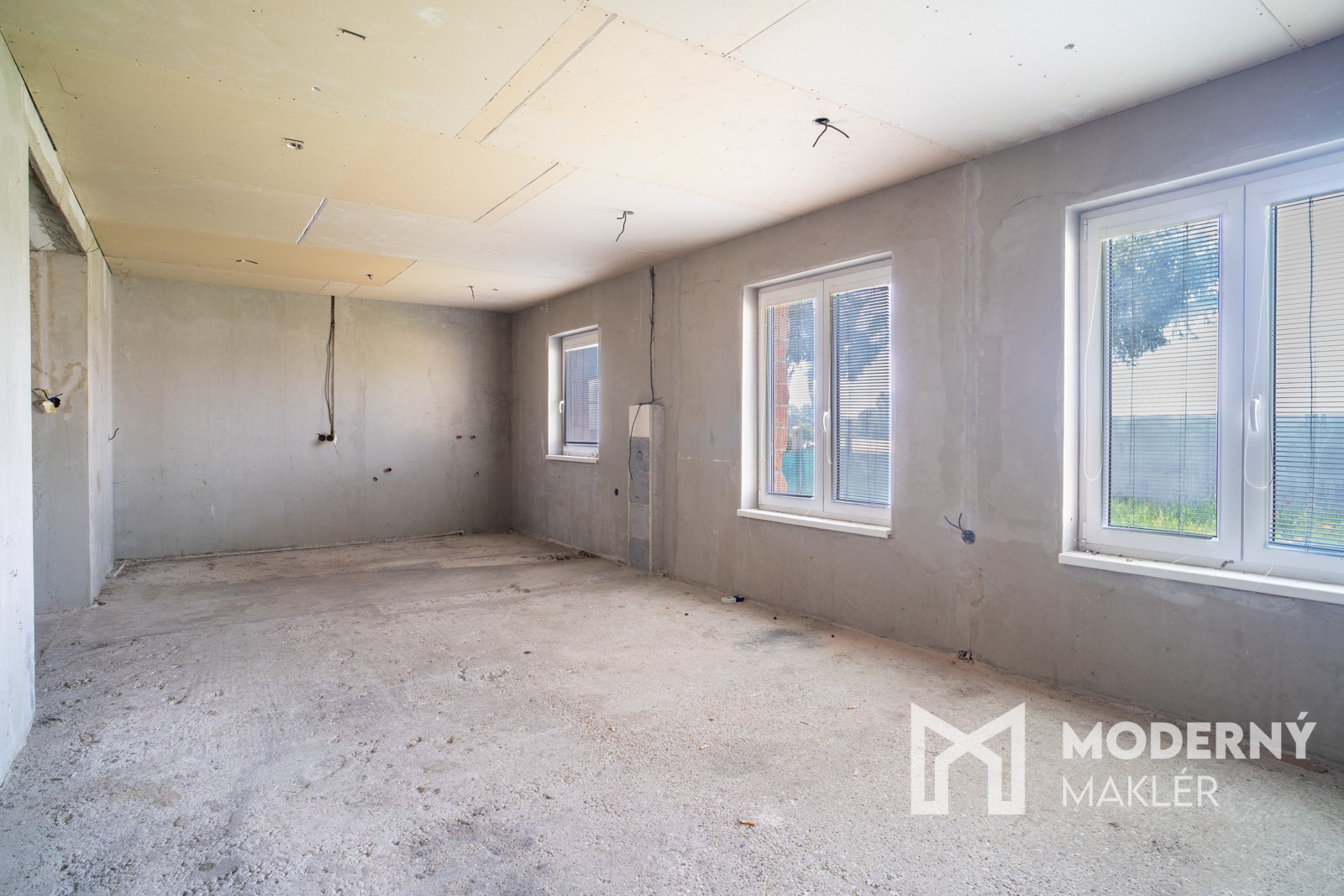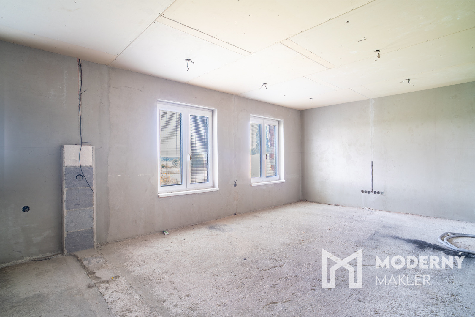 Rodinný dom má premyslenú dispozíciu, ktorá ponúka viacero možností využitia. Zo vstupnej haly vedie prístup do kúpeľne a samostatného WC na jednej strane, na opačnej strane sa nachádza nepriechodná izba vhodná ako spálňa, pracovňa či hosťovská izba. Zvyšok prízemia tvorí veľkorysý otvorený priestor, ktorý je pripravený na zariadenie kuchyne s jedálňou a obývacou časťou – ideálne miesto pre spoločné chvíle celej rodiny. Súčasťou domu je aj podkrovie, ktoré síce momentálne nemá zhotovené schodisko, no ponúka potenciál na vytvorenie ďalších obytných miestností podľa vlastných predstáv. K nehnuteľnosti navyše prislúchajú dve samostatné miestnosti, ktoré je možné funkčne prepojiť s hlavnou obytnou časťou a rozšíriť tak obytný priestor domu.