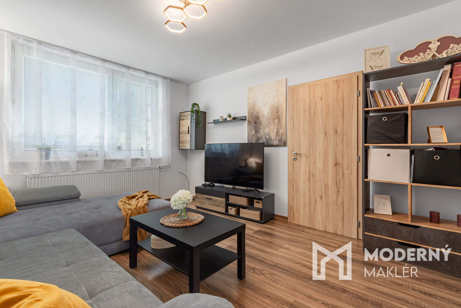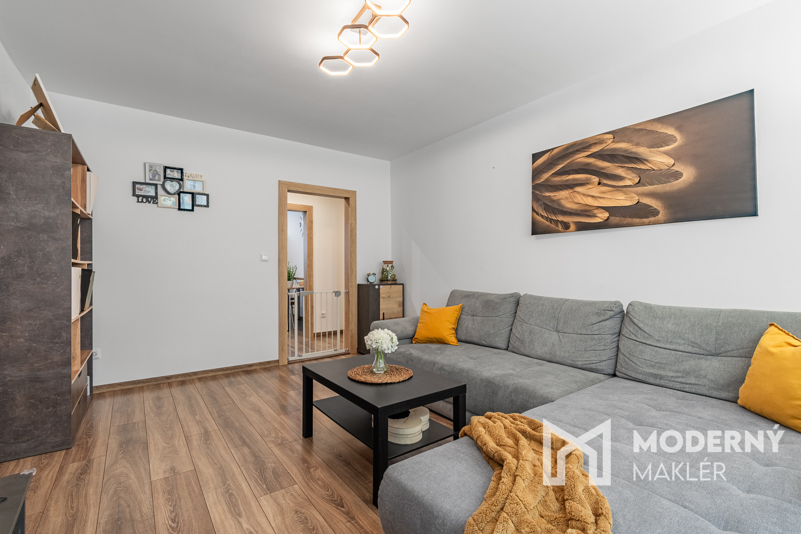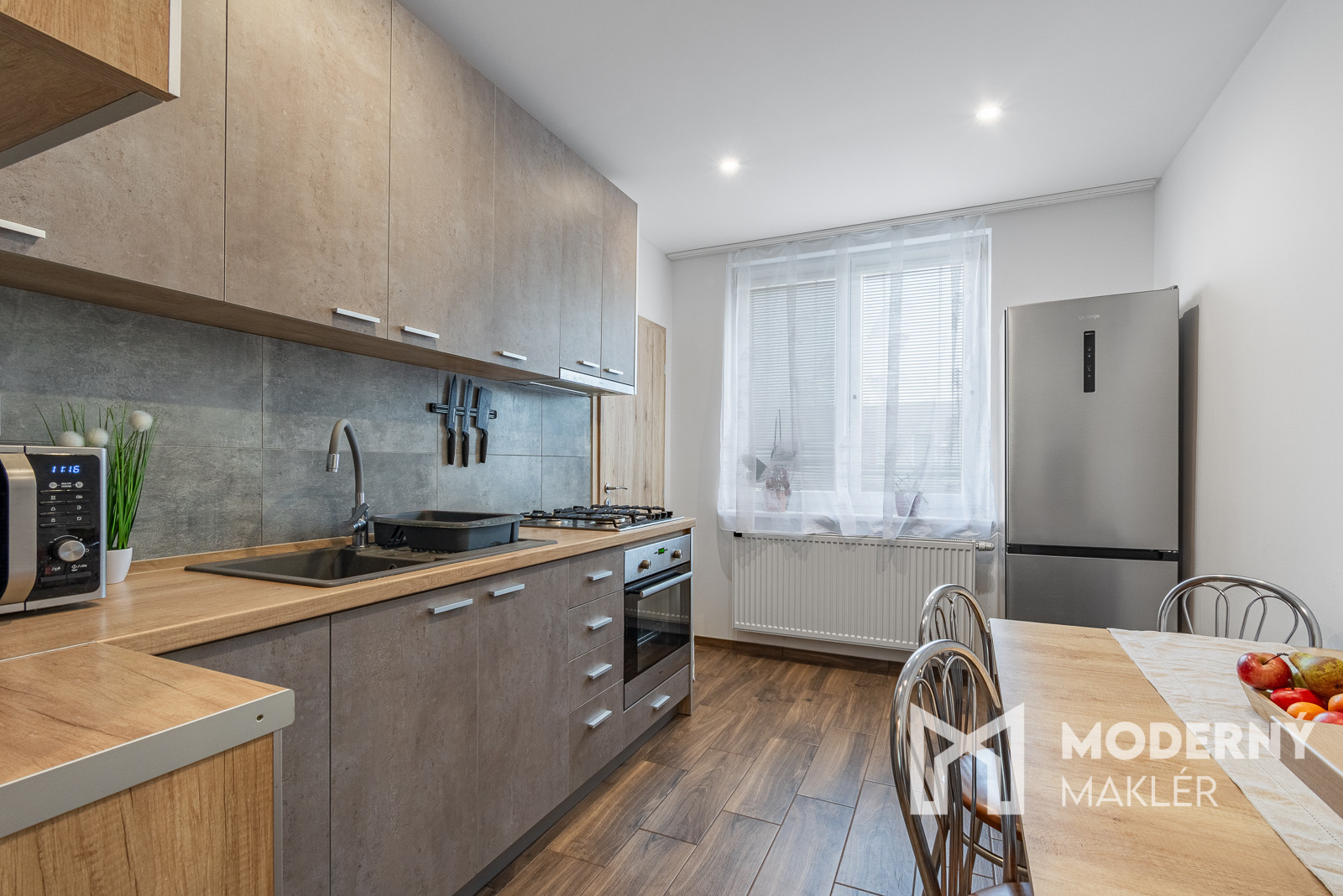 Moderný maklér ponúka na predaj kompletne zrekonštruovaný a plne zariadený 3,5-izbový byt, ktorý je pripravený na okamžité nasťahovanie bez akýchkoľvek ďalších investícií. K bytu patrí aj vlastná garáž, čo predstavuje veľký benefit a komfort v každodennom živote. Byt sa nachádza na treťom poschodí. K dispozícii je priestranná pivnica a spoločenská miestnosť na prízemí.