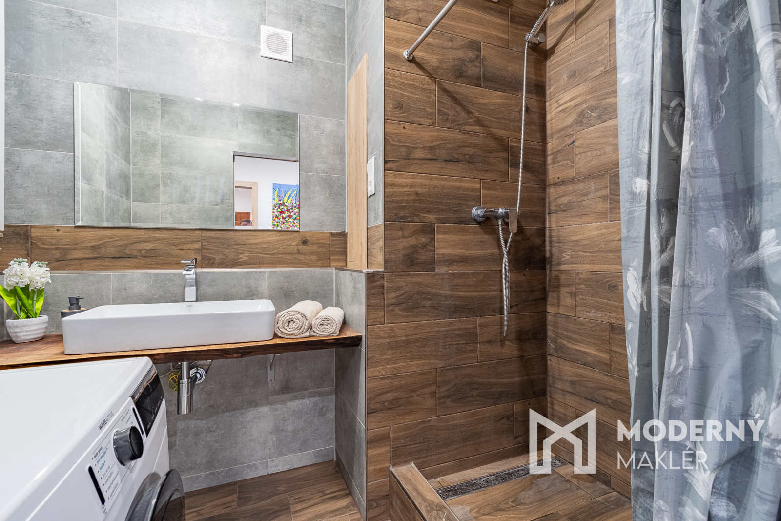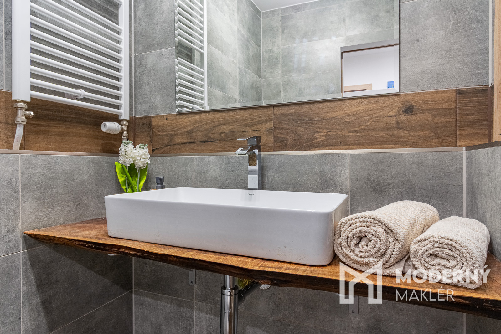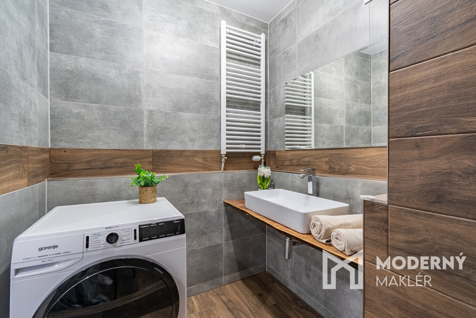 Moderný maklér ponúka na predaj kompletne zrekonštruovaný a plne zariadený 3,5-izbový byt, ktorý je pripravený na okamžité nasťahovanie bez akýchkoľvek ďalších investícií. K bytu patrí aj vlastná garáž, čo predstavuje veľký benefit a komfort v každodennom živote. Byt sa nachádza na treťom poschodí. K dispozícii je priestranná pivnica a spoločenská miestnosť na prízemí.