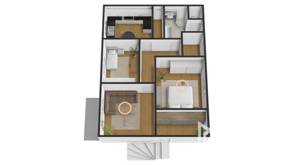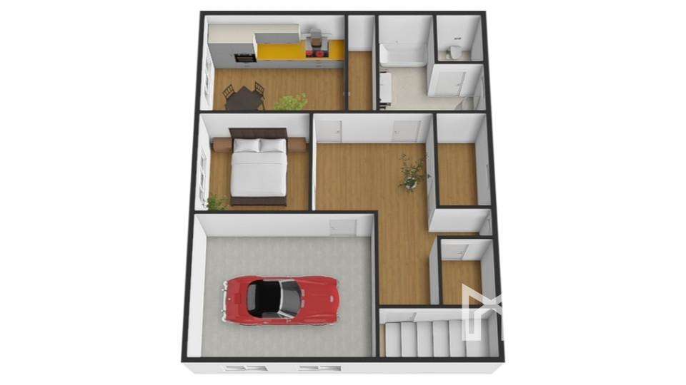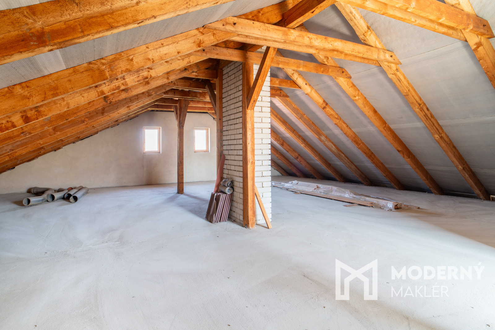 Prízemie tvorí vstupná chodba, dve menšie a dve väčšie miestnosti, pričom v jednej z nich sú privedené všetky prípojky pre vytvorenie plnohodnotnej kuchyne. Nachádza sa tu aj kúpeľňa a priamy vstup do garáže. Plynový kotol, umiestnený na prízemí, zabezpečuje vykurovanie celého domu a ohrev vody. Na prvom poschodí sa nachádza priestranná chodba, spálňa, obývačka s balkónom orientovaným na juh, kuchyňa so špajzou, kúpeľňa, samostatné WC, detská alebo hosťovská izba a praktický šatník. Druhé poschodie predstavuje plnohodnotnú pochôdznu povalu s oknami, ktorú je možné jednoducho premeniť na obytný priestor podľa potrieb nového majiteľa.