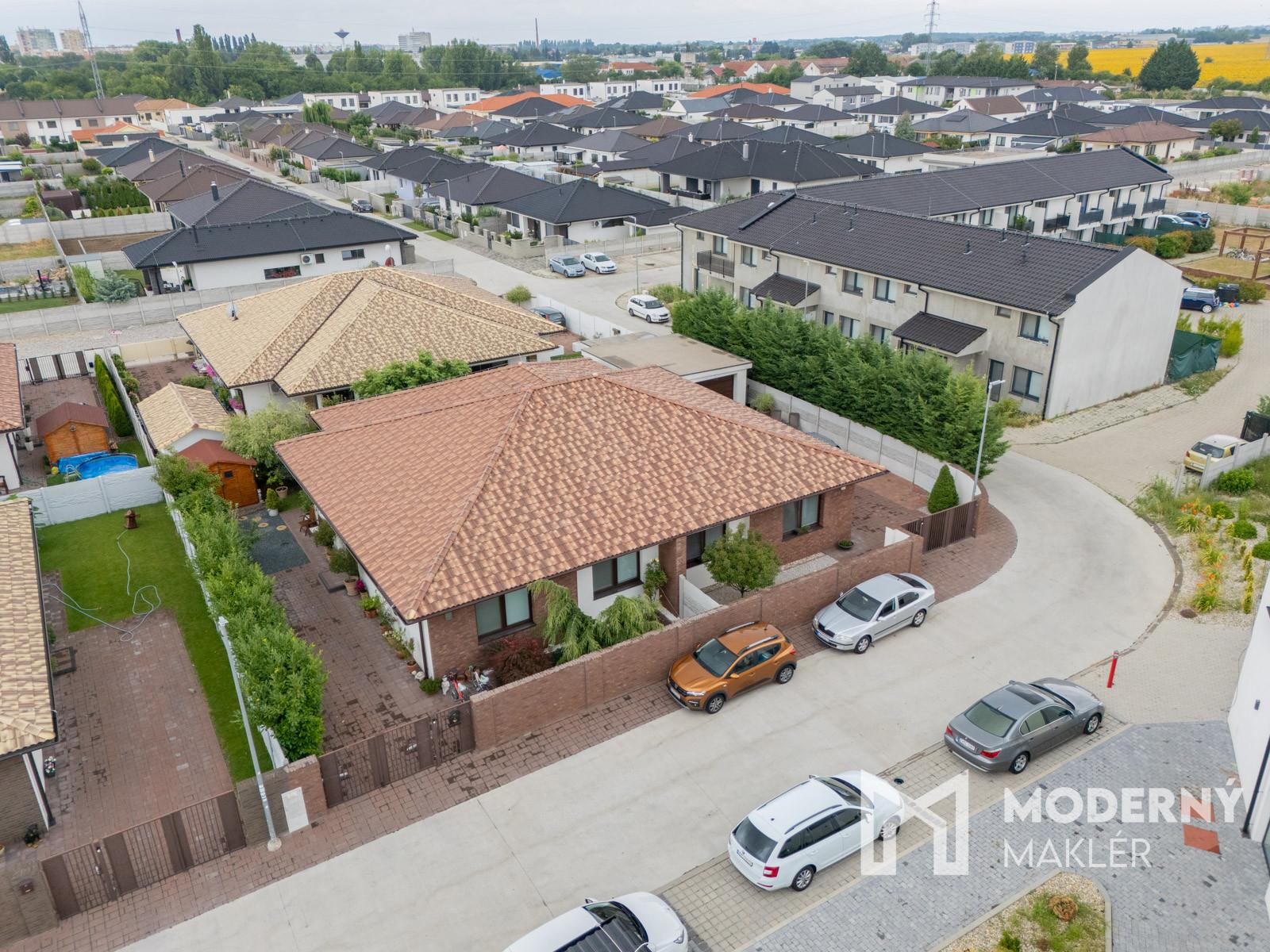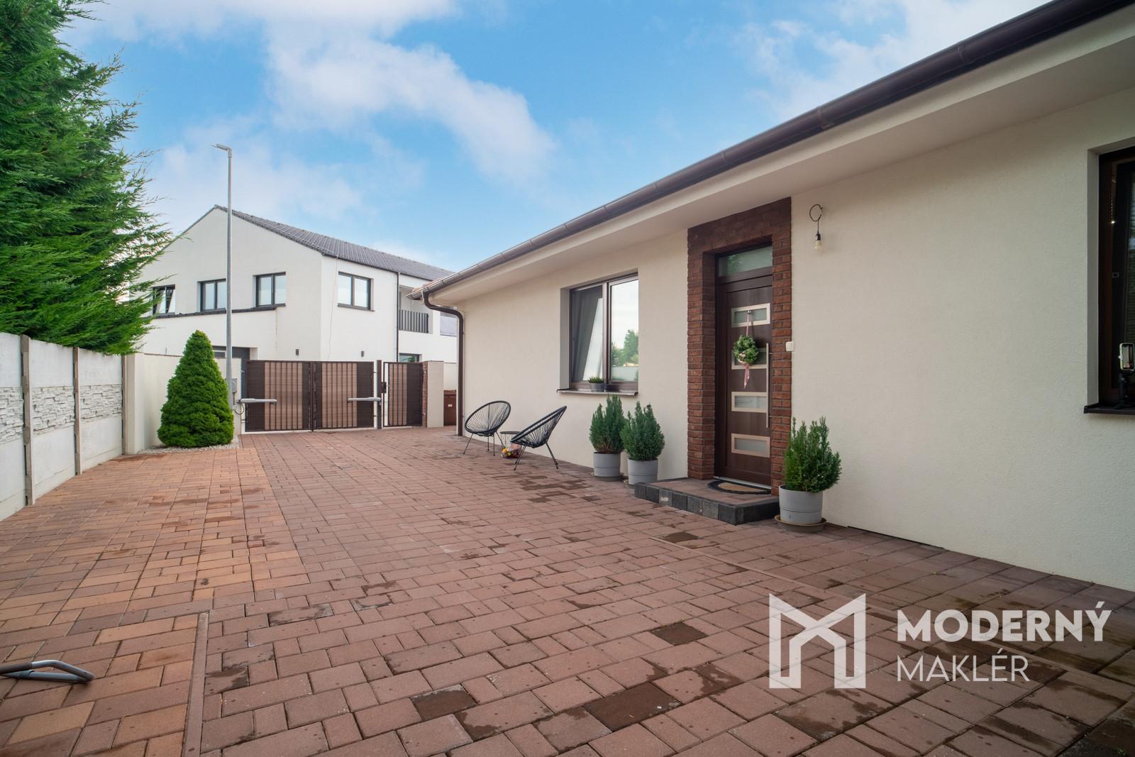 Dom je skvelou voľbou pre rodinu s deťmi, ktorá hľadá moderné a komfortné bývanie s dostatkom priestoru, súkromia a praktických riešení. Veľkorysá prístupová cesta umožňuje pohodlné parkovanie viacerých áut, rovnako ako priestranná garáž s výmerou až 35 m², ktorá je vybavená elektrinou a vodou napojenou zo studne – ideálne riešenie napríklad pre domácich majstrov alebo menšiu dielňu. Dom je moderne a vkusne zariadený, použité boli kvalitné materiály, čo sa prejavuje nielen na dizajne, ale aj na celkovej odolnosti a funkčnosti nehnuteľnosti. Elektrická brána zvyšuje komfort aj bezpečnosť bývania. Veľká terasa je perfektným miestom na oddych, rodinné grilovanie či posedenia s priateľmi. Celkovo ide o nadštandardné bývanie, ktoré spája praktickosť s moderným štýlom a poskytuje ideálne podmienky pre viacčlennú rodinu.