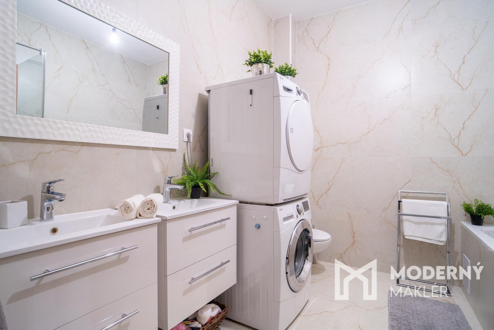 Nehnuteľnosť sa predáva kompletne zariadená. Kuchyňa je vybavená kuchynskou linkou s kompletným vybavením a chladničkou. V celom dome sa nachádzajú na mieru robené stavané skrine, ktoré poskytujú bohatý úložný priestor. Obývacia izba je zariadená pohodlnou sedačkou, obývačkovou stenou a televízorom. Spálňa je vybavená posteľou pre komfortný odpočinok. Všetok nábytok zostává novému majiteľovi, takže môžete sa nasťahovať bez nutnosti dodatočných investícií do zariadenia.