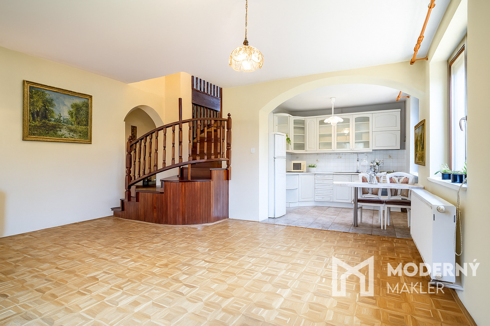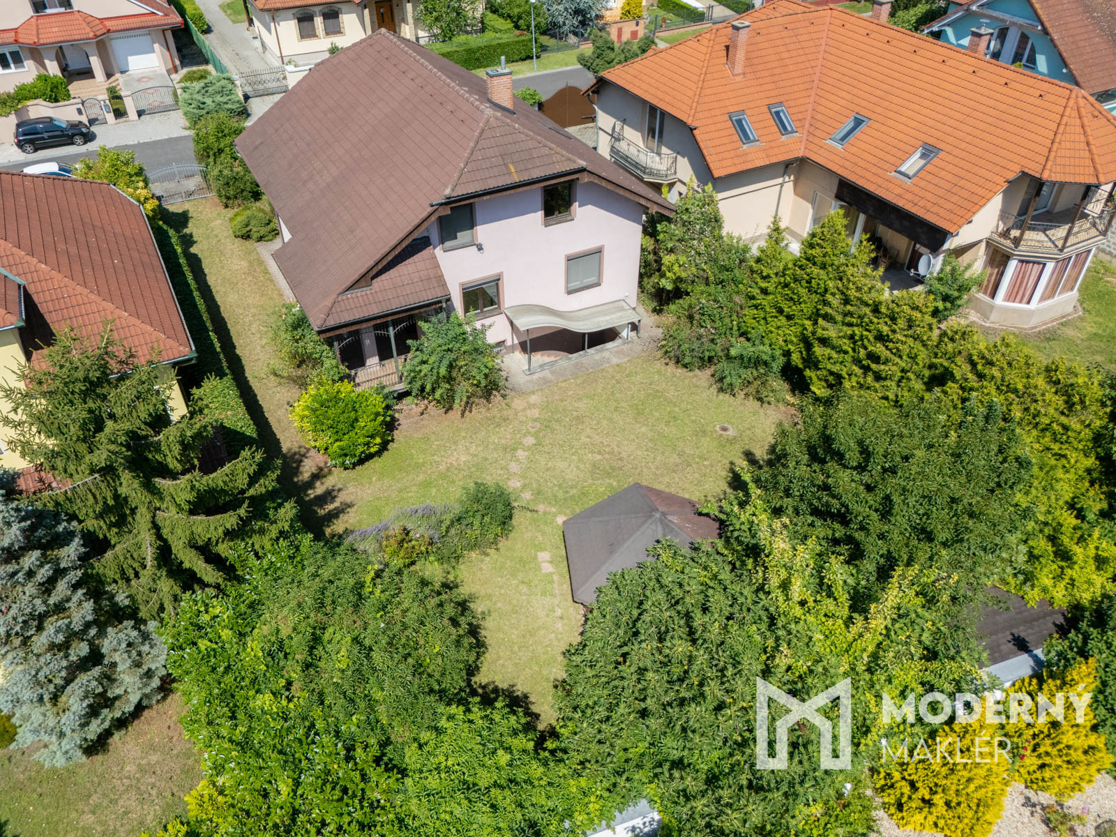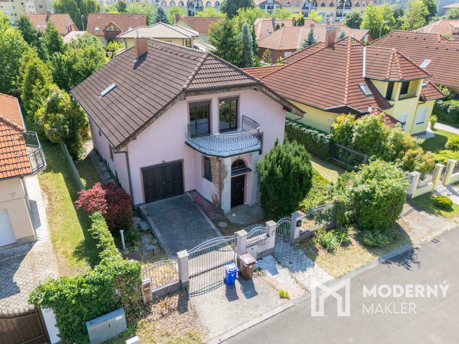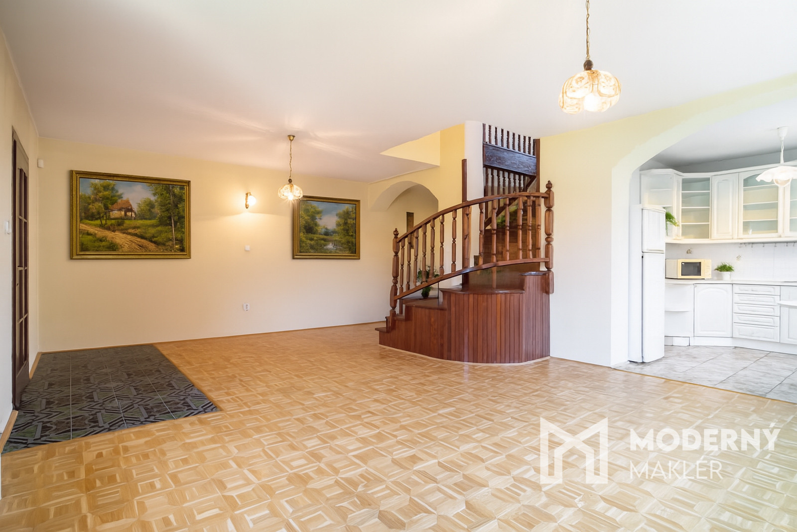 Moderný maklér exkluzívne ponúka na predaj priestrannú 6‑izbovú poschodovú vilu v srdci prestížnej a pokojnej časti Dunajskej Stredy, na ulici Pókatelek. Nehnuteľnosť je kompletne podpivničená a už na prvý pohľad zaujme veľkorysými priestormi a jedinečnou atmosférou. Rodinný dom sa nachádza v tichej slepej uličke, mimo ruchu hlavnej komunikácie, čo ešte viac podčiarkuje výnimočnosť a exkluzivitu adresy – jednej z najžiadanejších v celom meste.