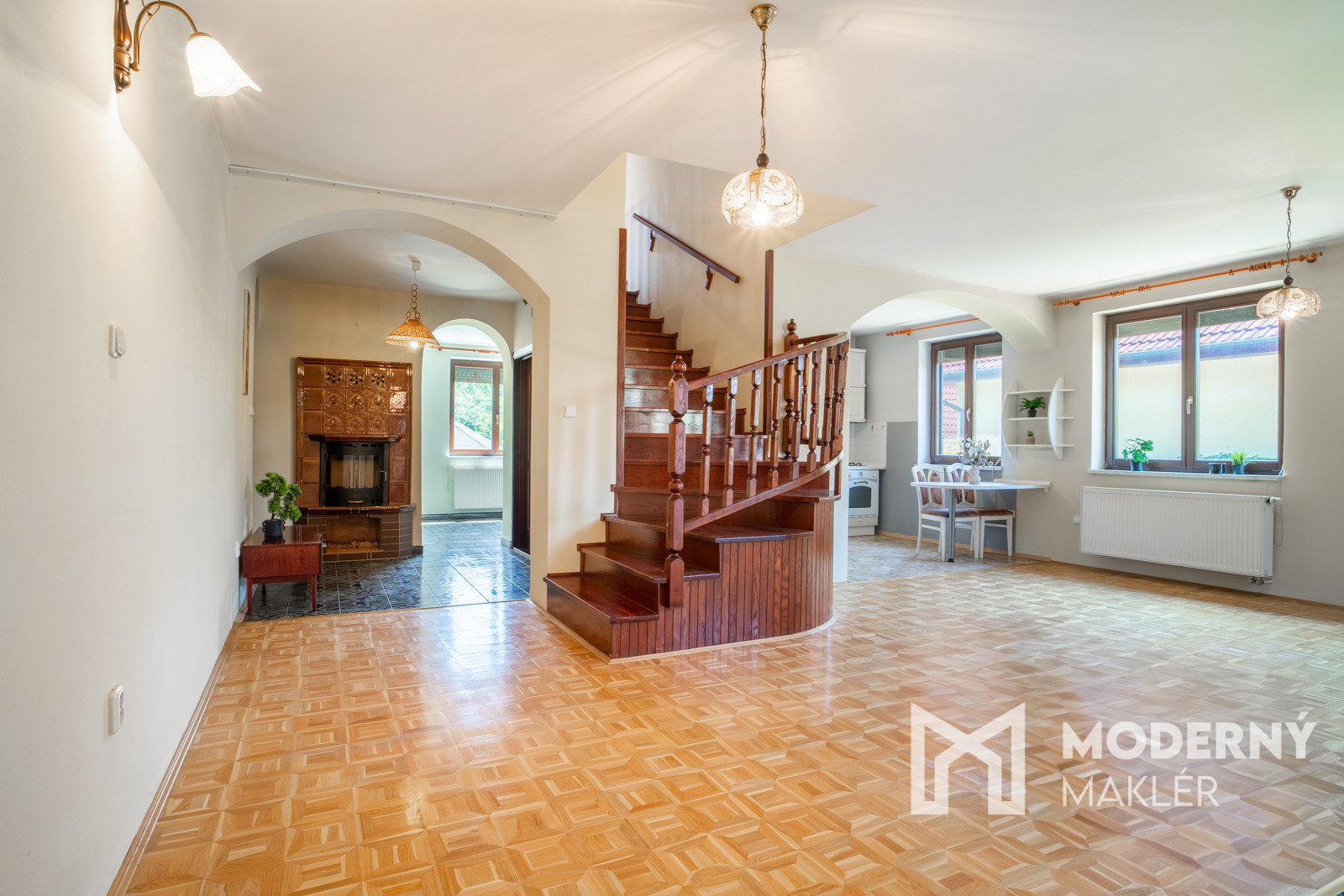 Dom bol postavený v roku 2004 a nachádza sa v pôvodnom stavebnom stave. Je dobre udržiavaný, pričom poskytuje výborný komfort z hľadiska materiálov aj príslušenstva. Pozemok je oplotený a zabezpečený elektrickou bránou s parkovacími miestami pre dva autá a samostatnou garážou s elektrickou prípojkou a poistnou skriňou, ktorá má dômyselne vybudované podkrovie slúžiace ako skladový priestor. Na prízemí sa nachádza nádherný dobový krb ako alternatíva vykurovania, pričom hlavné vykurovanie je zabezpečené prietokovým plynovým kotlom s radiátormi. Interiér domu dotvárajú kvalitné materiály, ako drevené schodisko vyrobené na mieru, zachovaná drevená podlaha v obývacej izbe a drevené interiérové dvere so zárubňami v celom dome vrátane suterénu. Každá miestnosť vrátane kúpeľní a suterénnych priestorov má vetrateľné okno a ventilátory pre optimálny vzduchový komfort. Na elektrickej inštalácii si dal majiteľ, ako revízny elektrotechnik, mimoriadne záležať. Dom má samostatné rozvádzače pre bytovú časť (prízemie a podkrovie) a pre pivnicu a dvor. O bezpečnosť celého domu vrátane garáže sa stará alarmový systém a k dispozícii je aj studňa poháňaná funkčným čerpadlom.