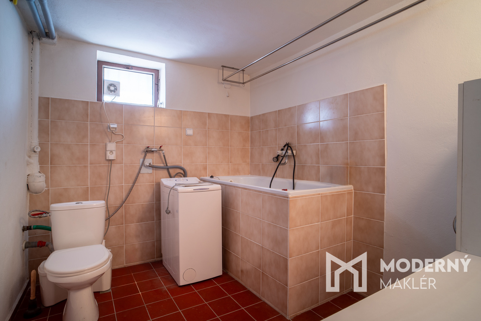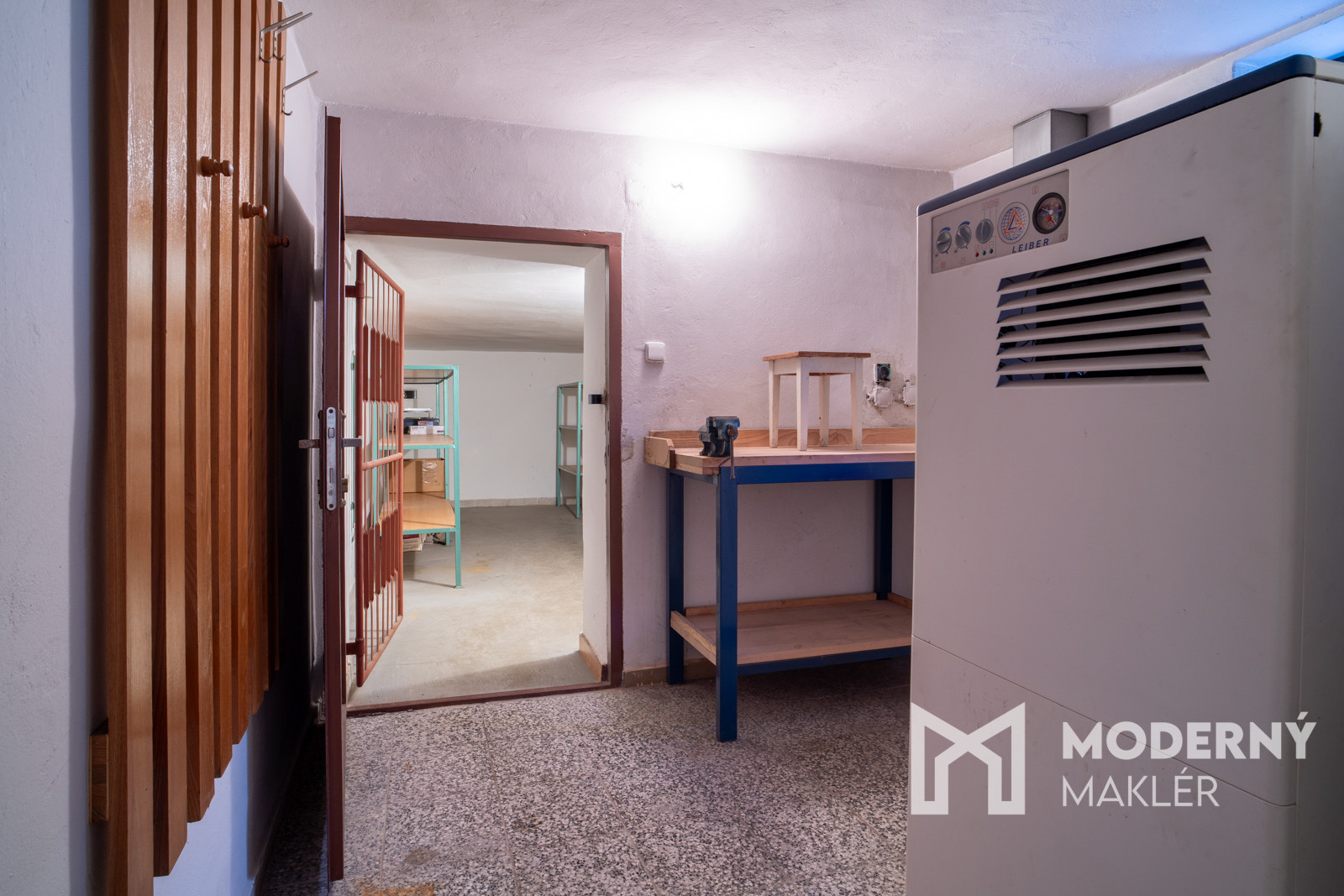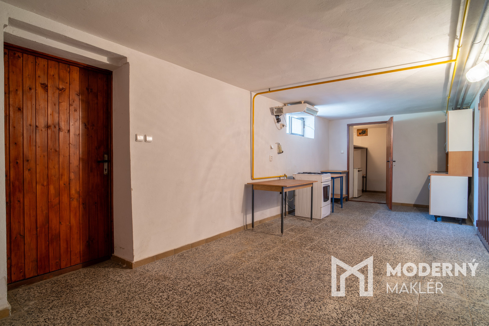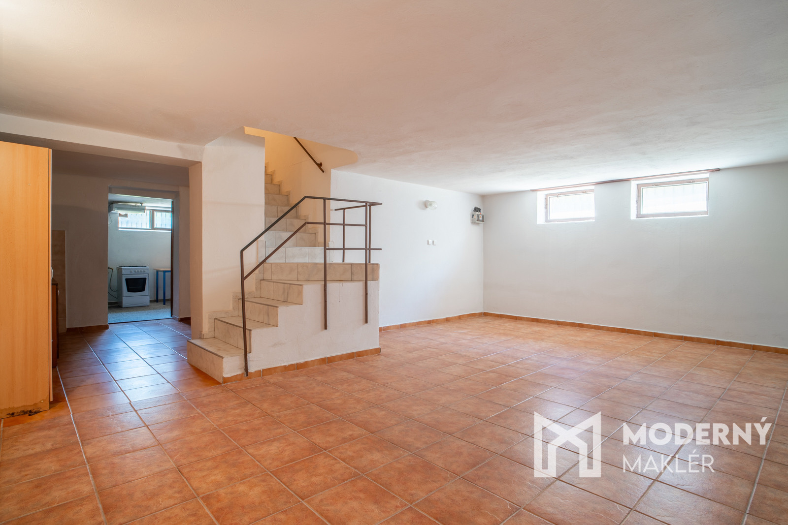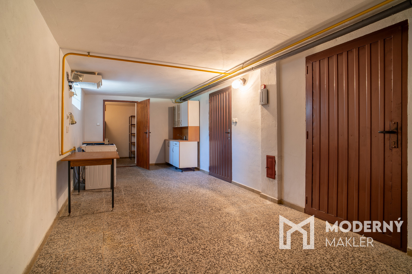 Do suterénu sa môžete dostať buď z prízemných priestorov suchou nohou alebo samostatným vchodom zo záhrady. Suterén ponúka priestrannú izbu vhodnú aj na bývanie, kúpeľňu spojenú s WC a práčovňou, úložný priestor pod schodiskom, miestnosť s letnou kuchyňou vybavenou sporákom a digestorom s výstupom do záhrady, špajzu, technickú miestnosť s plynovým kotlom, ponkom a skladovým priestorom. Dom má výhodnú orientáciu, keďže všetky hlavné izby sú orientované na východ, čo poskytuje príjemné ranné slnečné lúče bez zbytočných popoludňajších horúčav.