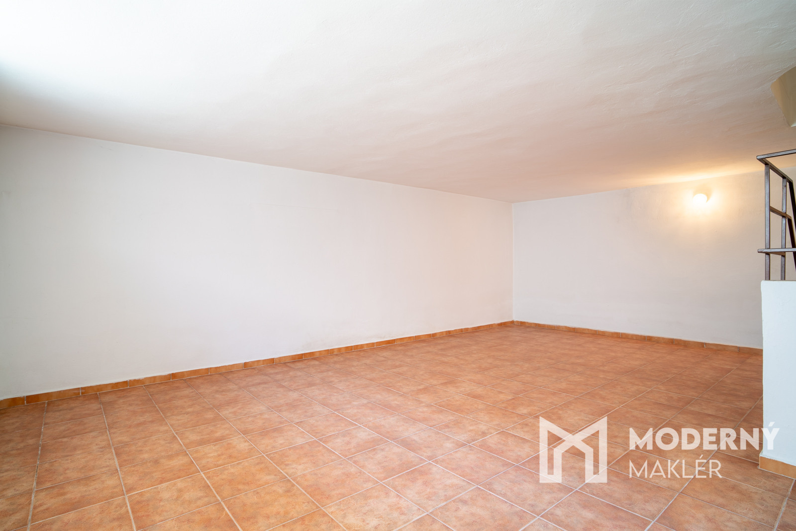 Na prízemí sa nachádza hlavný vchod, cez ktorý sa dostanete do priestrannej obývacej izby spojenej s jedálenským kútom a kuchyňou. Ďalej tu nájdete jednu samostatnú izbu, vstup do suterénu a kúpeľňu s WC vybavenú rohovou vaňou. Z prízemných priestorov máte priamy výstup na terasu a do záhrady. Súčasťou domu je garáž, ktorá tvorí samostatnú miestnosť s vlastným vchodom bez prepojenia do hlavnej časti domu.