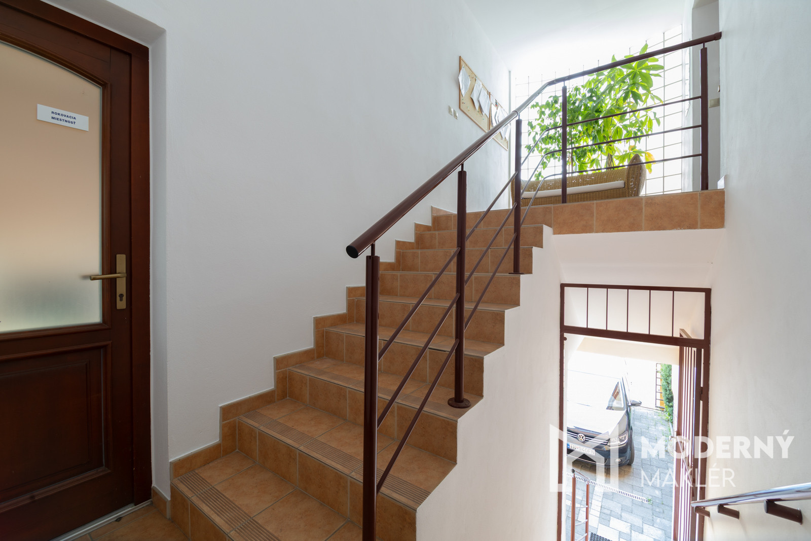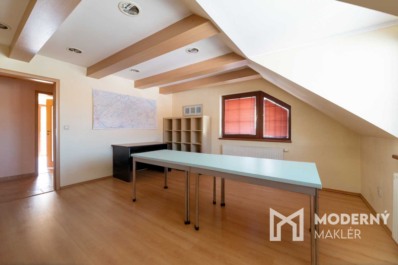 Vrchné poschodie ponúka kancelárske priestory pozostávajúce zo štyroch samostatných miestností, ktoré umožňujú flexibilné využitie pre rôzne podnikateľské aktivity. Pre potreby pracovného prostredia je poschodie vybavené praktickou kuchynkou a samostatným sociálnym zariadením.