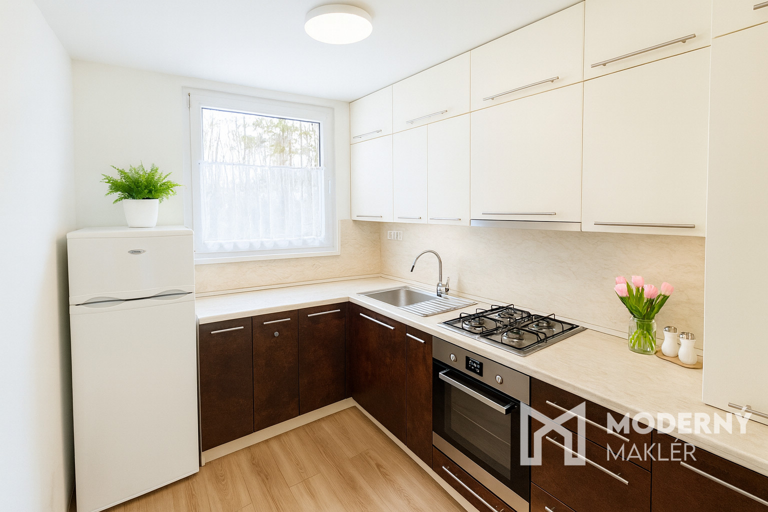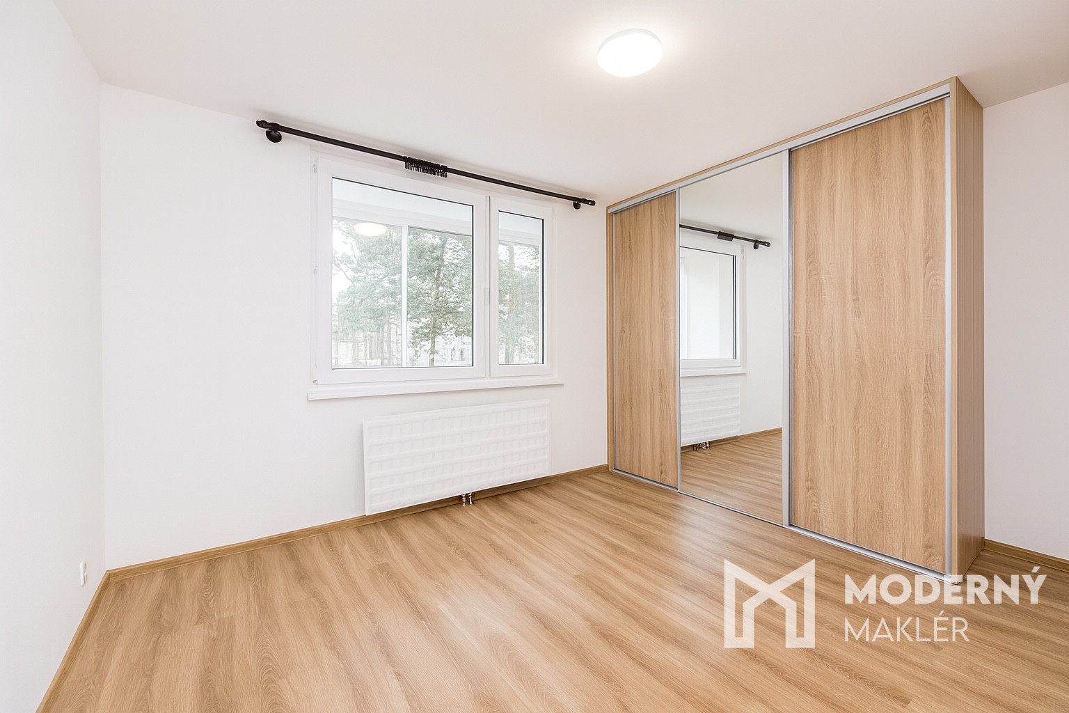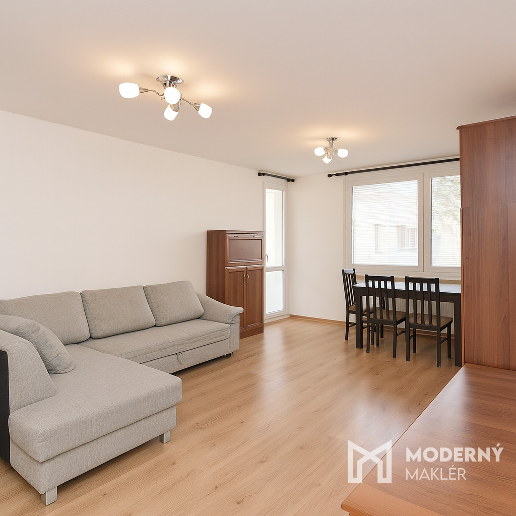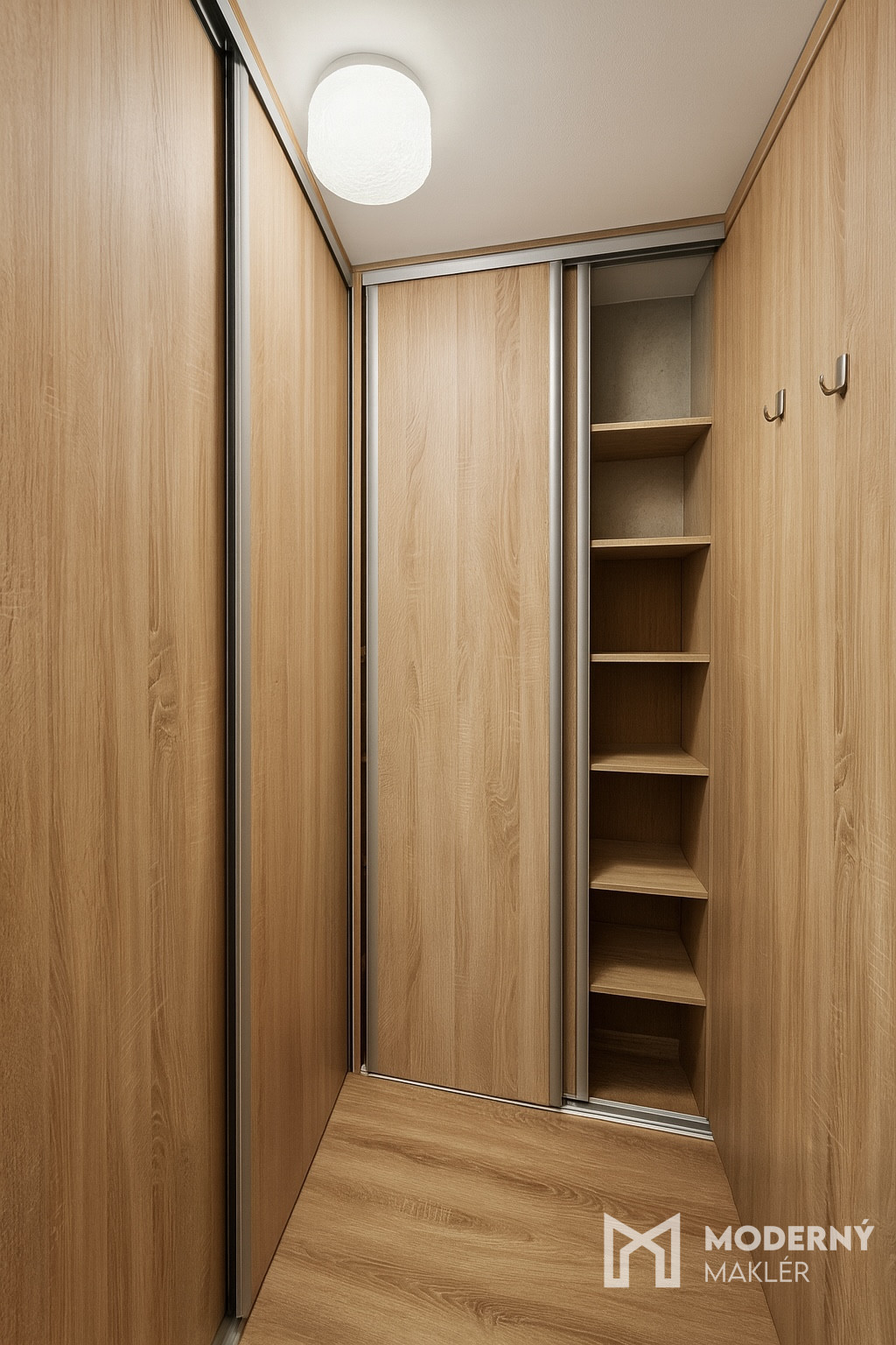 Nehnuteľnosť pozostáva zo vstupnej chodby, priestranného šatníka, kuchyne prepojenej s obývacou izbou, z ktorej je priamy vstup na balkón. Byt ďalej obsahuje samostatné WC a kúpeľňu s moderným sprchovacím kútom. Dve nepriechodné izby ponúkajú príjemný priestor na odpočinok. Orientácia bytu na tri svetové strany (sever, juh, východ) zabezpečuje dostatok prirodzeného svetla počas celého dňa.