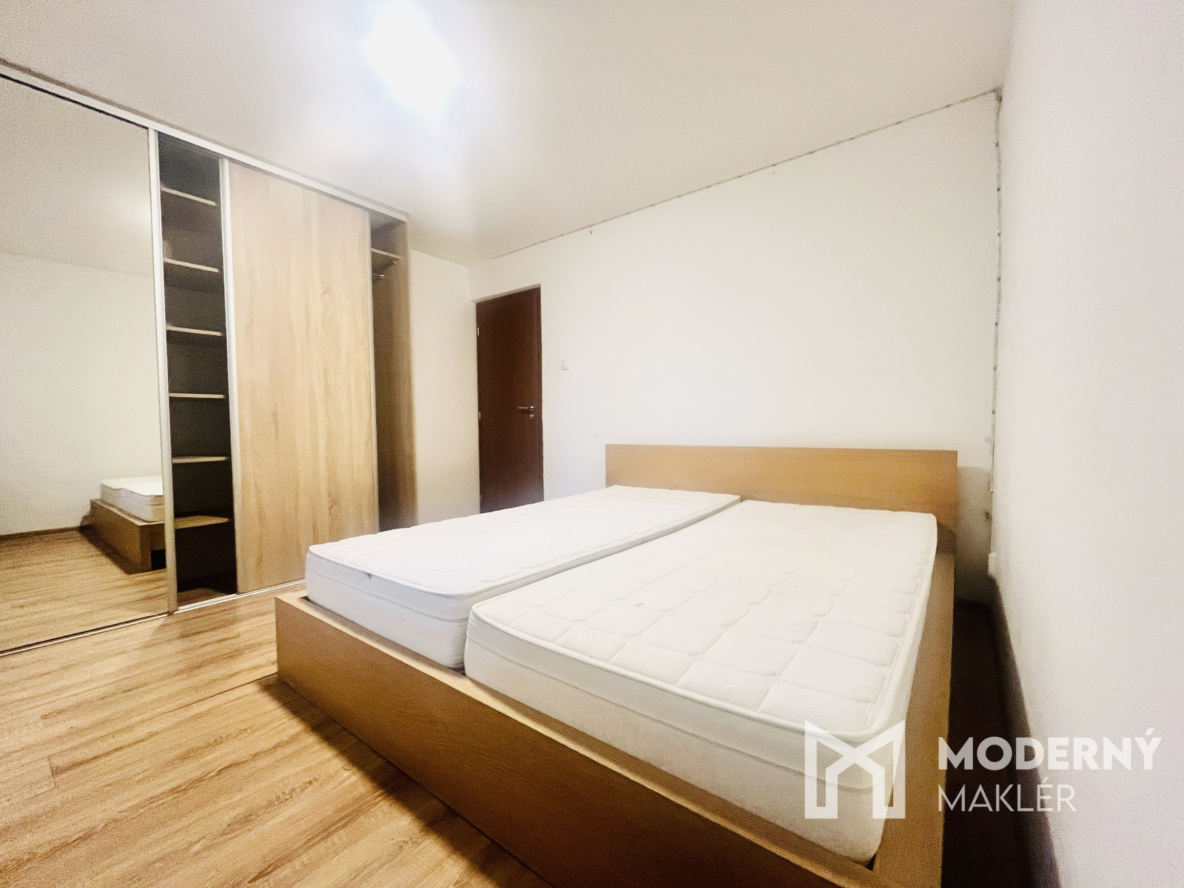 Byt sa prenajíma zariadený. Vo vstupnej chodbe sa nachádza praktický šatník. Kuchyňa je vybavená kompletnou kuchynskou linkou a chladničkou, v obývacej izbe sa nachádza pohodlný gauč, jedálenský stôl so stoličkami a obývacia stena. Kúpeľňa je vybavená sprchovacím kútom, umývadlom so skrinkou a práčkou. V spálni je manželská posteľ a priestranná vstavaná skriňa poskytujúca dostatok úložného priestoru. Veľkou výhodou je priestranná pivnica s rozlohou až 16 m², ktorá poskytuje dostatok úložného priestoru pre bicykle, športové vybavenie či sezónne veci.