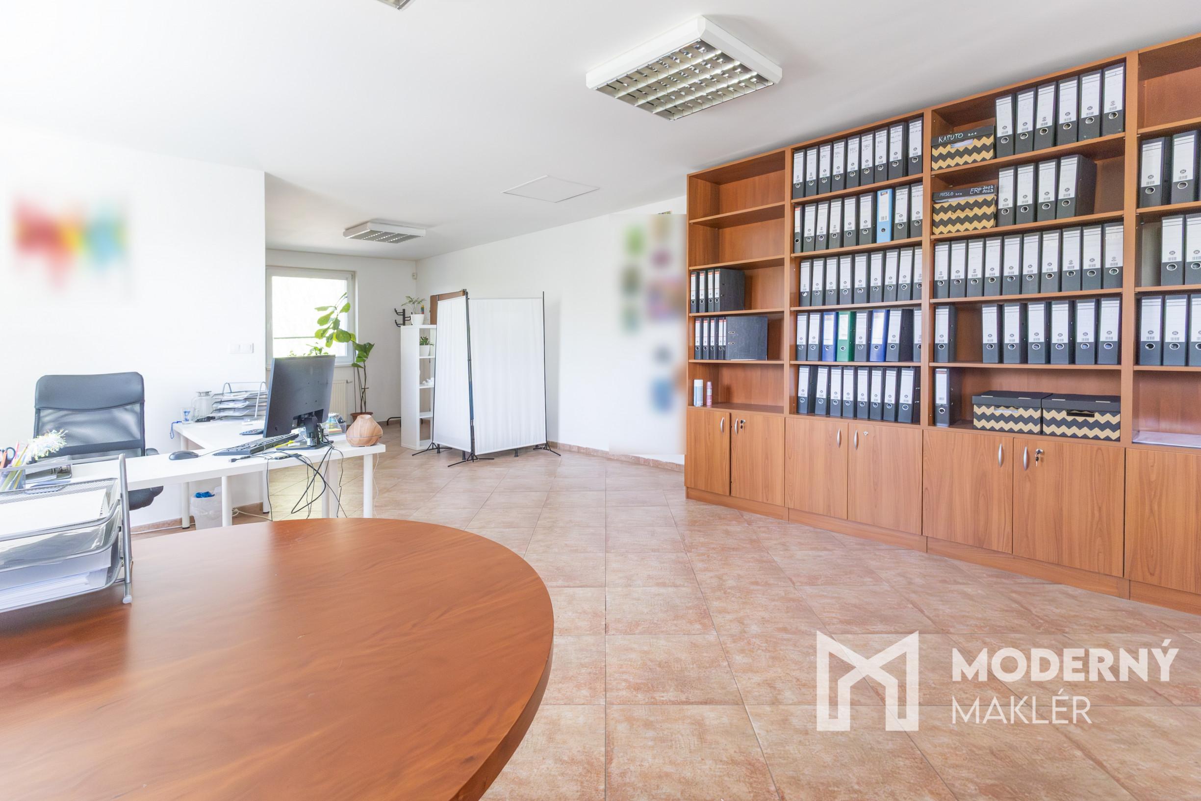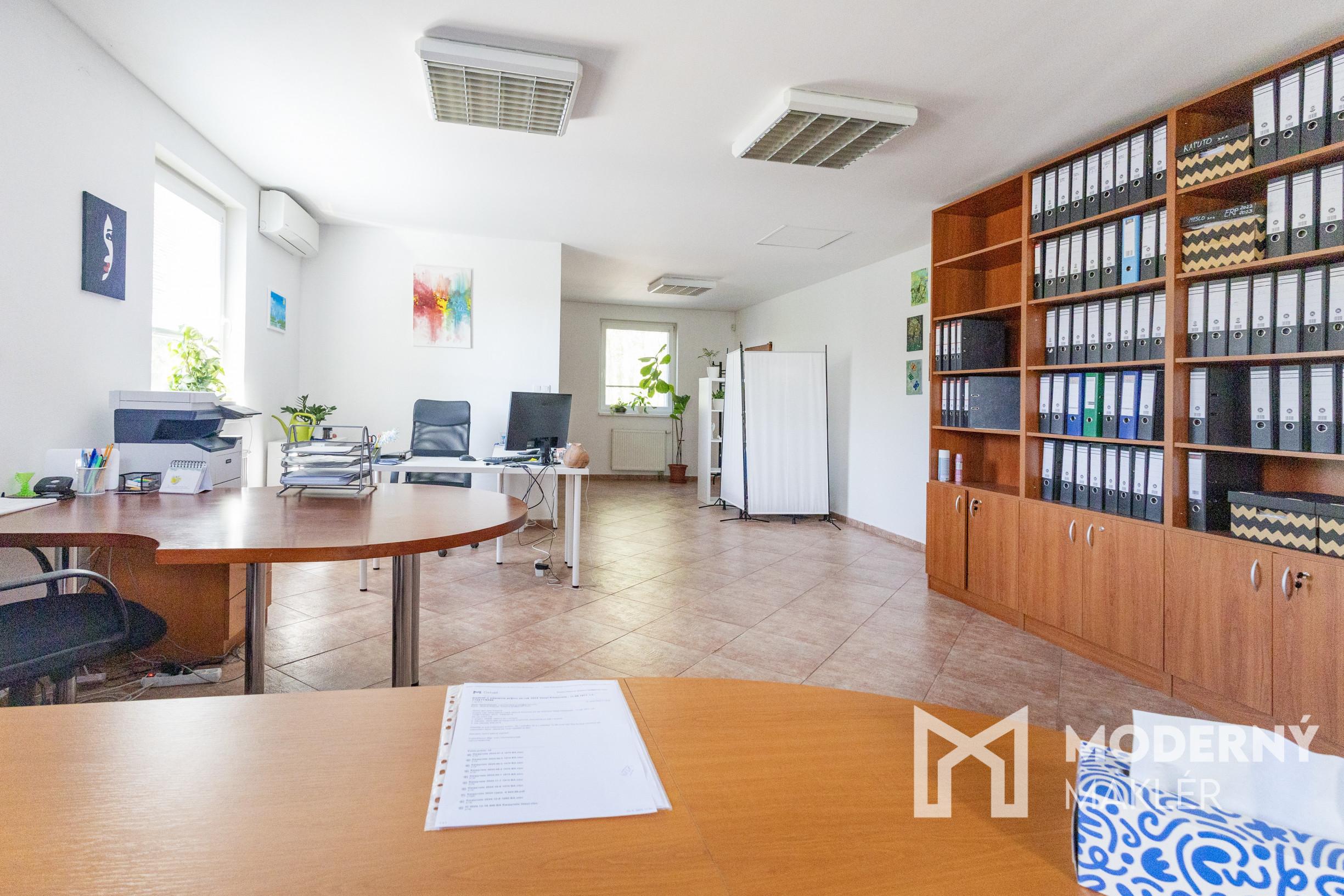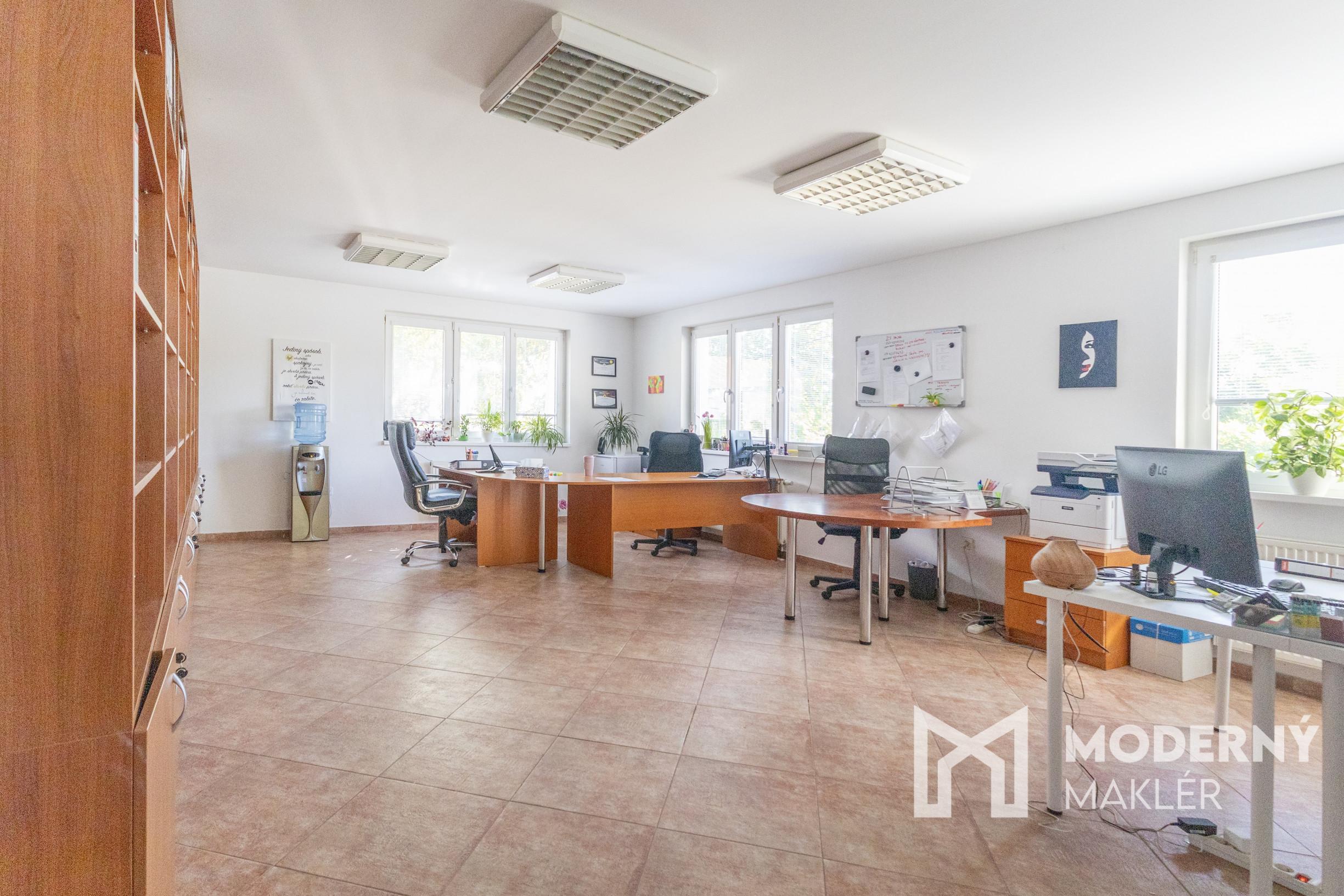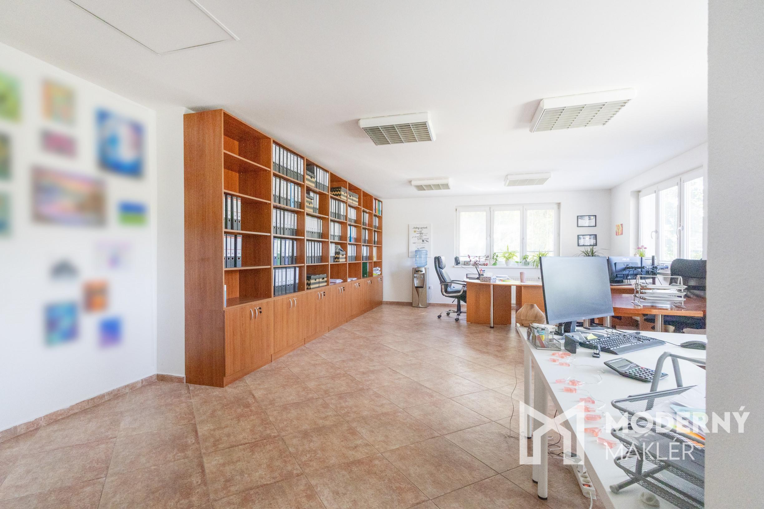 V priestoroch sa nachádza kvalitný kancelársky nábytok a praktické úložné priestory na dokumenty a kancelárske potreby, ktoré vytvárajú ideálne prostredie pre Vašu prácu. Spolu s kanceláriou je k dispozícii samostatný kuchynský priestor a toaleta.