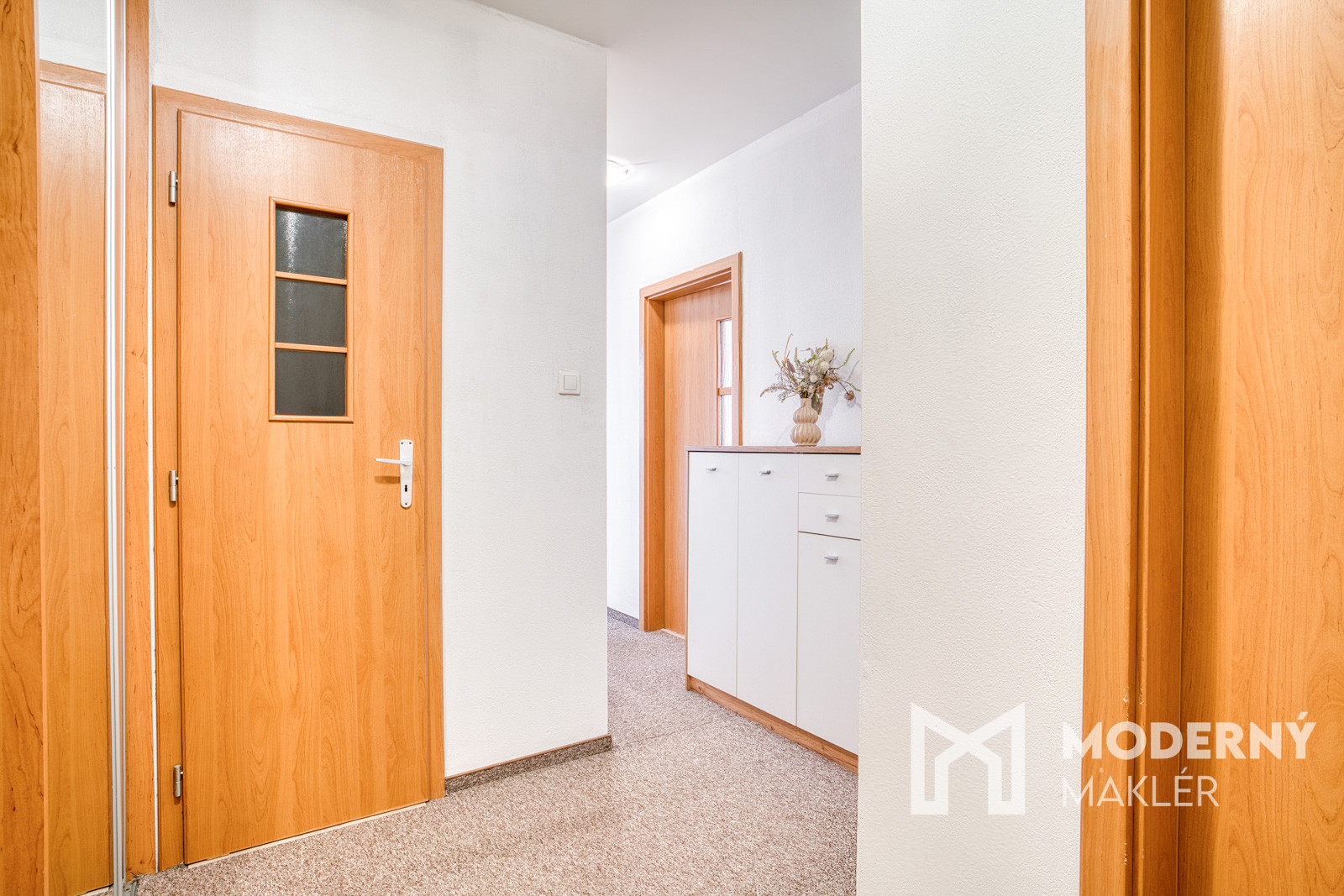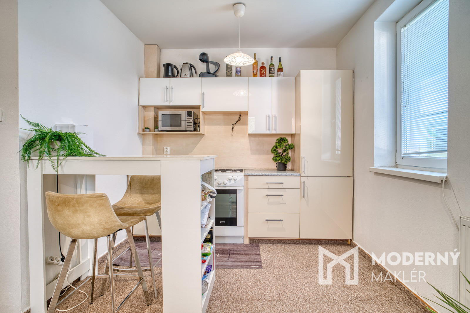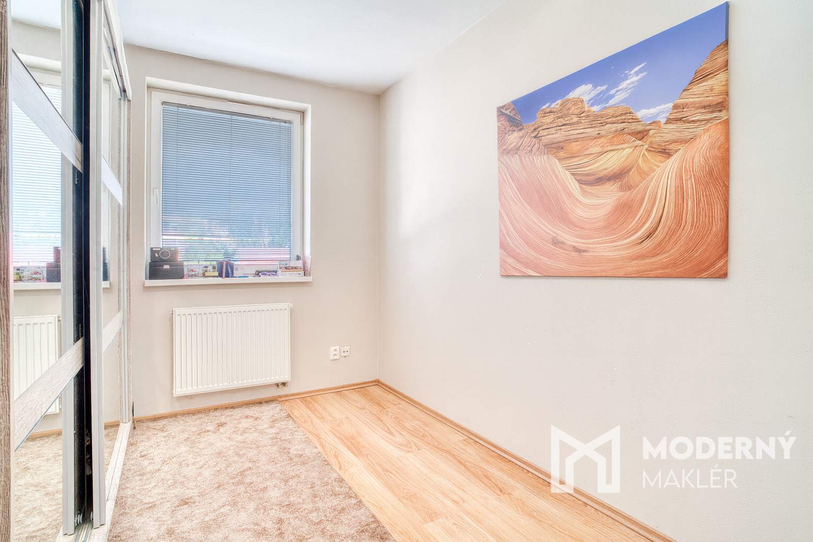 Byt sa skladá z priestrannej vstupnej chodby. Ďalej v byte nájdete praktickú spálňu ideálnu na odpočinok, kúpeľňu so sprchovým kútom a toaletou. Hlavným priestorom je obývacia izba spojená s kuchynskou časťou, ktorá vytvára otvorený a moderný koncept bývania. Z obývacej časti máte výstup na priestrannú loggiu, ktorá rozširuje obytný priestor a poskytuje príjemné miesto na relaxáciu. Veľkou výhodou je samostatná miestnosť so zabudovanými skriňami, ktorá slúži ako šatník.