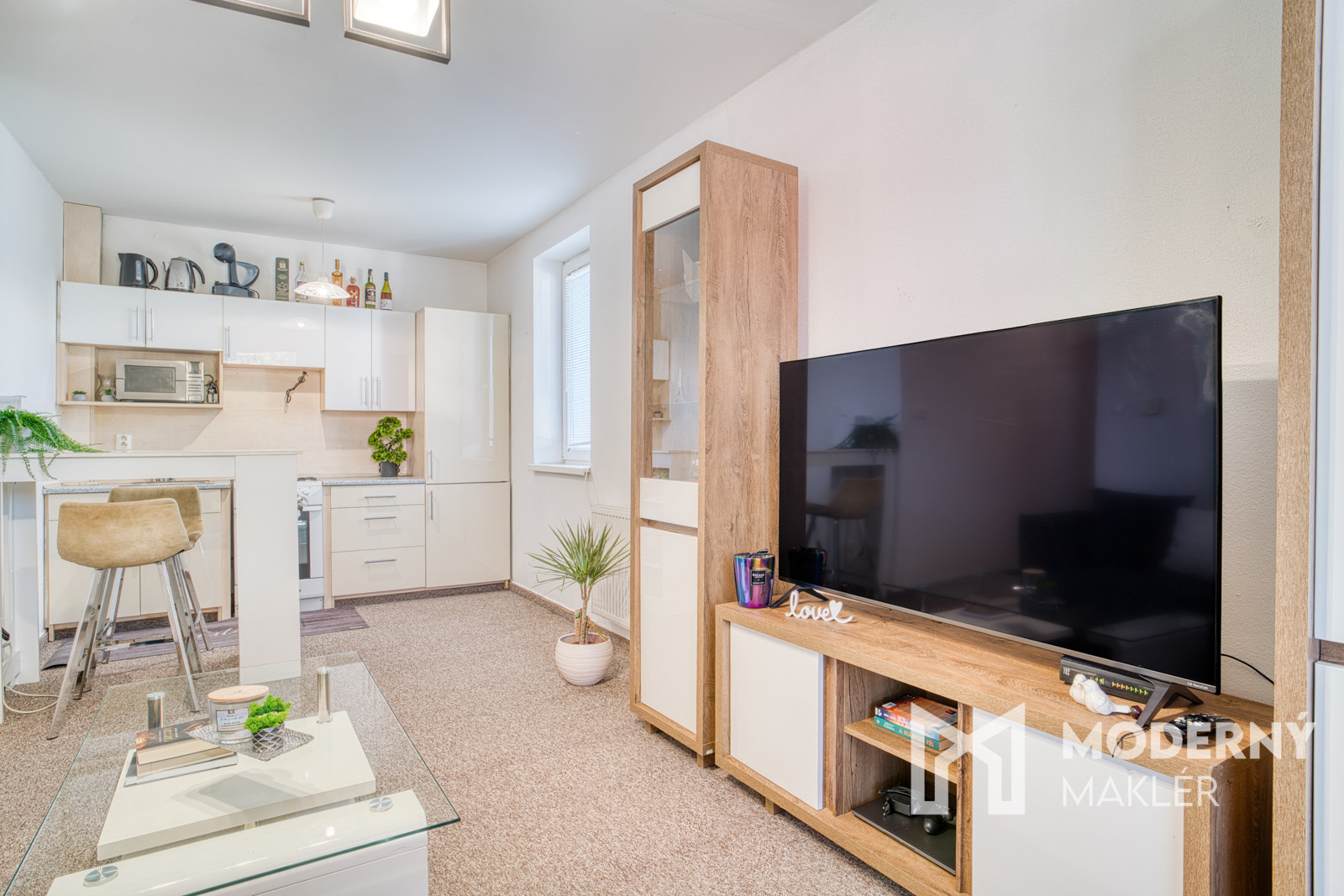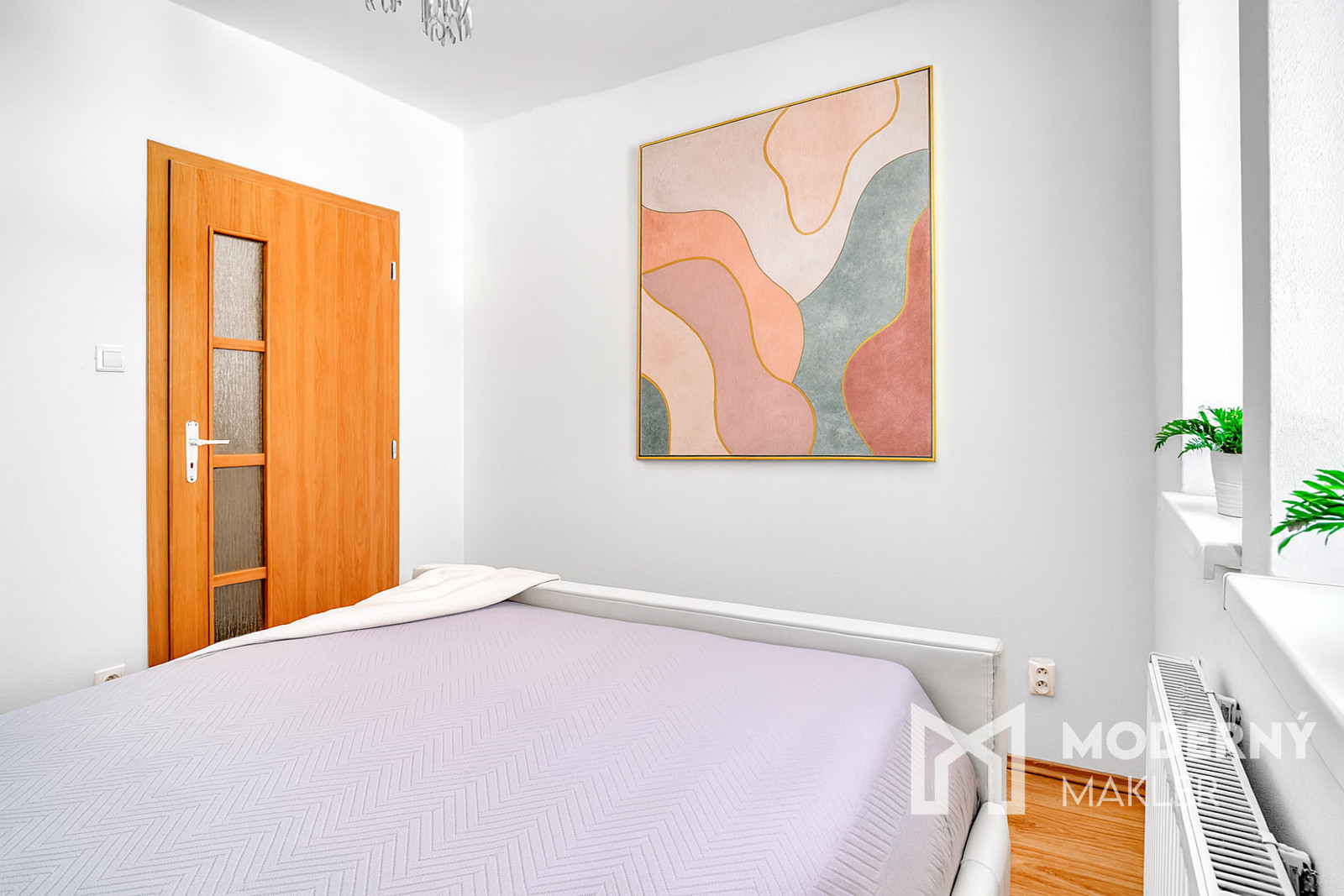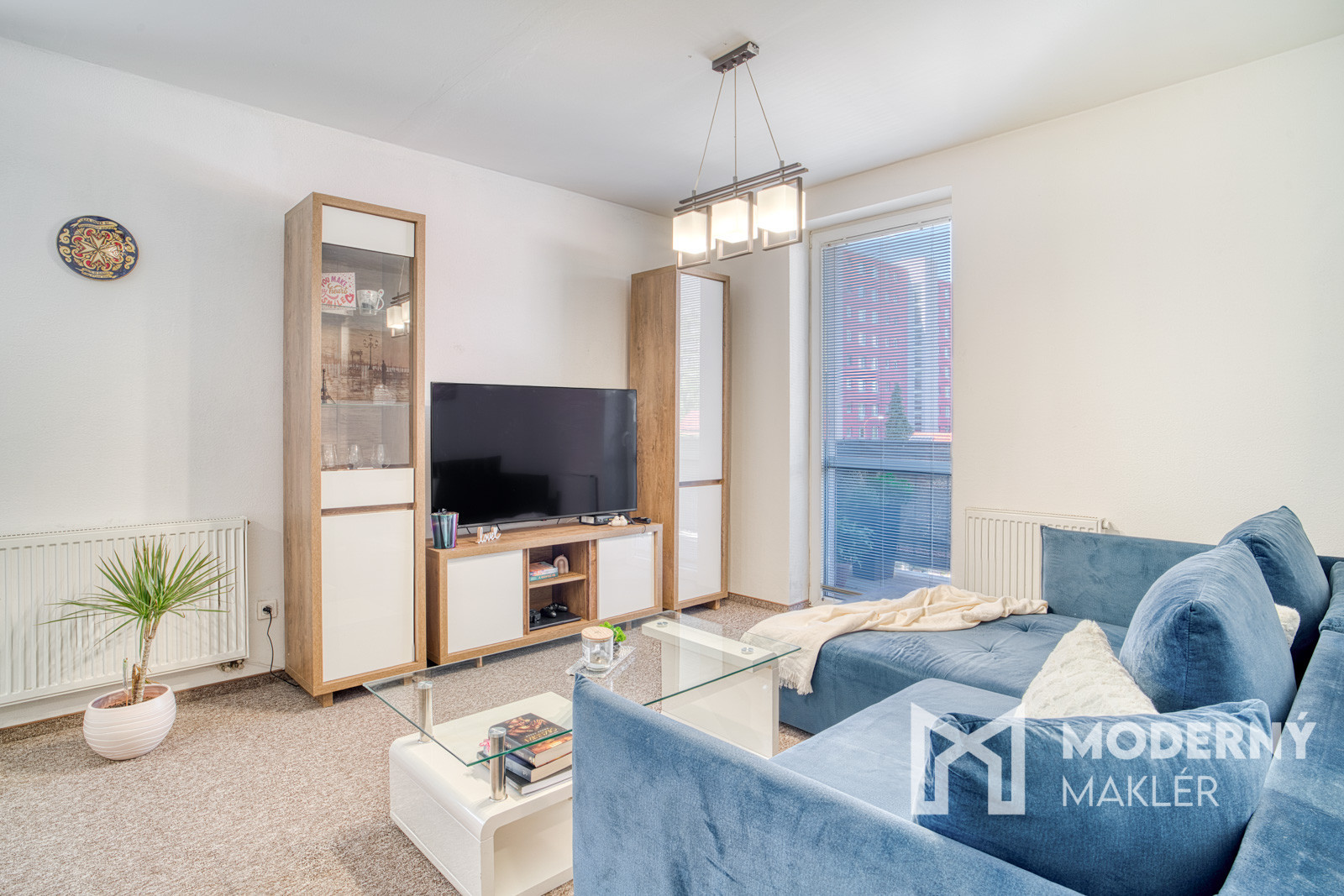 Byt sa skladá z priestrannej vstupnej chodby. Ďalej v byte nájdete praktickú spálňu ideálnu na odpočinok, kúpeľňu so sprchovým kútom a toaletou. Hlavným priestorom je obývacia izba spojená s kuchynskou časťou, ktorá vytvára otvorený a moderný koncept bývania. Z obývacej časti máte výstup na priestrannú loggiu, ktorá rozširuje obytný priestor a poskytuje príjemné miesto na relaxáciu. Veľkou výhodou je samostatná miestnosť so zabudovanými skriňami, ktorá slúži ako šatník.