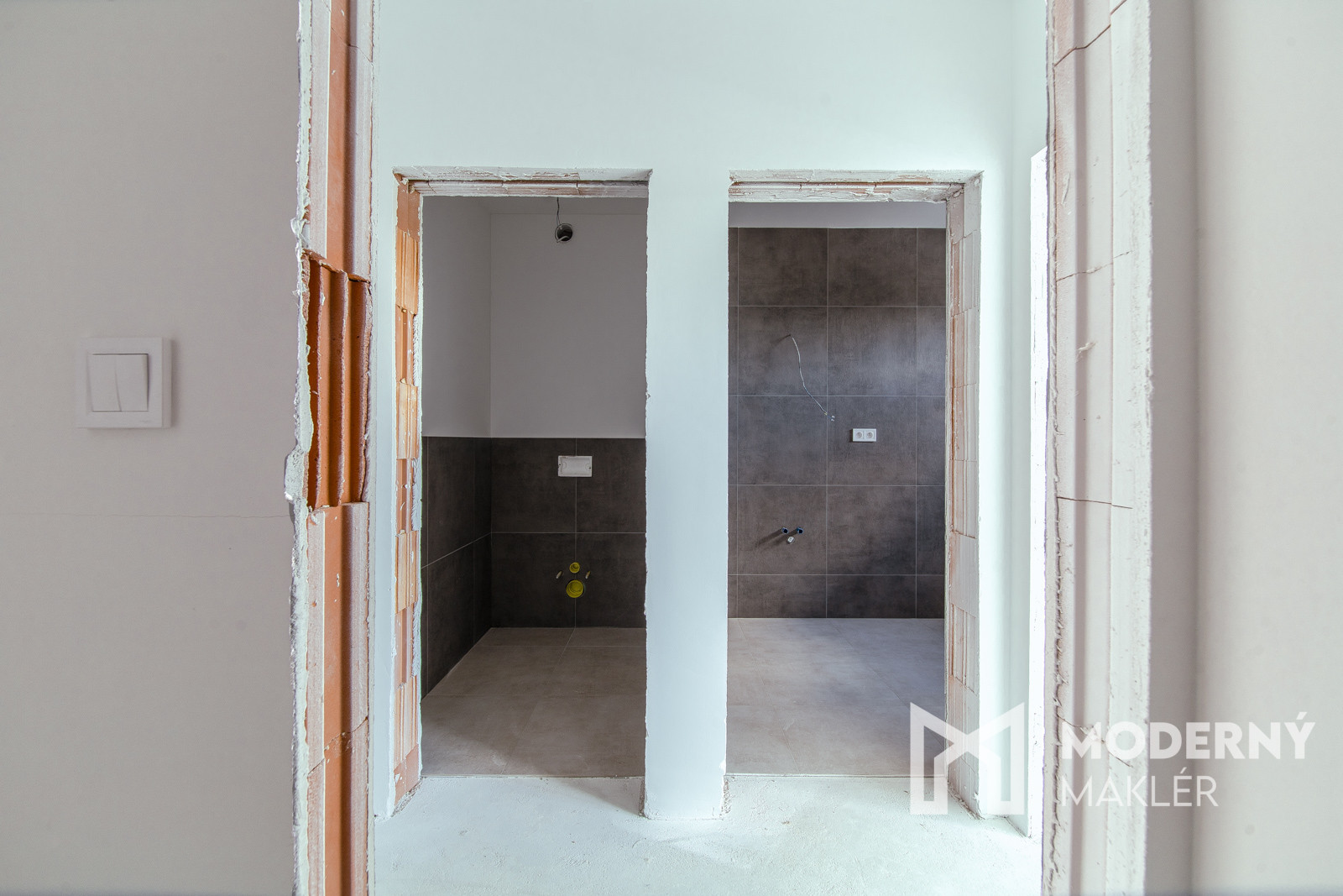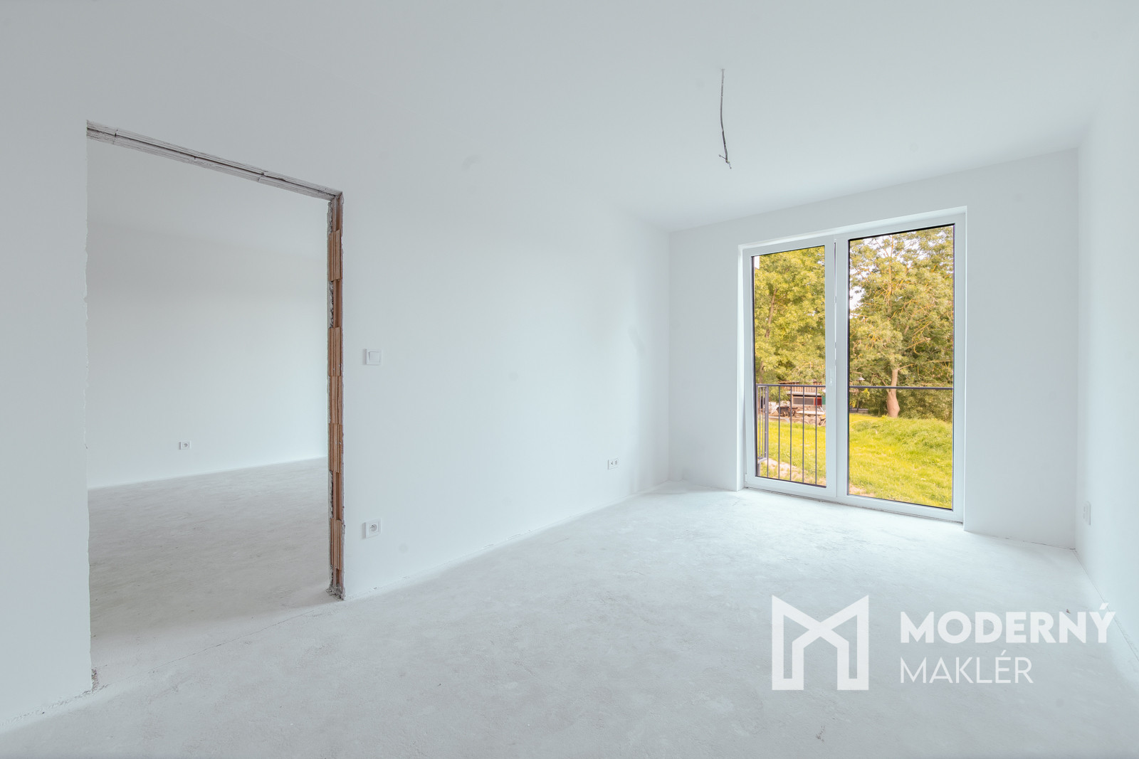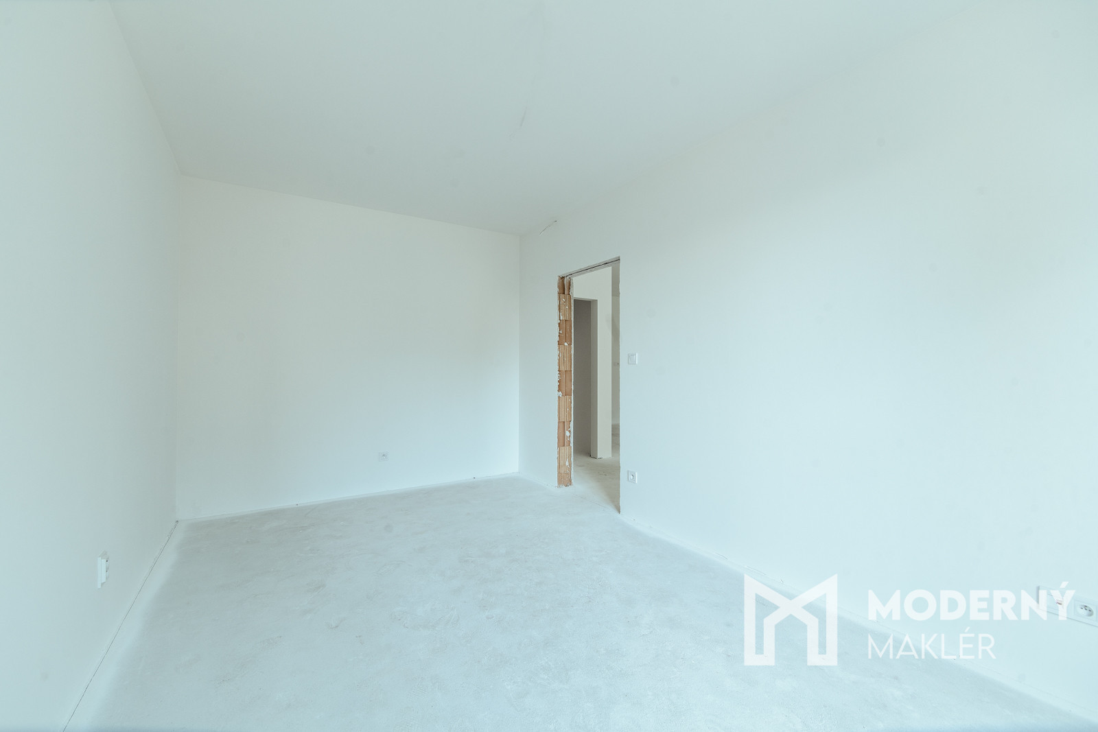 Ide o novostavbu developerského projektu, ktorého 1. etapa výstavby už bola skolaudovaná a čaká na nasťahovanie nových majiteľov. Nehnuteľnosť spĺňa najvyššie štandardy energetickej efektívnosti triedy A0. Byt je vybavený teplovodným podlahovým kúrením s tepelným čerpadlom, ktoré v letných mesiacoch slúži aj na chladenie. Každý byt má vlastné tepelné čerpadlo zabezpečujúce nízke mesačné náklady. Dom je postavený z tehál s dvojitými akustickými stenami medzi bytmi pre maximálny komfort bývania. Fasáda je zateplená minerálnou vlnou a osadená sú veľkoformátové plastové okná s izolačným trojsklom. Nehnuteľnosť je napojená na obecnú vodu aj kanalizáciu a má pripravené inštalácie pre fotovoltaické panely. Ku každému bytu je potrebné dokúpiť si parkovacie miesto, ktoré je možné v prípade potreby napojiť na wallbox pre nabíjanie elektromobilu. Vysoký štandard bývania podčiarkujú aj predprípravy na klimatizáciu, vonkajšie žalúzie, kamerový systém, alarm a optické pripojenie na internet. 1. etapa výstavby už bola skolaudovaná a čaká na nasťahovanie nových majiteľov.