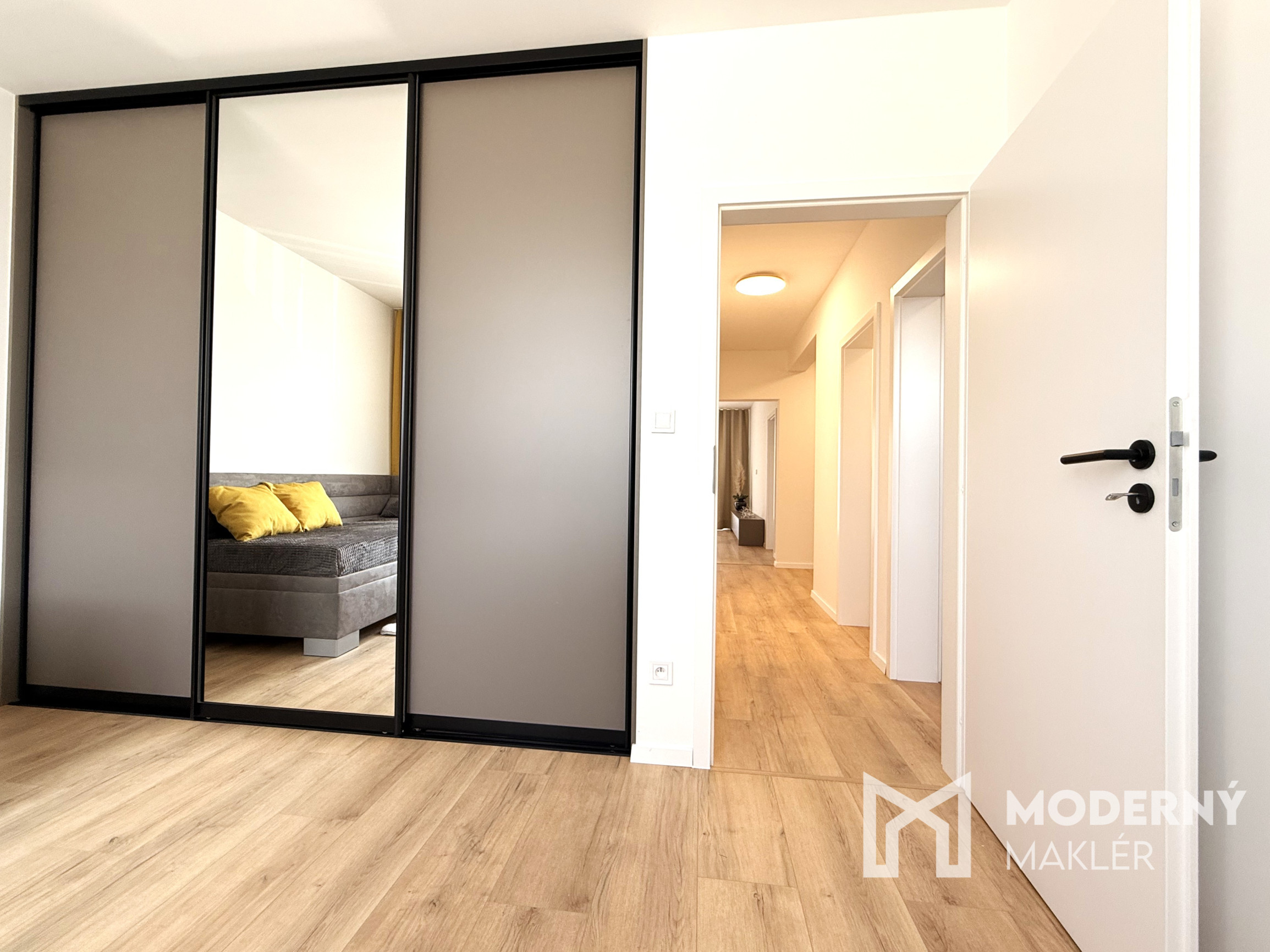 Moderný maklér ponúka vo výhradnom zastúpení na predaj skolaudovaný 3-izbový byt predstavujúci ideálnu kombináciu pohodlia rodinného bývania s výhodami bytu, v atraktívnej lokalite blízko centra kúpeľného mesta Piešťany, v novej rezidencii Bývanie pri mlyne vo Veľkom Orvišti.