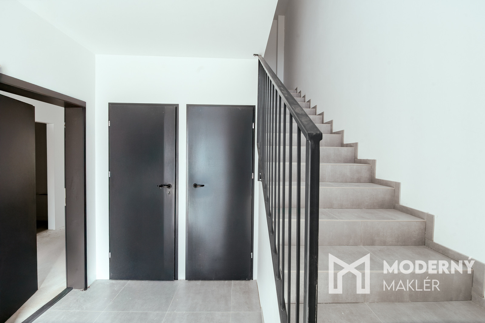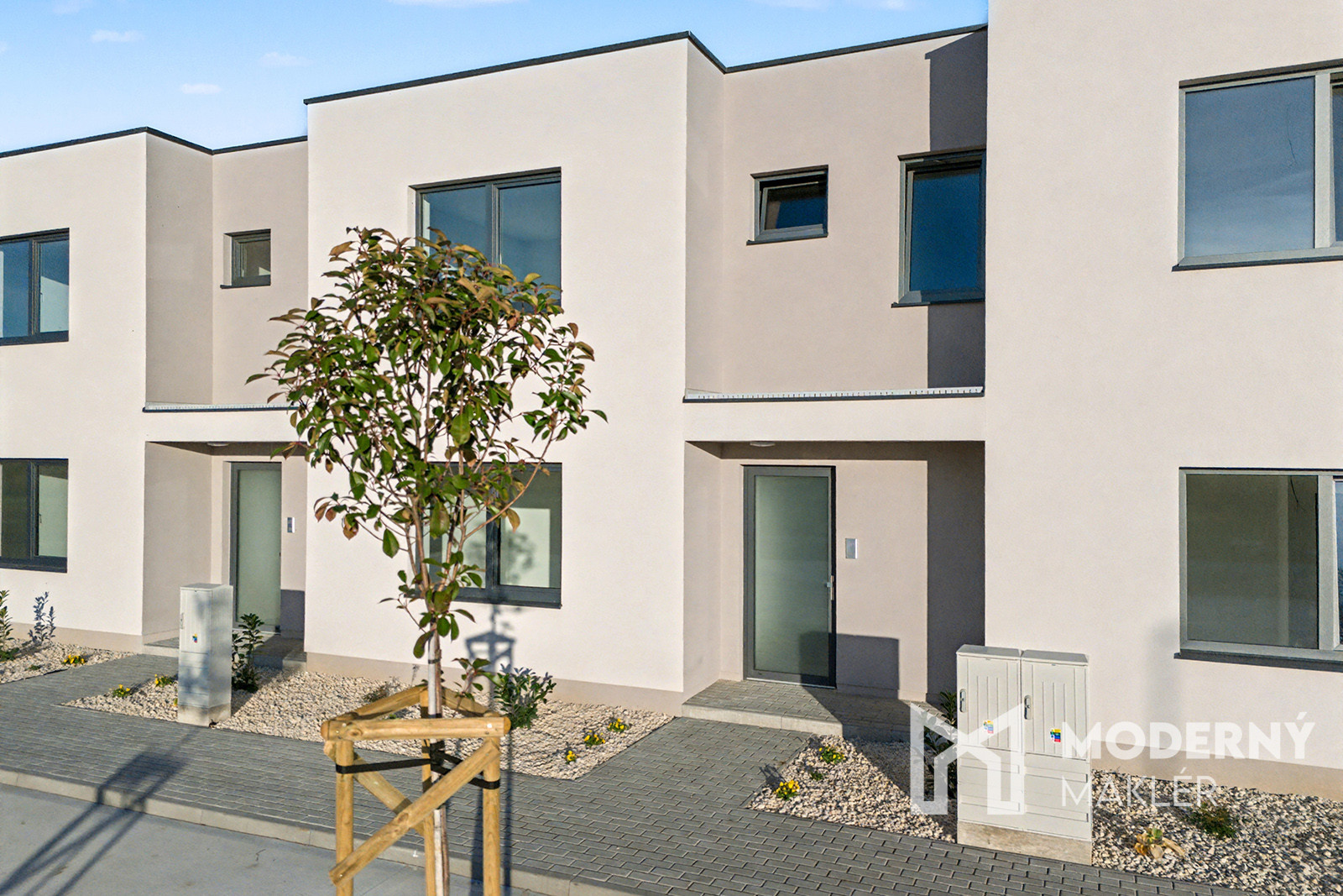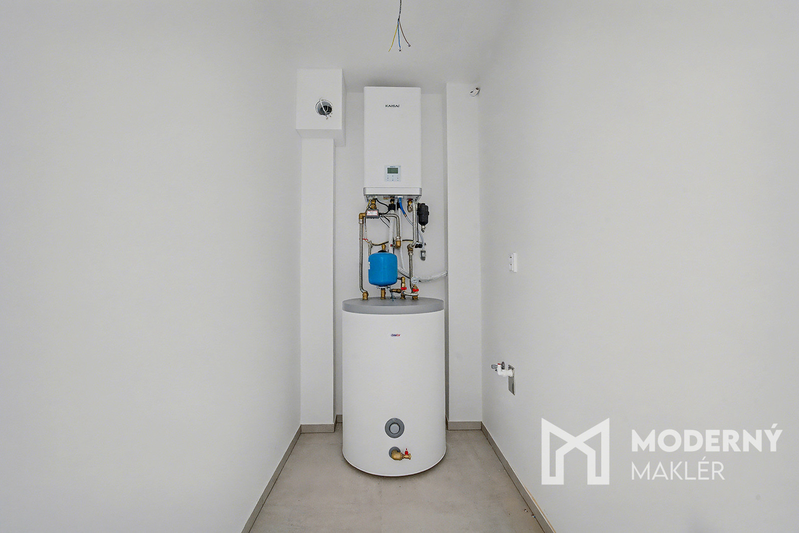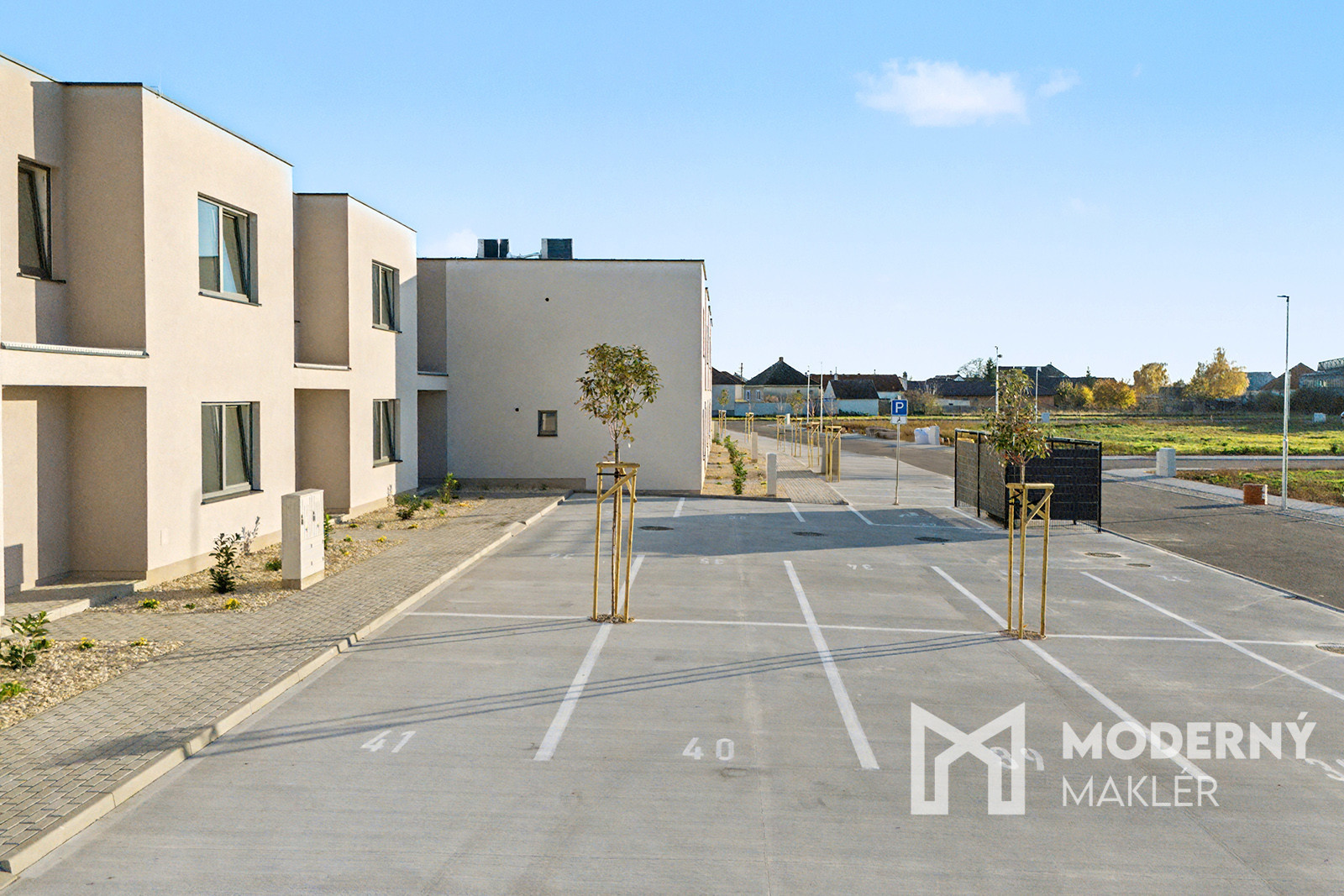 Ide o novostavbu developerského projektu, ktorého 1. etapa výstavby už bola skolaudovaná a čaká na nasťahovanie nových majiteľov. Nehnuteľnosť spĺňa najvyššie štandardy energetickej efektívnosti triedy A0. Byt je vybavený teplovodným podlahovým kúrením s tepelným čerpadlom, ktoré v letných mesiacoch slúži aj na chladenie. Každý byt má vlastné tepelné čerpadlo zabezpečujúce nízke mesačné náklady. Dom je postavený z tehál s dvojitými akustickými stenami medzi bytmi pre maximálny komfort bývania. Fasáda je zateplená minerálnou vlnou a osadená sú veľkoformátové plastové okná s izolačným trojsklom. Nehnuteľnosť je napojená na obecnú vodu aj kanalizáciu a má pripravené inštalácie pre fotovoltaické panely. Ku každému bytu je potrebné dokúpiť si parkovacie miesto v hodnote 5.000€ , ktoré je možné v prípade potreby napojiť na wallbox pre nabíjanie elektromobilu. Vysoký štandard bývania podčiarkujú aj predprípravy na klimatizáciu, vonkajšie žalúzie, kamerový systém, alarm a optické pripojenie na internet. 1. etapa výstavby už bola skolaudovaná a čaká na nasťahovanie nových majiteľov.