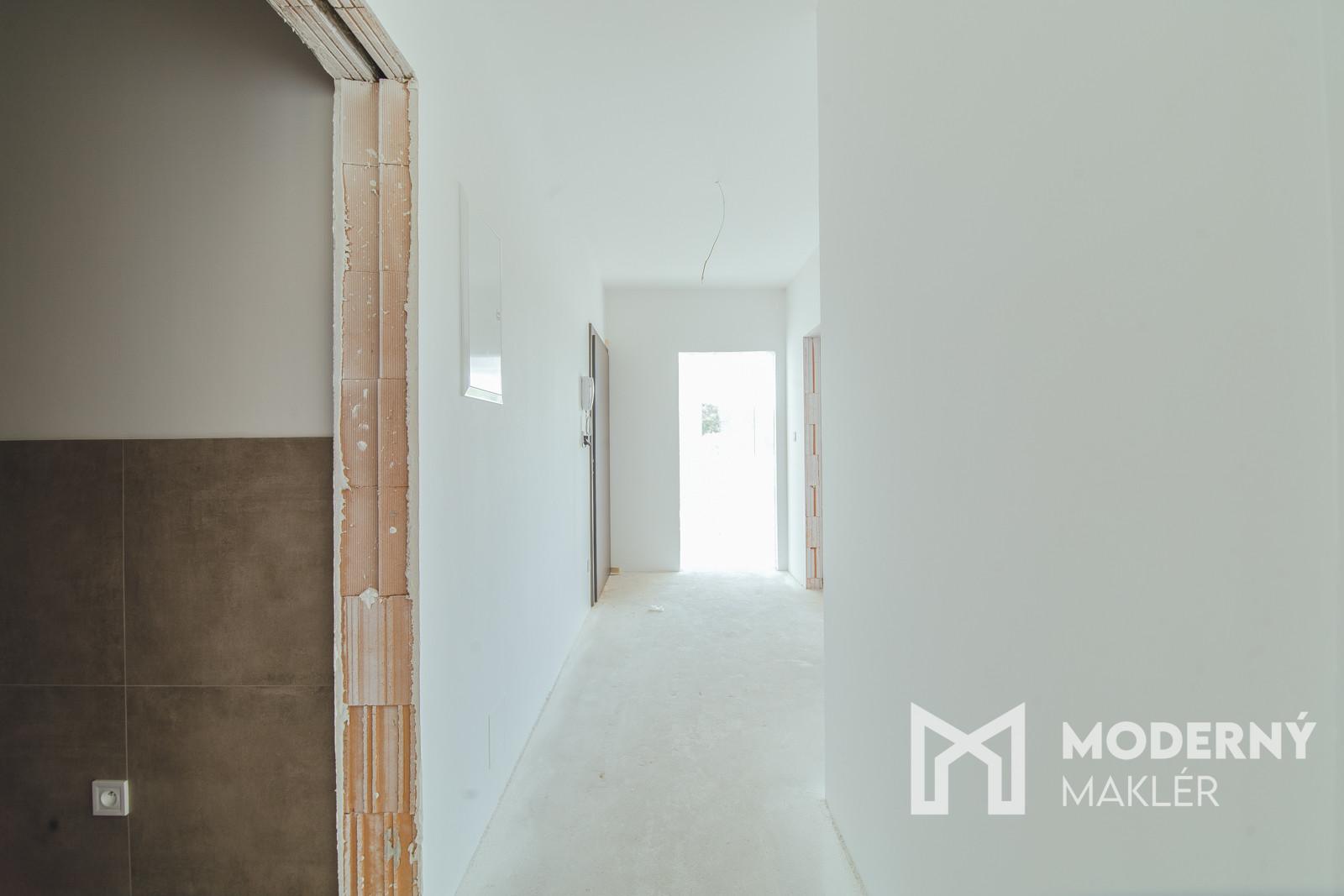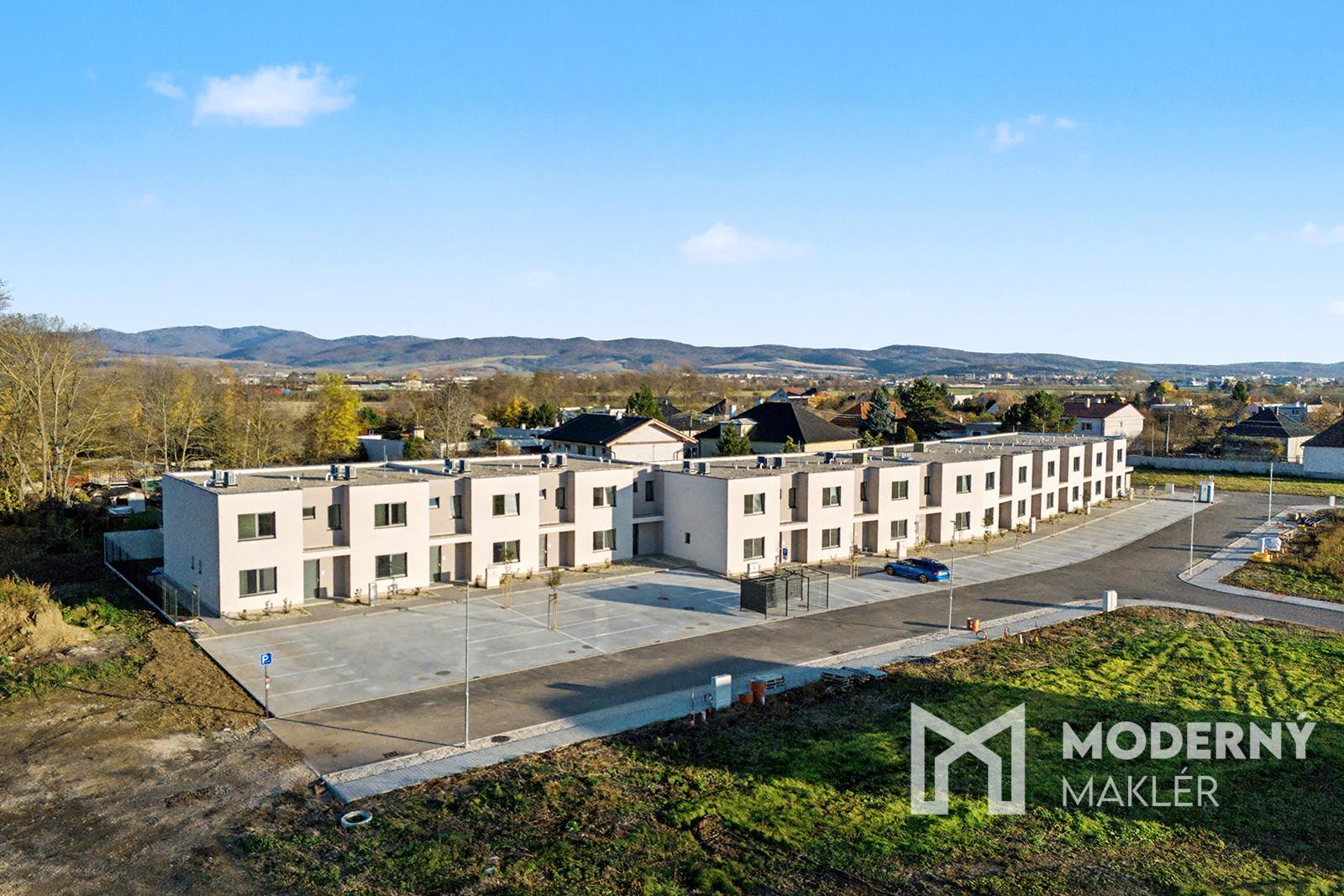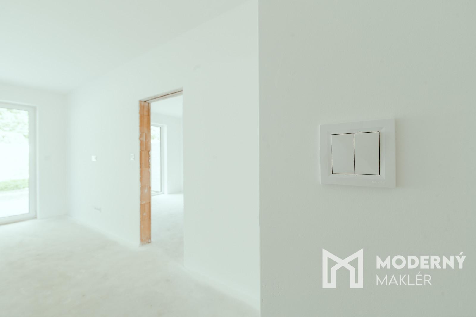 Stavba je realizovaná z tehál s dvojitými akustickými stenami medzi bytmi, čo garantuje pokoj a súkromie. Fasáda je zateplená minerálnou vlnou a osadené sú veľkoformátové plastové okná s izolačným trojsklom, vďaka ktorým je interiér presvetlený a zároveň energeticky úsporný. Nehnuteľnosť je napojená na obecnú vodu a kanalizáciu a pripravená na inštaláciu fotovoltaických panelov. Ku každému bytu je potrebné dokúpiť si parkovacie miesto, ktoré je v prípade potreby možné napojiť na wallbox pre nabíjanie elektromobilu. Záhrada je kompletne oplotená z každej strany okrasným betónovým plotom v kombinácii so zváranými 3D panelmi, čo prináša súkromie aj dlhodobú odolnosť. Nechýba ani točka na vodu na jednoduchú starostlivosť o zeleň a vydláždená terasa, ktorá vytvára ideálne miesto na posedenie, grilovanie alebo rodinný relax. Vysoký štandard bývania podčiarkujú aj predprípravy na klimatizáciu, vonkajšie žalúzie, kamerový systém, alarm a optické pripojenie na internet.1. etapa výstavby už bola skolaudovaná a čaká na nasťahovanie nových majiteľov.