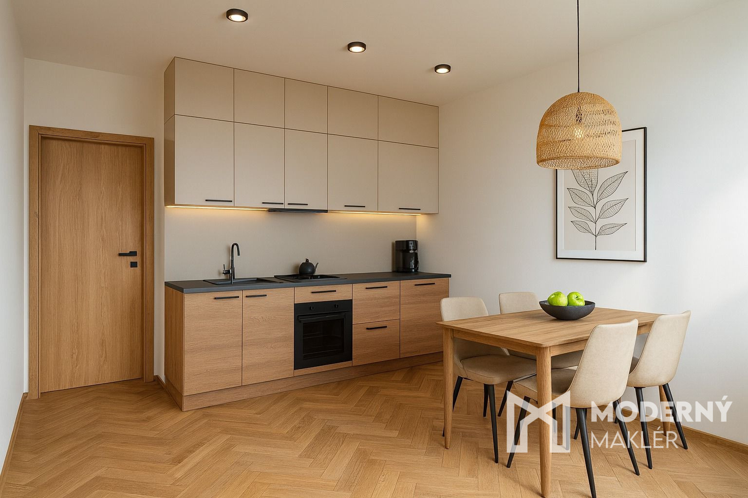 Byt pozostáva z predsiene, z ktorej je vstup do kúpeľne a samostatného WC. Hlavný obytný priestor tvorí izba prepojená s kuchynským kútom, čím vzniká praktický a vzdušný celok vhodný na komfortné bývanie. Byt sa predáva nezariadený.