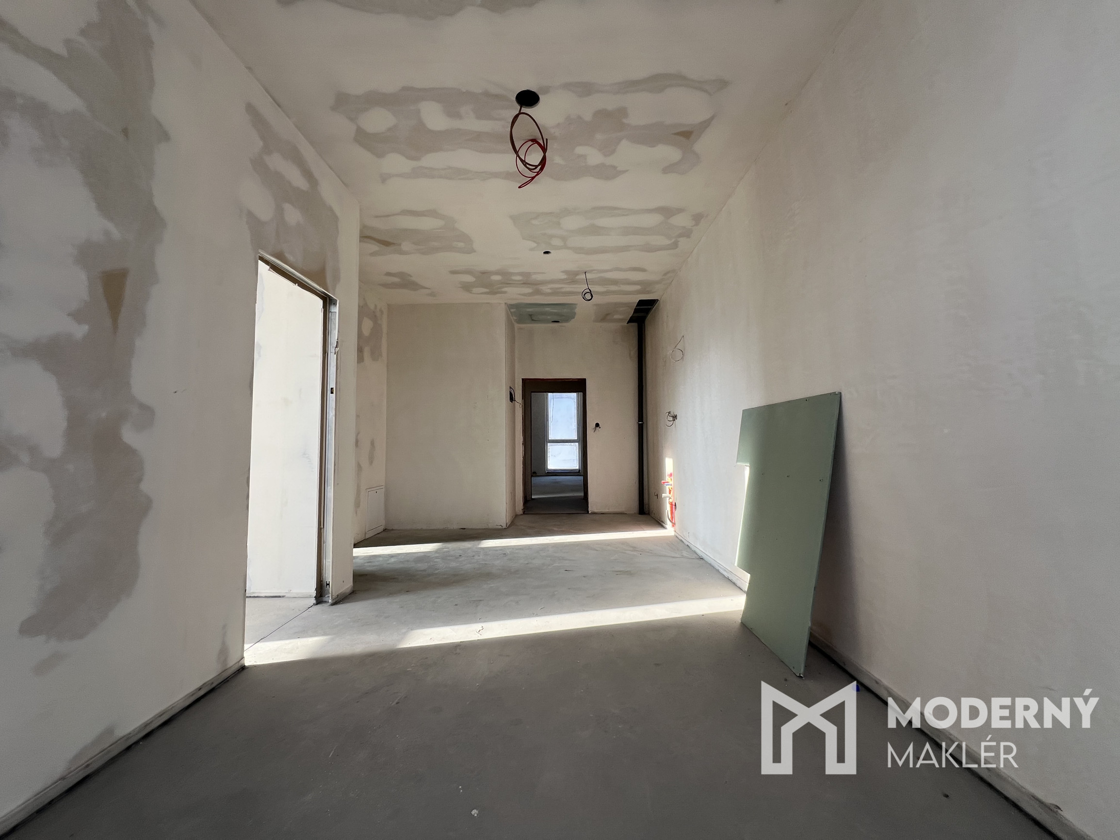 Apartmán sa predáva v štádiu HOLOBYT, no v prípade záujmu je možné dokončiť ho aj do ŠTANDARDU za 13.500€, ktorý zahŕňa maľovky, elektrické vypínače a zásuvky, radiátory, kúpeľňu so sanitou, dvere, podlahy a kuchyňu. Nehnuteľnosť sa nachádza v budove po prestavbe, ktorej kolaudácia prebehne do apríla 2026. Vstup do rezidencie je zabezpečený rampami a parkovanie je privátne. Bytový dom disponuje moderným výťahom.