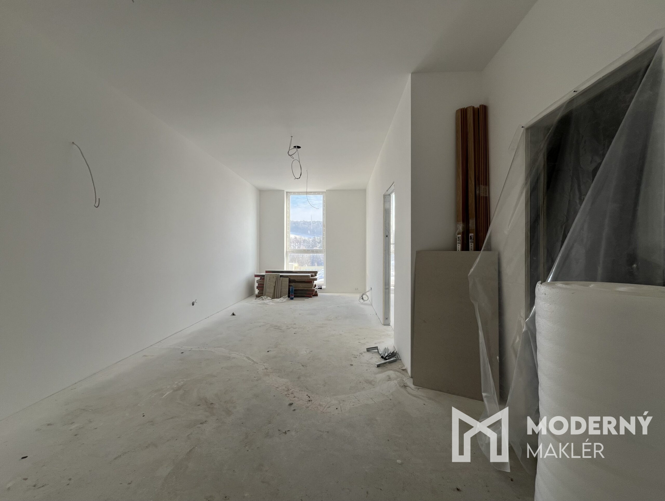 Apartmán sa predáva v štádiu HOLOBYT, no v prípade záujmu je možné dokončiť ho aj do ŠTANDARDU za 13.500€, ktorý zahŕňa maľovky, elektrické vypínače a zásuvky, radiátory, kúpeľňu so sanitou, dvere, podlahy a kuchyňu. Nehnuteľnosť sa nachádza v budove po prestavbe, ktorej kolaudácia prebehne v apríli 2026. Vstup do rezidencie je zabezpečený rampami a parkovanie je privátne. Bytový dom disponuje moderným výťahom.
