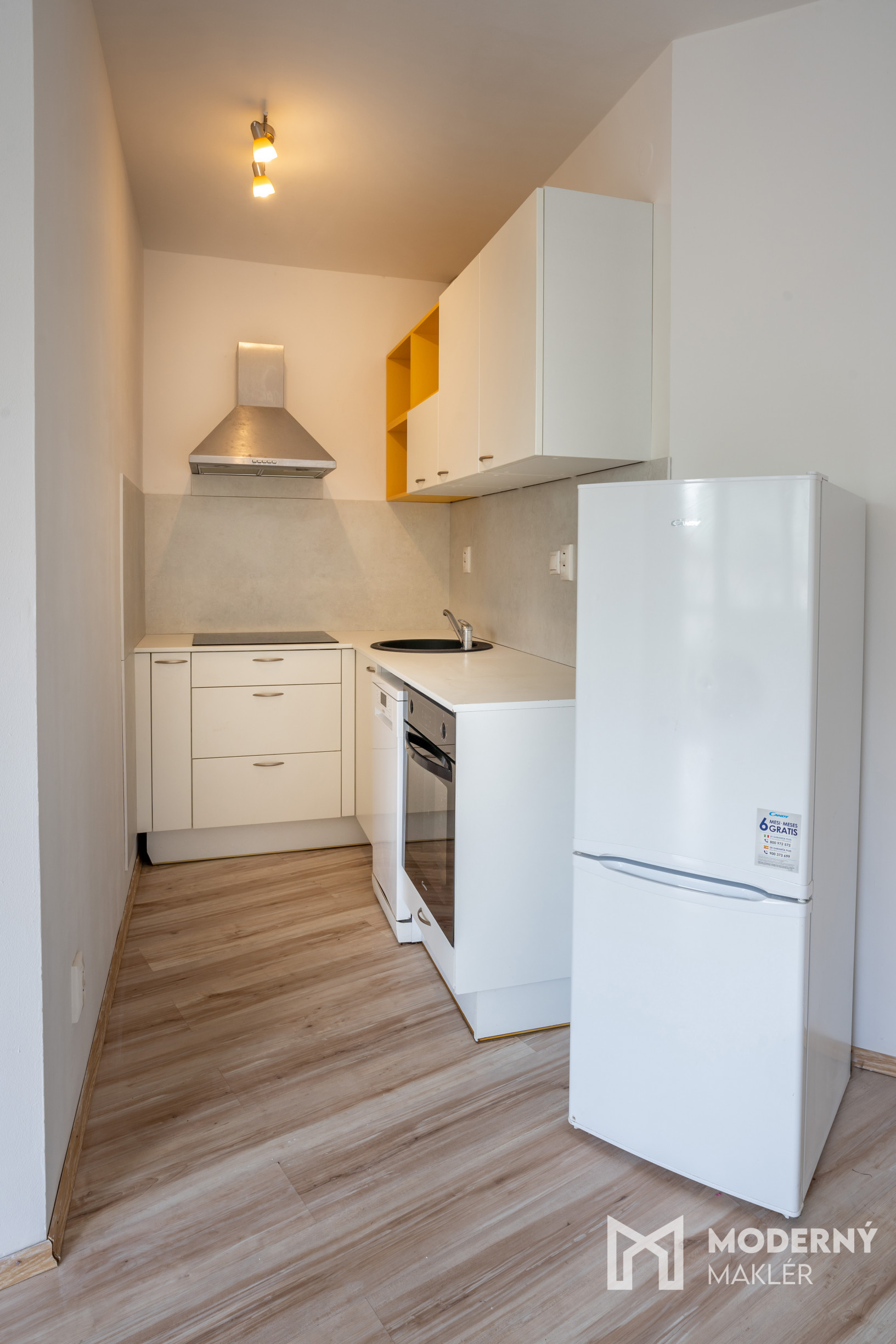 Byt sa skladá zo vstupnej chodby s praktickým úložným priestorom, z ktorej sa po pravej strane nachádza kúpeľňa vybavená vaňou, toaletou a umývadlom. Z hlavnej chodby je priamy vstup do priestranného denného priestoru, ktorý spája obývaciu izbu s kuchynskou časťou. V zadnej časti bytu sa nachádza spálňa. Z obývacej izby vedú balkónové dvere, ktoré poskytujú priamy výstup na pozemok.