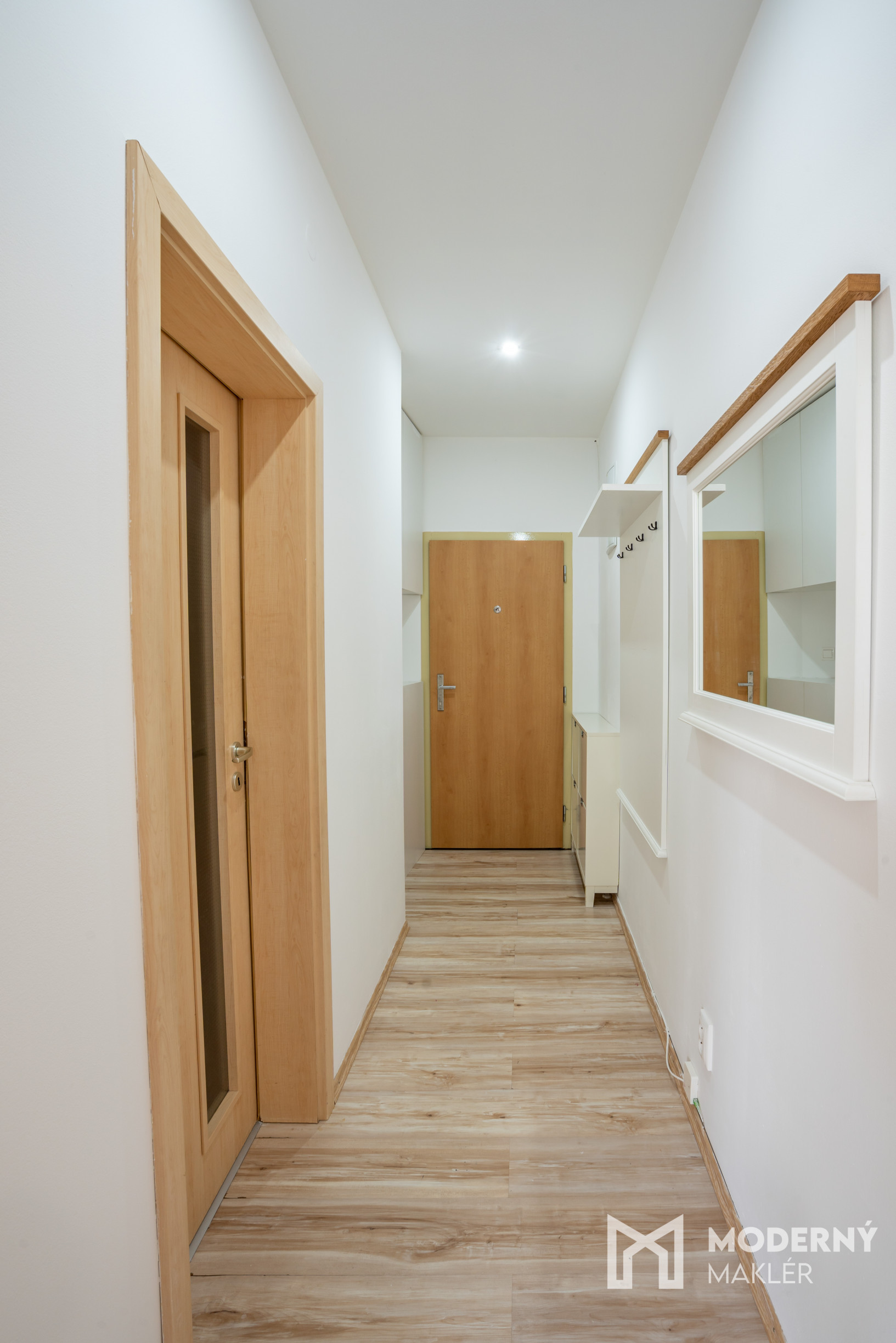 Nehnuteľnosť sa predáva čiastočne zariadená. Vo vstupnej chodbe je umiestnená praktická vešiaková zostava spolu so vstavaným botníkom a zrkadlom. Kuchyňa je vybavená kompletnou kuchynskou linkou so spotrebičmi. V kúpeľni je umiestnená automatická práčka.