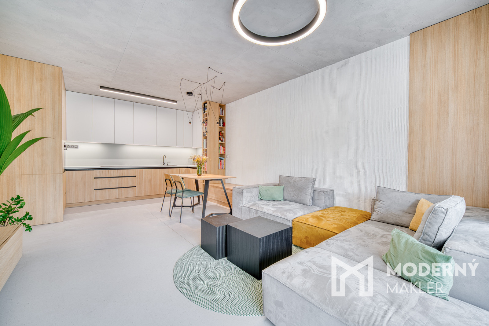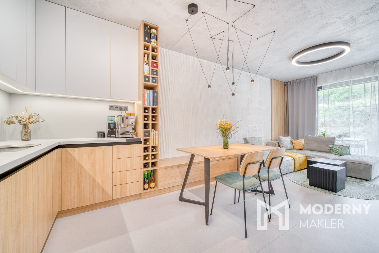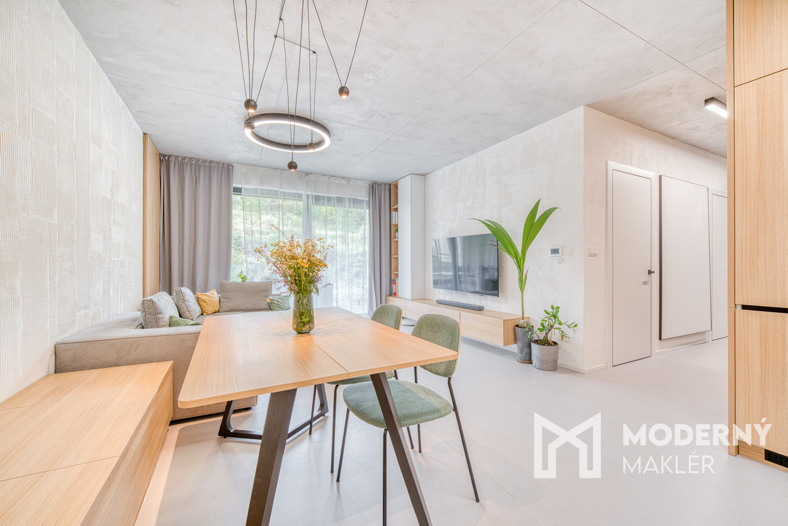 Byt sa predáva kompletne zariadený nábytkom na mieru. Bol navrhnutý architektonickým štúdiom IAVD architekt, ktorý vytvoril nadčasový dizajn bytu s funkčnosťou a premyslenými detailami. Každý centimeter priestoru je využitý efektívne a s dôrazom na estetiku. V kuchyni sa nachádza svetlá kuchynská linka so spotrebičmi (indukčná varná doska, digestor, teplovzdušná rúra, umývačka riadu, chladnička). Obývacia časť dotvára moderný vzhľad kuchyne a poskytuje ideálny priestor na filmový zážitok. Kuchyňa spojená s obývačkou ponúka koberce a stoličky značky KAVE a konferenčný stolík značky MUZZA. V kúpeľni sa nachádza sprchový kút s dizajnovým umývadlom, skrinkami s uložným priestorom a zrkadlom. Spálňa je vybavená pohodlnou posteľou s 2 šatníkovými skriňami. Druhá izba poskytuje priestor pre deti a ich kreatívne využitie času. Práčka so sušičkou sa nachádzajú v samostatnej miestnosti.
