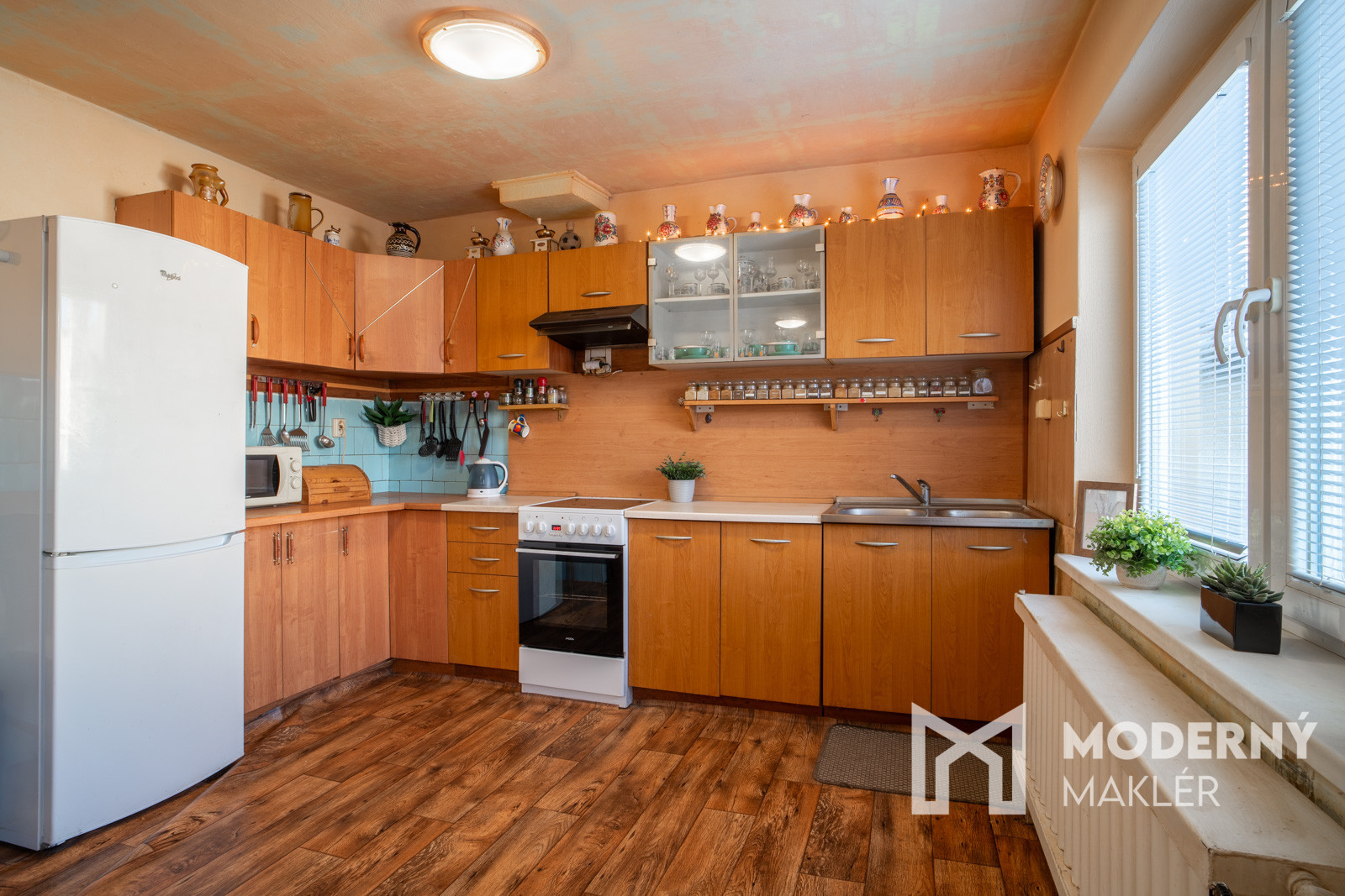 Rodinný dom sa predáva čiastočne zariadený – v kuchyni sa nachádza kuchynská linka so spotrebičmi (elektrický sporák s rúrou, digestor). Zvyšok zariadenia je možné ponechať podľa vzájomnej dohody. Dom bol postavený v roku 1970 z tehly s hrúbkou 40 cm. Deliace priečky sú z tehly s hrúbkou 15-20 cm. Nehnuteľnosť prešla čiastočnou rekonštrukciou, ktorá pozostávala z výmeny plastových okien s izolačným 2-sklom a interiérovými žalúziami, strešnej krytiny (2022), rekonštrukcie kuchyne, hygienických zariadení, nových omietok, laminátových podláh, v kuchyni PVC podlahoviny, novej fasády (bez zateplenia). Strecha je sedlová, čiastočne valbová, stropy suterénu betónové monolitické, na prízemí drevené trámové s rovným podhľadom, krov strechy je drevený s plechovou pozinkovanou krytinou. Stavba je chránená vodorovnou izoláciou proti zemnej vlhkosti. Vykurovanie domu je centrálne formou kotla na tuhé palivo, umiestneného v kotolni v suteréne. Rozvod tepla je zabezpečený pomocou osadených radiátorov. V roku 2022 bola v dome nainštalovaná klimatizácia s 2 vonkajšími a 2 vnútornými jednotkami.