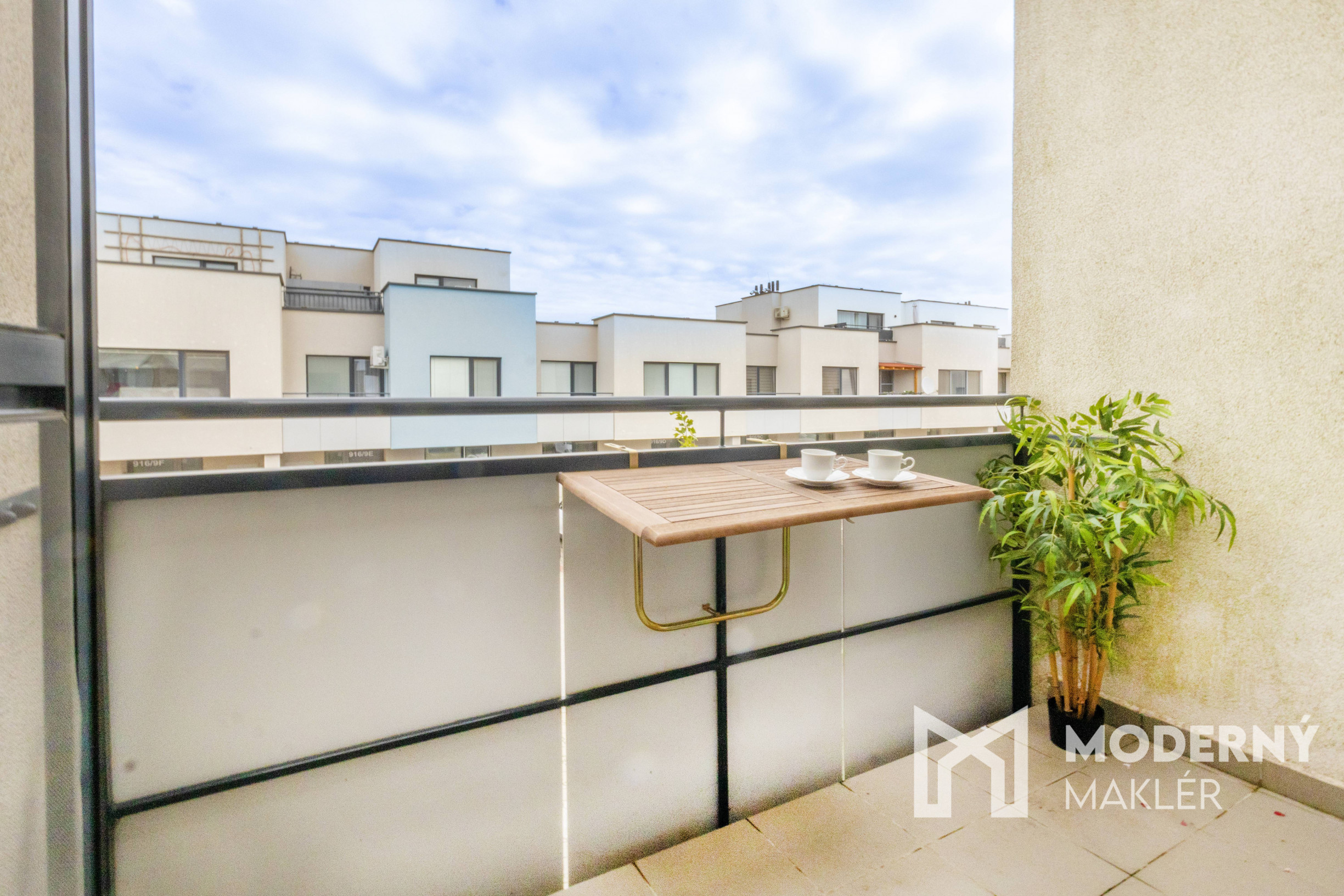 Moderný maklér ponúka na prenájom štýlový 2-izbový byt s loggiou a vlastným parkovacím státím vo vyhľadávanej rezidencii „Nové bývanie“ v obci Hviezdoslavov, len 20 km od Bratislavy. Byt sa nachádza na prvom poschodí menšieho tehlového bytového domu bez výťahu, v ktorom sú iba tri bytové jednotky, čo zaručuje komornú atmosféru a vyššiu mieru súkromia.