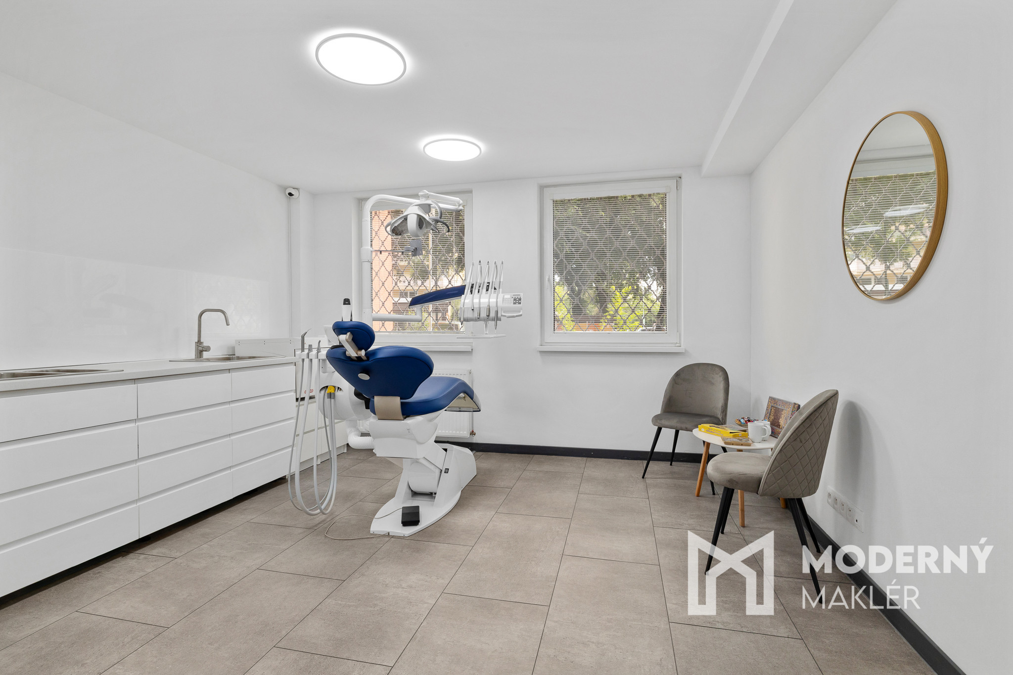 Jedinečná investičná príležitosť predstavuje kompletne funkčnú zubnú kliniku v prestížnej lokalite Ružinova, ktorá je pripravená na okamžité prevzatie a začatie podnikania. Klinika je vybavená všetkým potrebným moderným zariadením a disponuje kompletnou dokumentáciou vrátane všetkých potrebných povolení a certifikátov pre prevádzkovanie zubárskej praxe. Strategická poloha v atraktívnej časti Ružinova zabezpečuje výborné dopravné spojenie a dostupnosť pre pacientov, zatiaľ čo kompletné technické vybavenie a administratívne zabezpečenie umožňuje novému majiteľovi začať podnikať bez akýchkoľvek komplikácií či zdržaní. Ide o turnkey riešenie pre skúsených stomatológov alebo investorov hľadajúcich stabilnú a perspektívnu podnikateľskú príležitosť v prosperujúcom sektore zdravotníctva. Objekt je pod kamerovým systémom a taktiež aj čakáreň a ambulancia. Viete si sledovať či je vonku pacient.