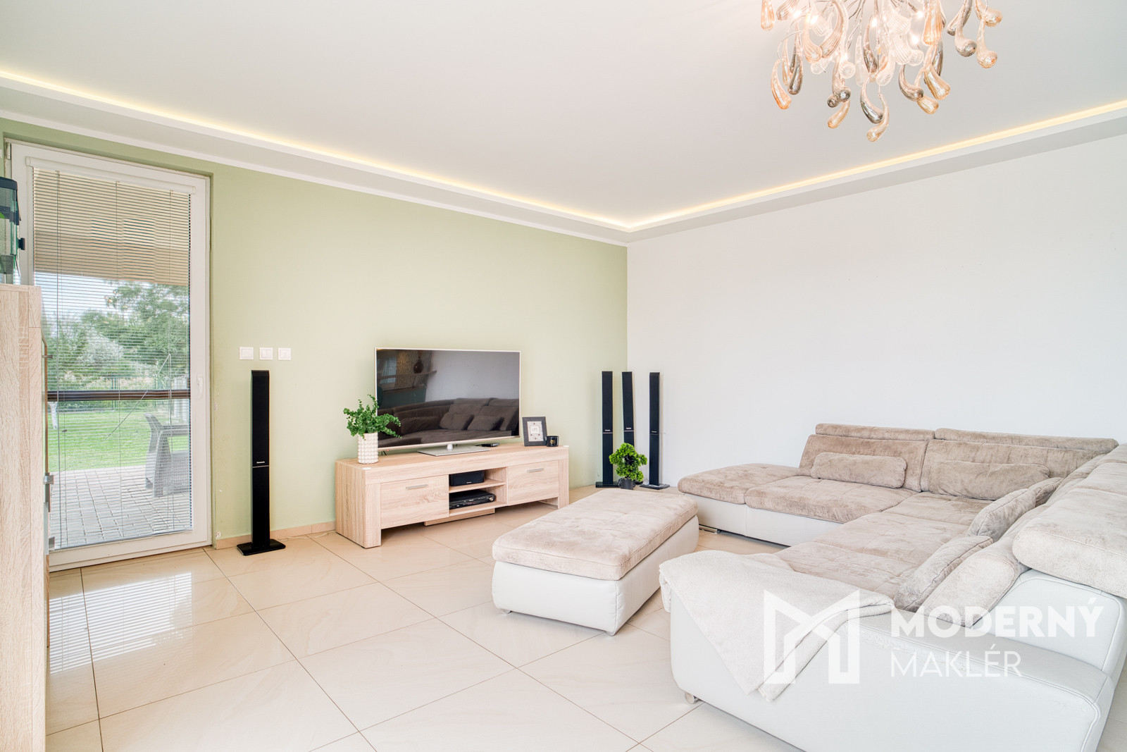 Jednopodlažný rodinný dom postavený v roku 2016 predstavuje samostatne stojaci objekt s moderným technickým vybavením a premysleným riešením. Konštrukcia je montovaná, drevostavba s kvalitným zateplením, ktoré prispieva k výbornej energetickej efektívnosti. Strecha je sedlového typu, pokrytá betónovou škridlou a doplnená účinnou izoláciou. Dom je osadený trojkomorovými plastovými oknami s interiérovými žalúziami a vybavený bezpečnostnými vstupnými dverami. Prípojka na vodu je riešená prostredníctvom obecného vodovodu, doplneného o vlastnú studňu. Odpadové vody sú odvádzané do žumpy. Vykurovanie zabezpečuje elektrické podlahové kúrenie napojené na elektrický kotol, ktorý zároveň slúži na ohrev úžitkovej vody. V spálni sa nachádza klimatizácia, ktorá zvyšuje komfort bývania počas celého roka. Dom disponuje predprípravou na krb – s možnosťou jeho inštalácie vo vnútri aj na terase. Bezpečnosť nehnuteľnosti zvyšuje kamerový systém v kombinácii s elektronickým zabezpečením (alarm).