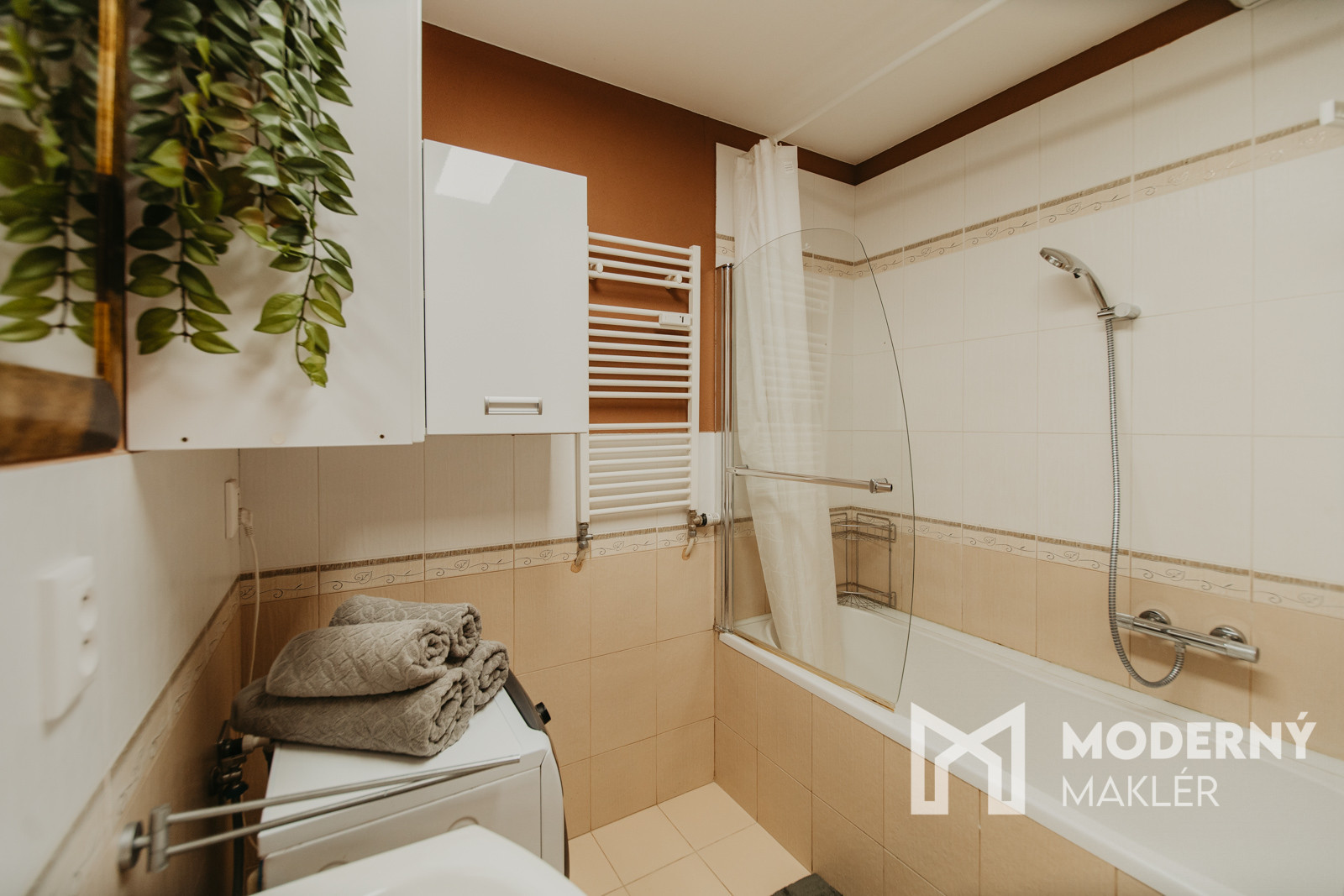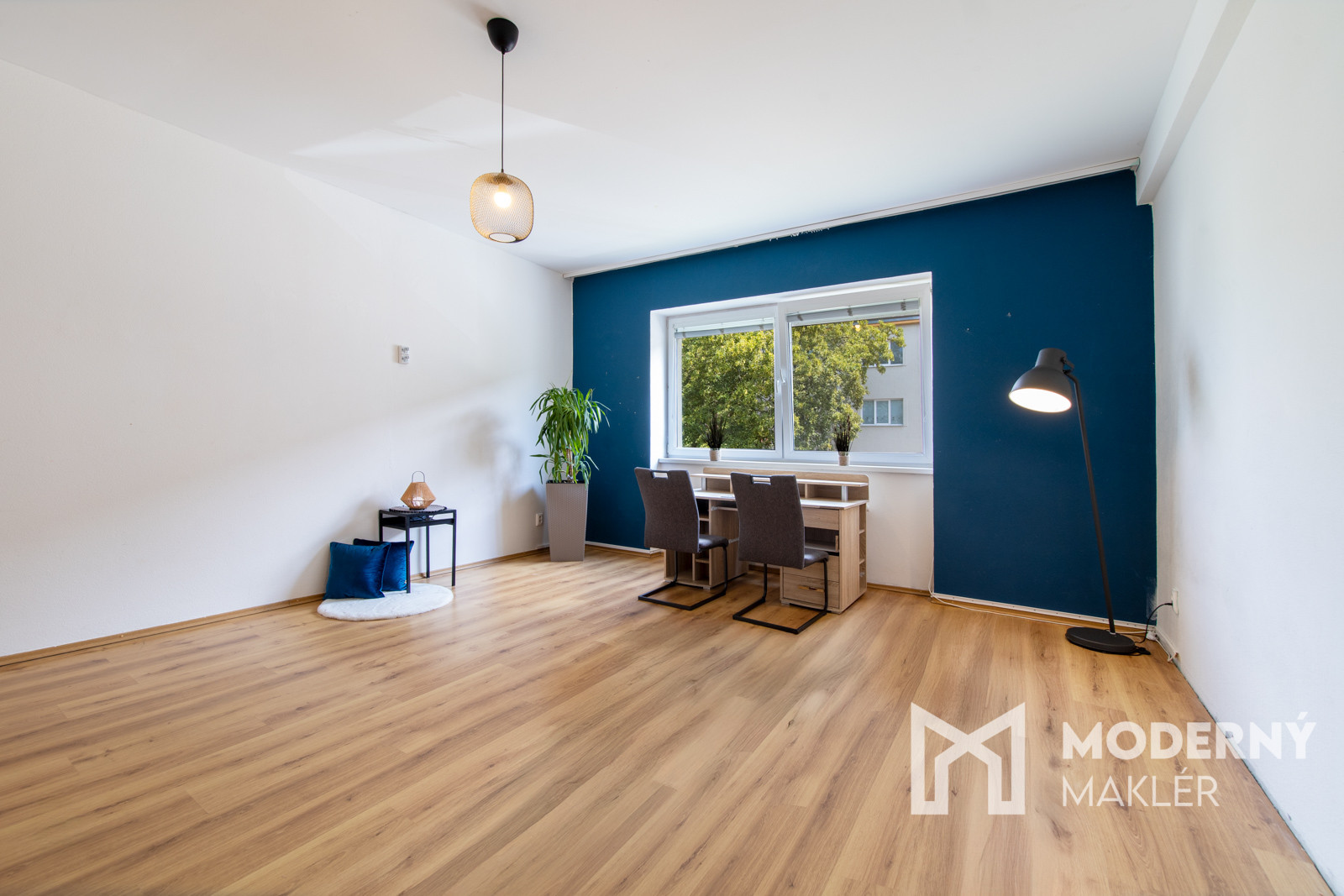 Nehnuteľnosť sa skladá zo vstupnej chodby. Ďalej sa tu nachádza kuchyňa prepojená s obývacou izbou prostredníctvom praktického servírovacieho okna, ktoré spája tieto miestnosti. V byte nájdete detskú izbu a spálňu. K dispozícii je kúpeľňa s vaňou a samostatná toaleta, čo zvyšuje komfort bývania.