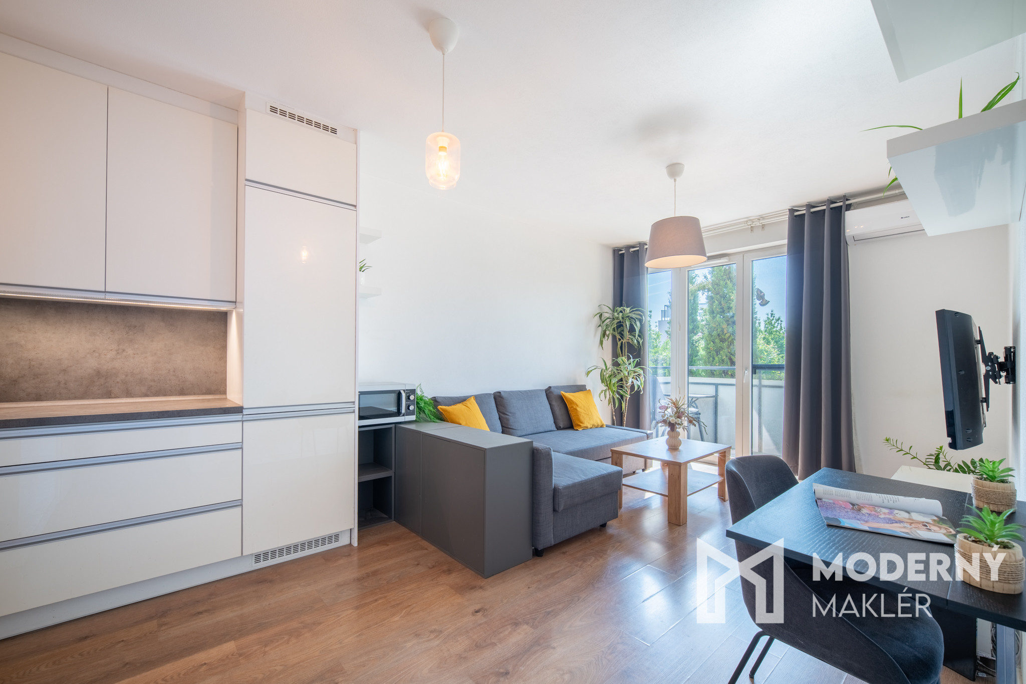 Byt sa prenajíma kompletne zariadený. Obývacia izba je vybavená komfortnou sedacou súpravou, televízorom a konferenčným stolíkom. Pre väčšie pohodlie počas teplých dní je v obývačke nainštalovaná klimatizácia. Moderná kuchyňa disponuje varnou doskou, elektrickou rúrou, mikrovlnnou rúrou a umývačkou riadu, čo uľahčí každodenné varenie a upratovanie. V spálni sa nachádza pohodlná manželská posteľ, ktorá zaručuje kvalitný odpočinok. Byt disponuje množstvom uložného priestoru vďaka priestranným šatníkovým skriniam..
